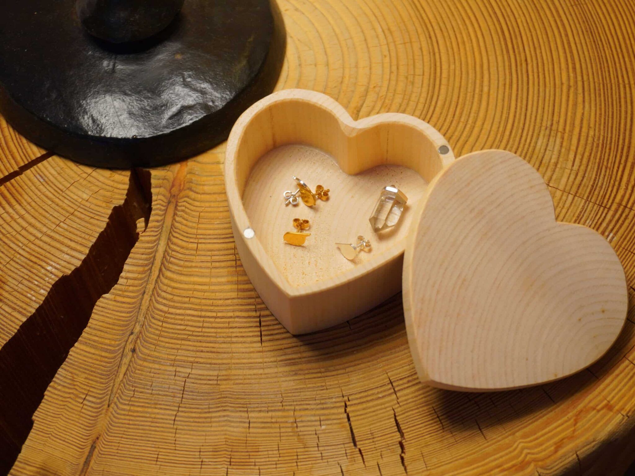 Für Deine Schmuckstücke und kleinen Schätze. Die wohlriechende Schmuckdose in Herzform wird aus Bündner Arvenholz aufwändig in der Schweiz von Hand gefertigt. Mit praktischem, passgenauen Magnetverschluss.