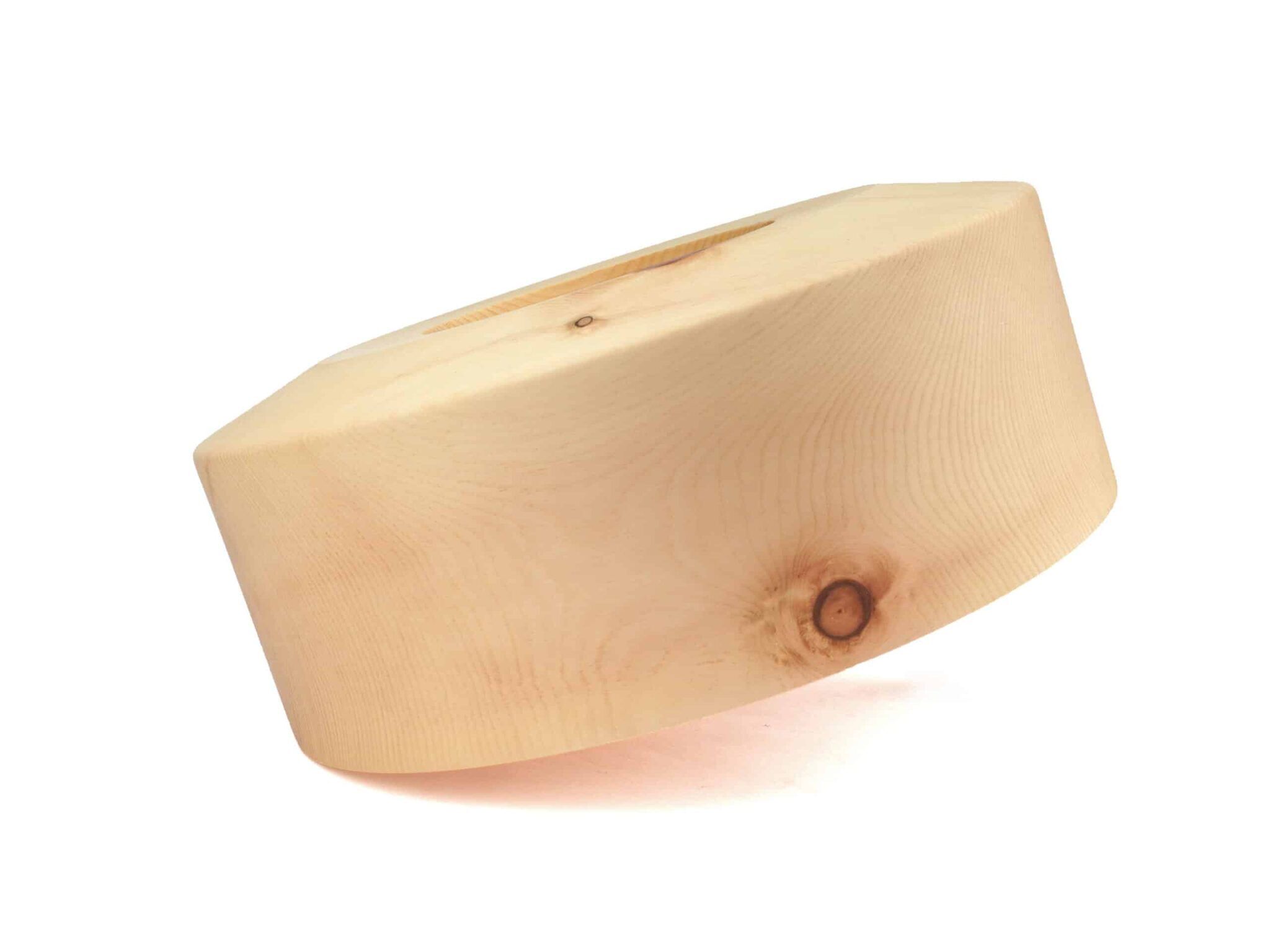 In Handarbeit drechselt Andreas die Schale aus einer Stammhälfte (Engadiner Arvenholz, FSC) und achtet dabei besonders darauf, die einzigartigen Stellen aus dem Stammstück herauszuarbeiten.