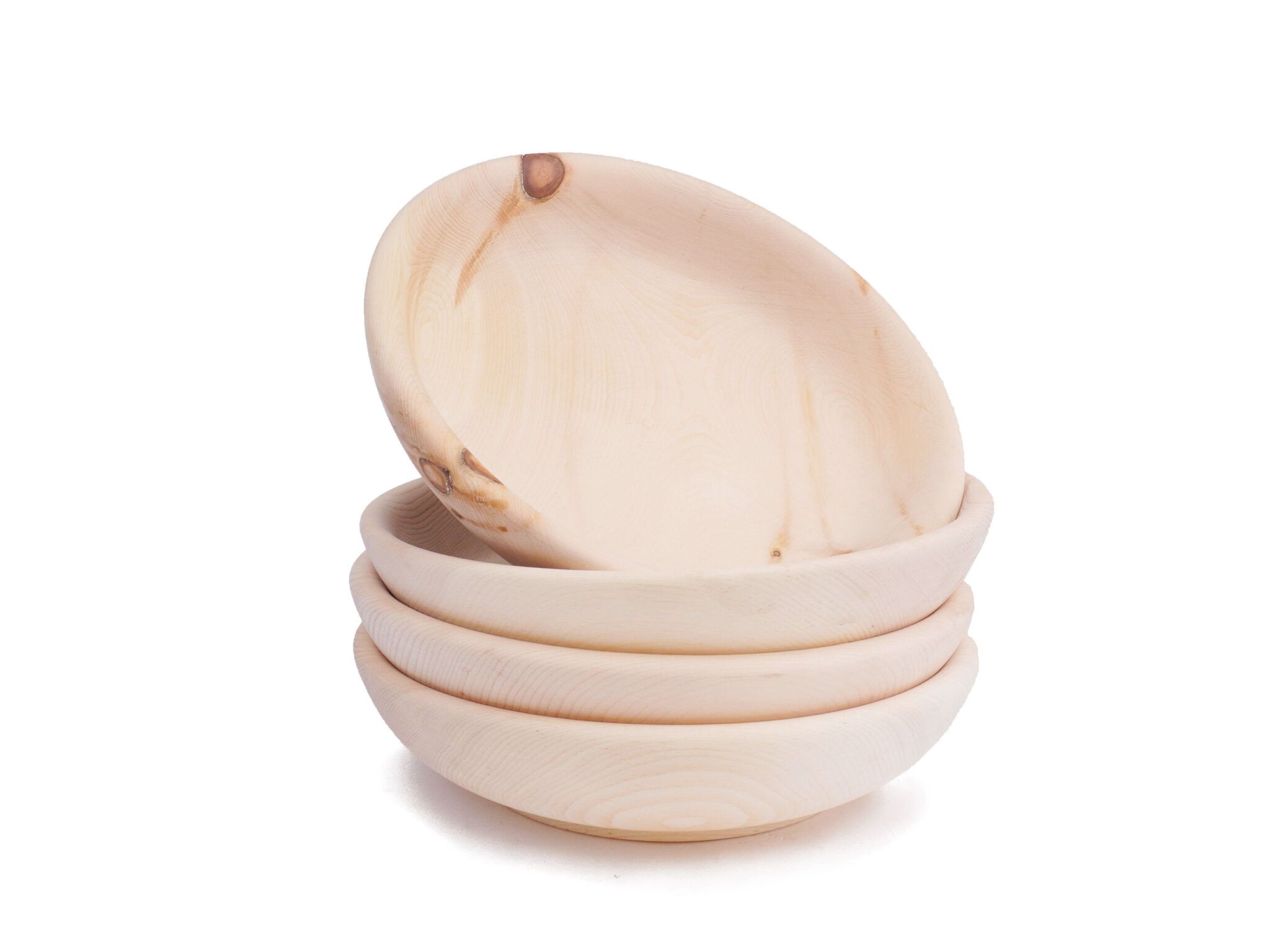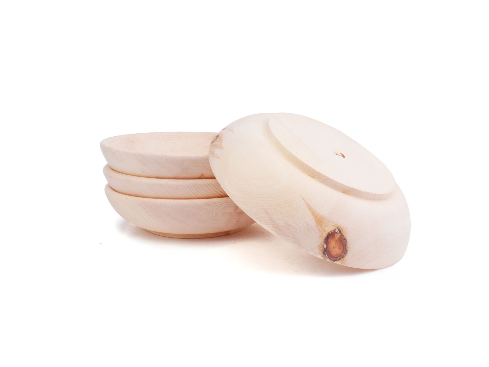 Wie beim Alpöhi: Die wunderschönen, tiefen Arventeller (D: 21.5cm im 4er Set) mit zeitloser Form werden aus feinstem Engadiner Arvenholz in der Schweiz gefertigt.