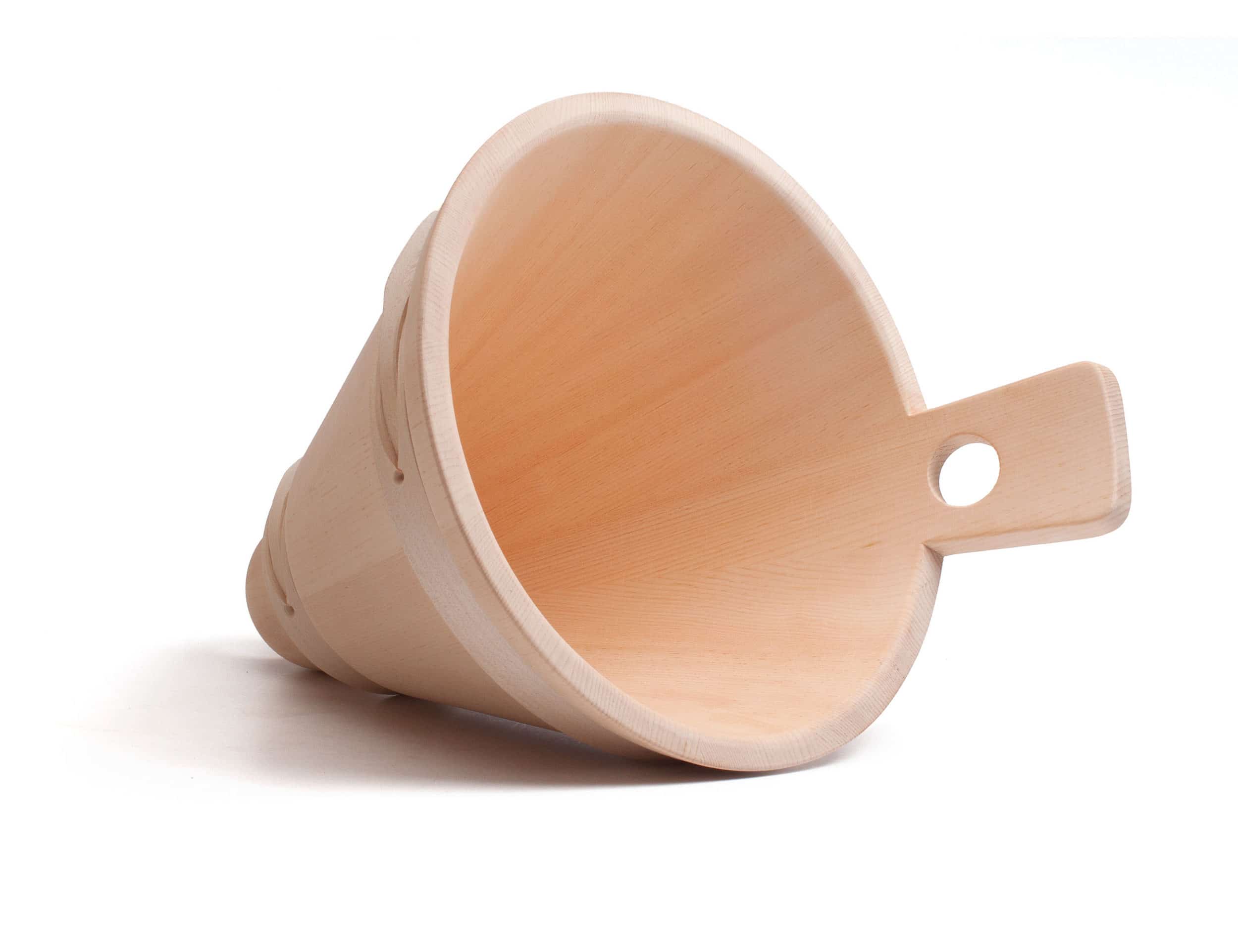 Der handgefertigte, formschöne Betruf-Trichter wird aus regionalem Holz (Föhre und Bergahorn / FSC) in der Werkstatt von Dieter geküfert – mit sehr viel Liebe zum Detail.