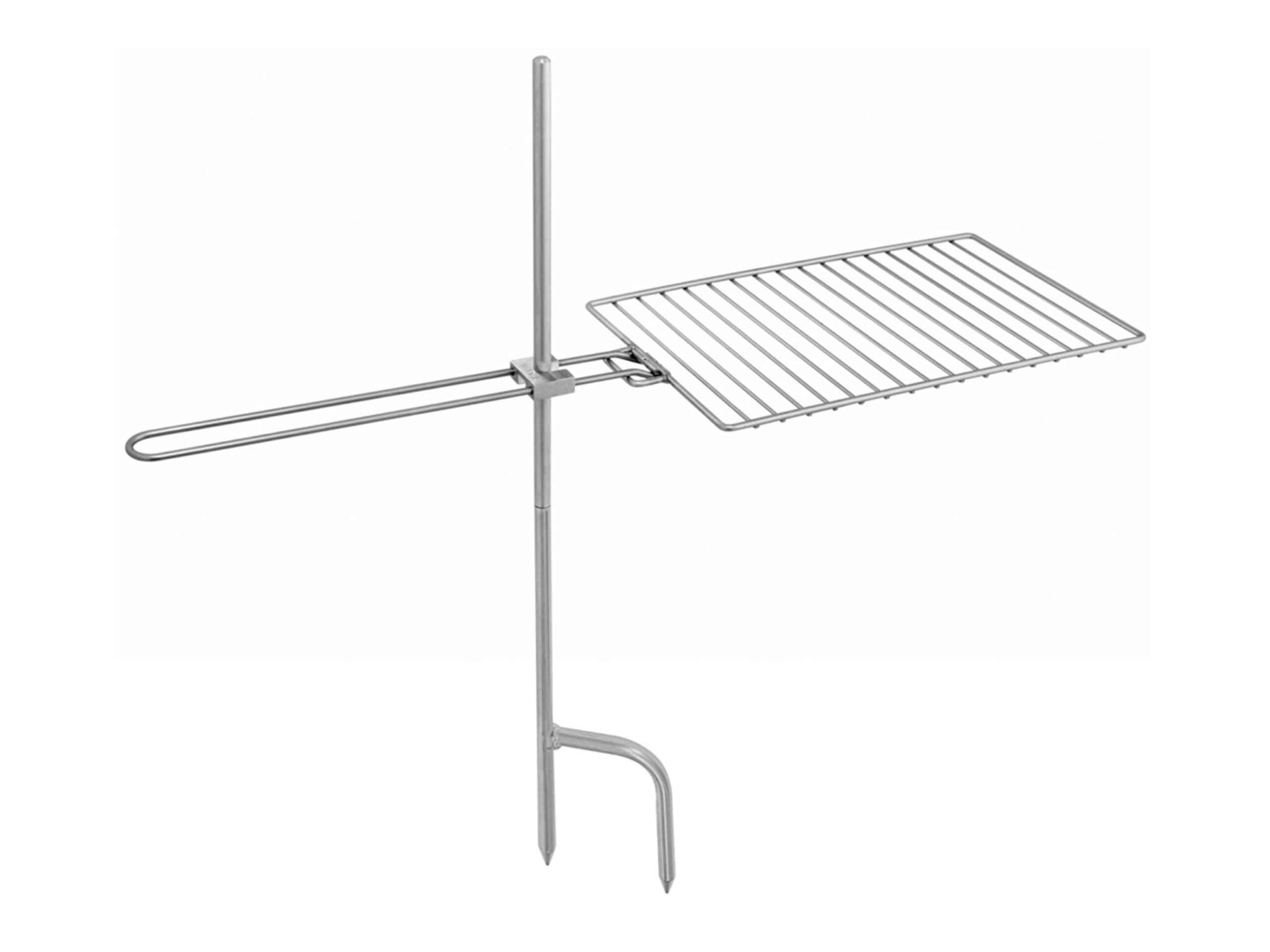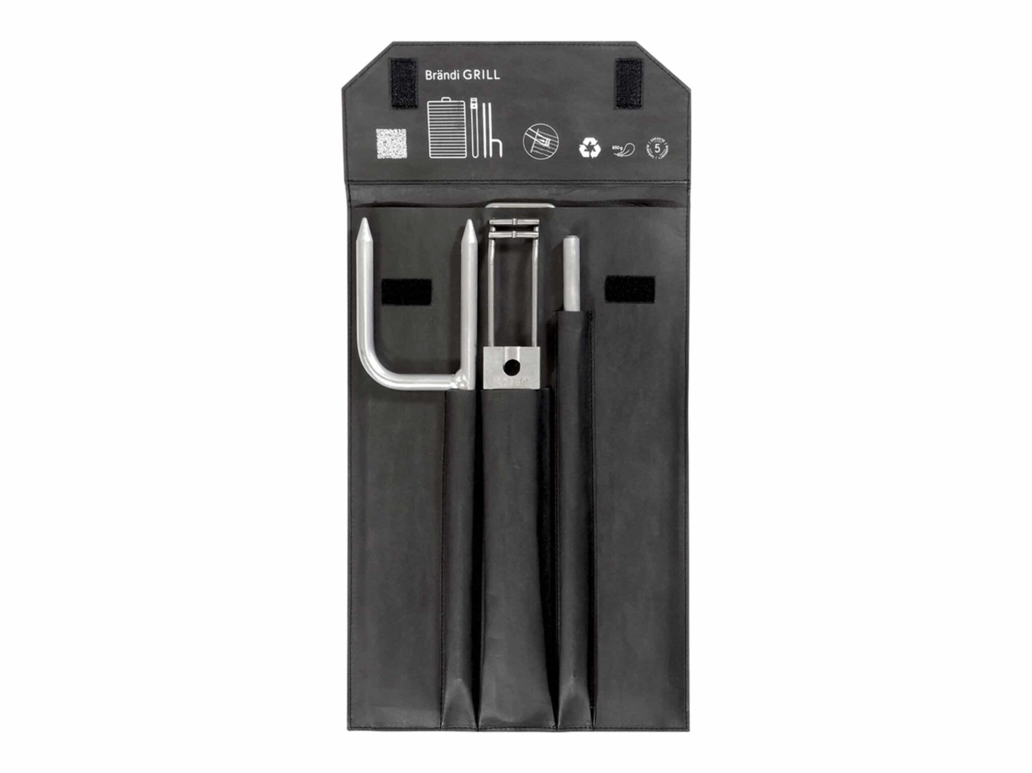 Das Original der Stiftung Brändi wird aus rostfreiem Edelstahl gefertigt, ist komplett zerlegbar, hat eine praktische Grösse (Grillfläche 34x22cm) und ist sehr schnell aufzustellen, leicht, ausschwenkbar und in Höhe und Tiefe stufenlos verstellbar. Dank dem neuen doppelten Steckfuss, findet er auch in hartem Untergrund sicheren Halt.