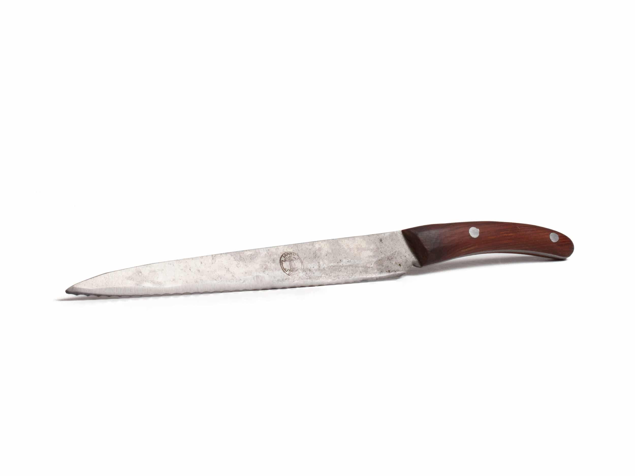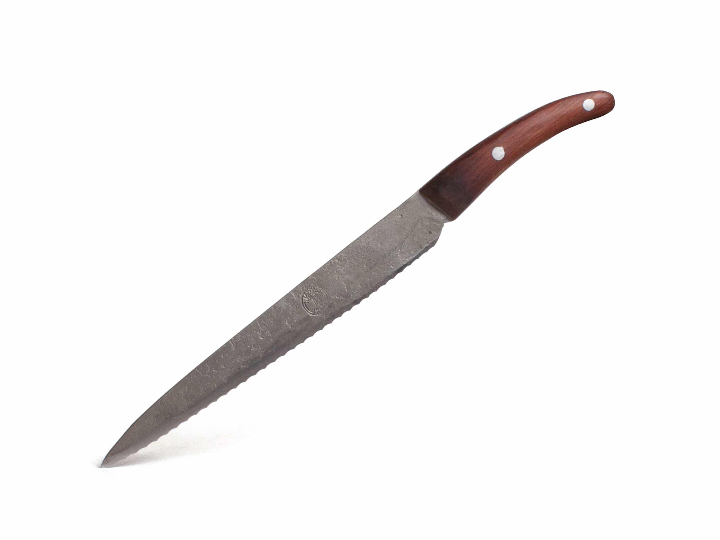 Das schöne, urchige Schweizer Brotmesser aus der denkmalgeschützten Schmiedewerkstatt von Thomas Lampert. Das Liebhaber-Messer wird handgeschmiedet, gebürstet und geschliffen.