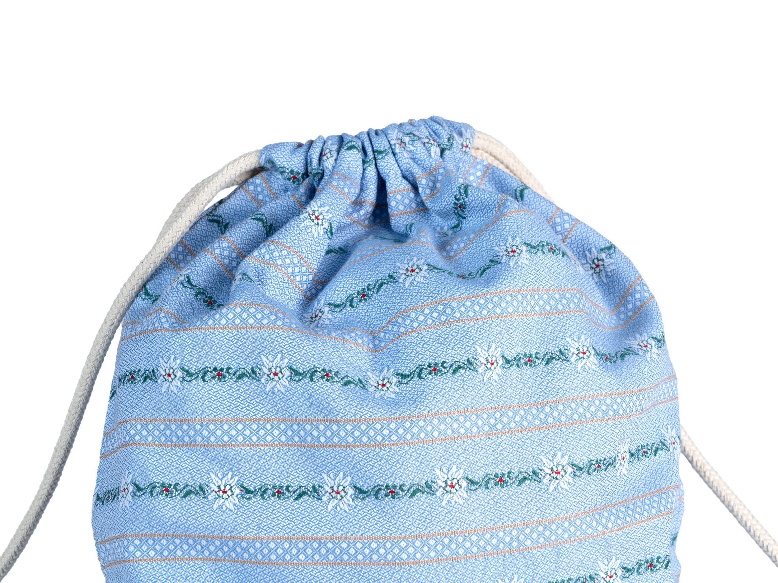 Dieser stilvolle Edelweiss Bag ist eine wunderbare Mischung zwischen urbanem Design und traditionellem Material. Das Edelweiss Rucksäckli wirkt jung und urchig gleichzeitig und ist ein schönes Produkte fürs Schwingfest, die Badi, den Festival-Besuch oder einfach als tolles Sommer-Accessoire.