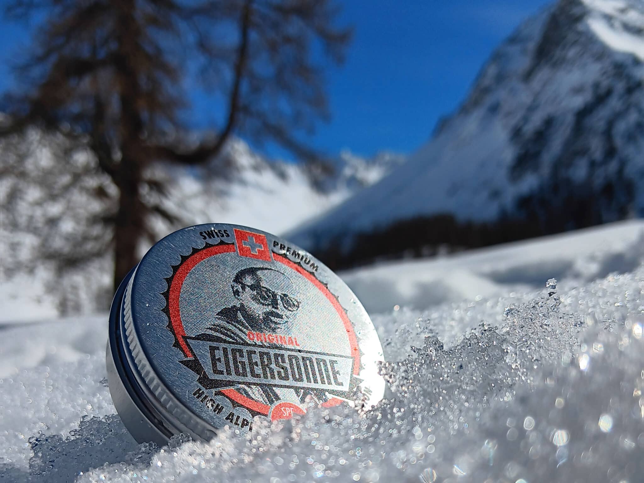 Eigersonne – die Schweizer Sonnencrème speziell für den hochalpinen Bereich. Die hochwertige, feste Crème in der praktischen Nostalgiedose* mit Sonnenschutzfaktor SPF 50+ schützt Gesicht und exponierte Stellen (Ohren, Nase, Lippen) langanhaltend vor UVA und UVB-Strahlen. Da die Eigersonne kein Wasser enthält, kann sie bei Minusgraden nicht gefrieren und bewahrt die natürliche Hautbarriere.