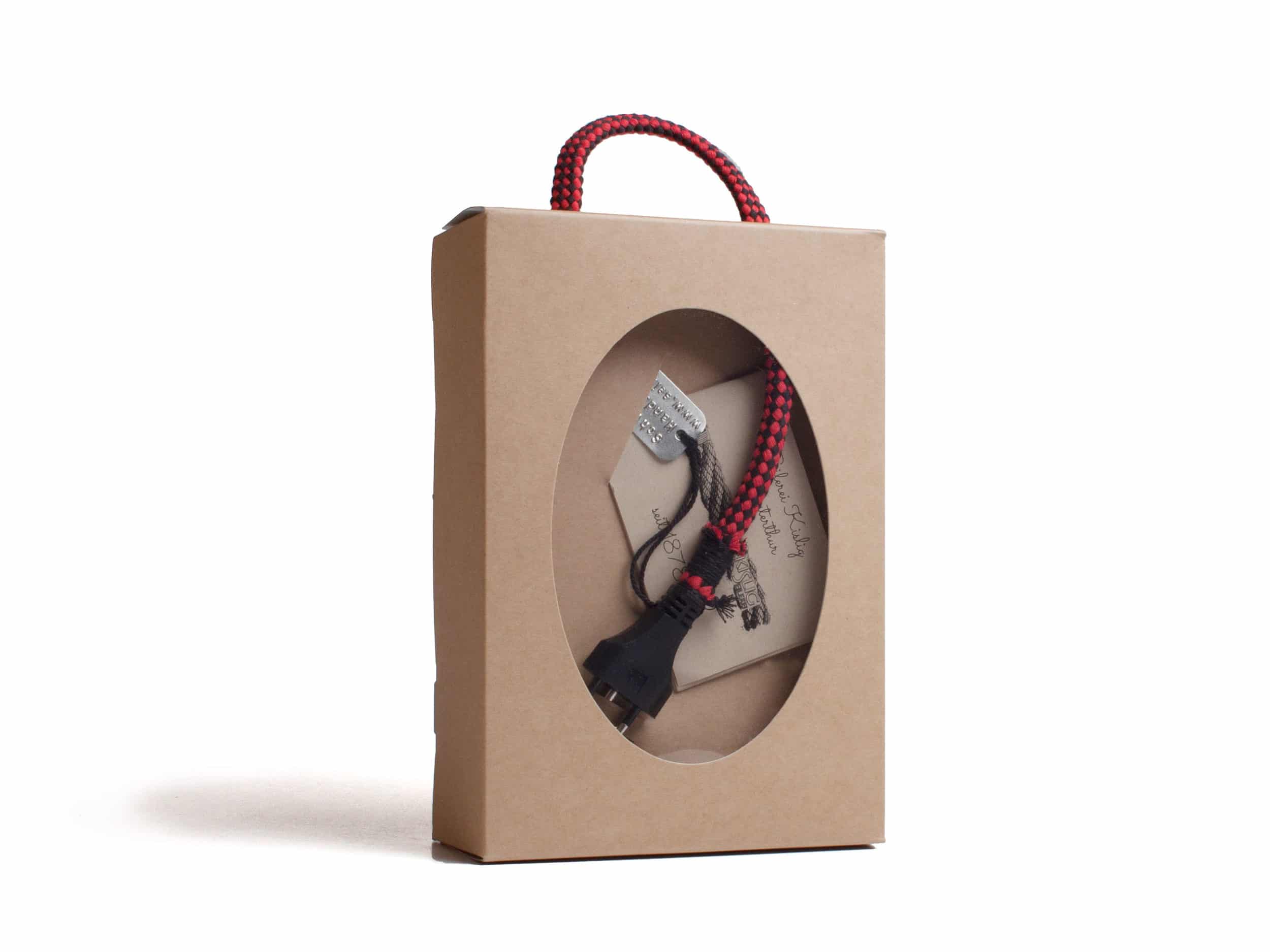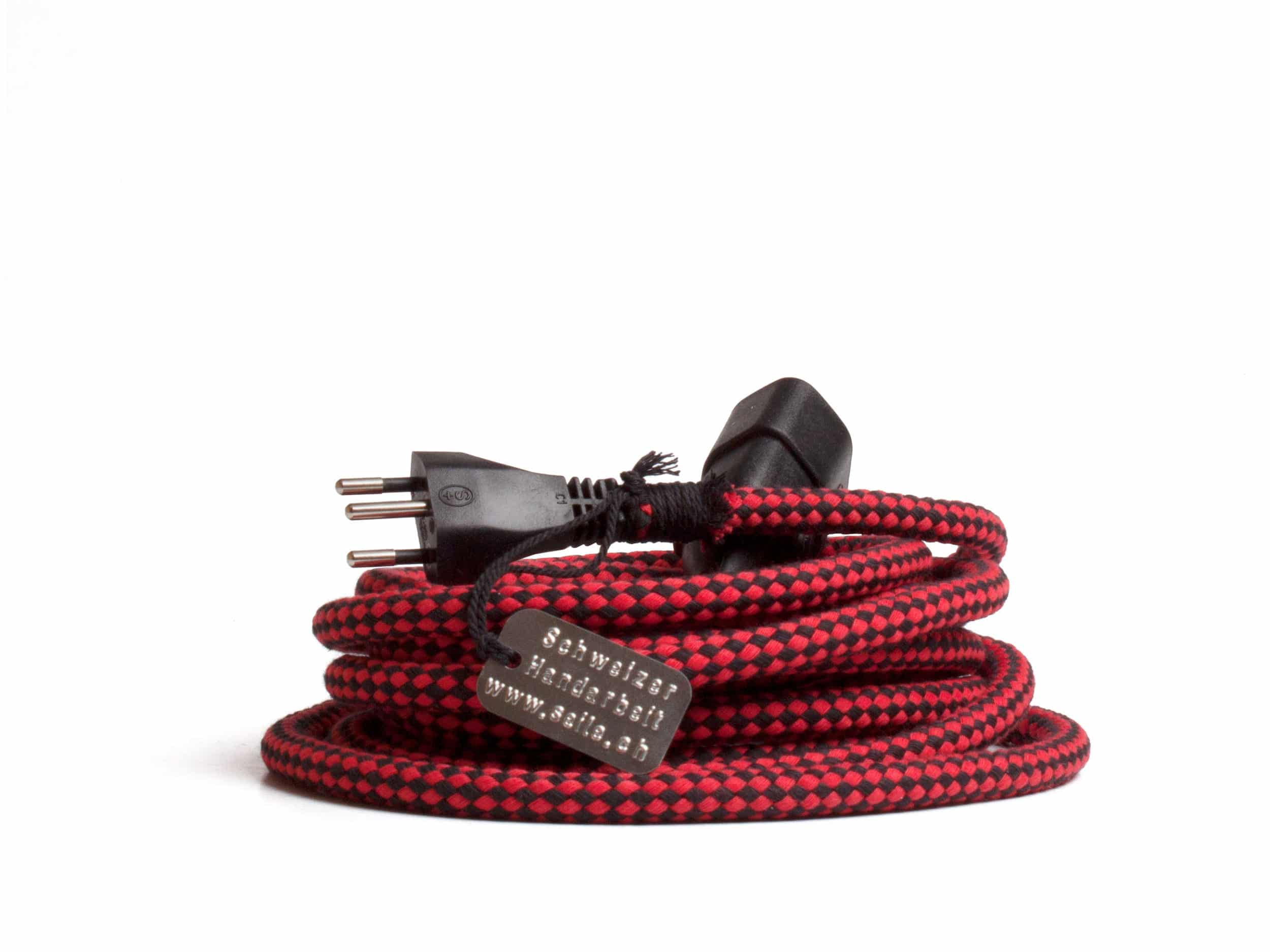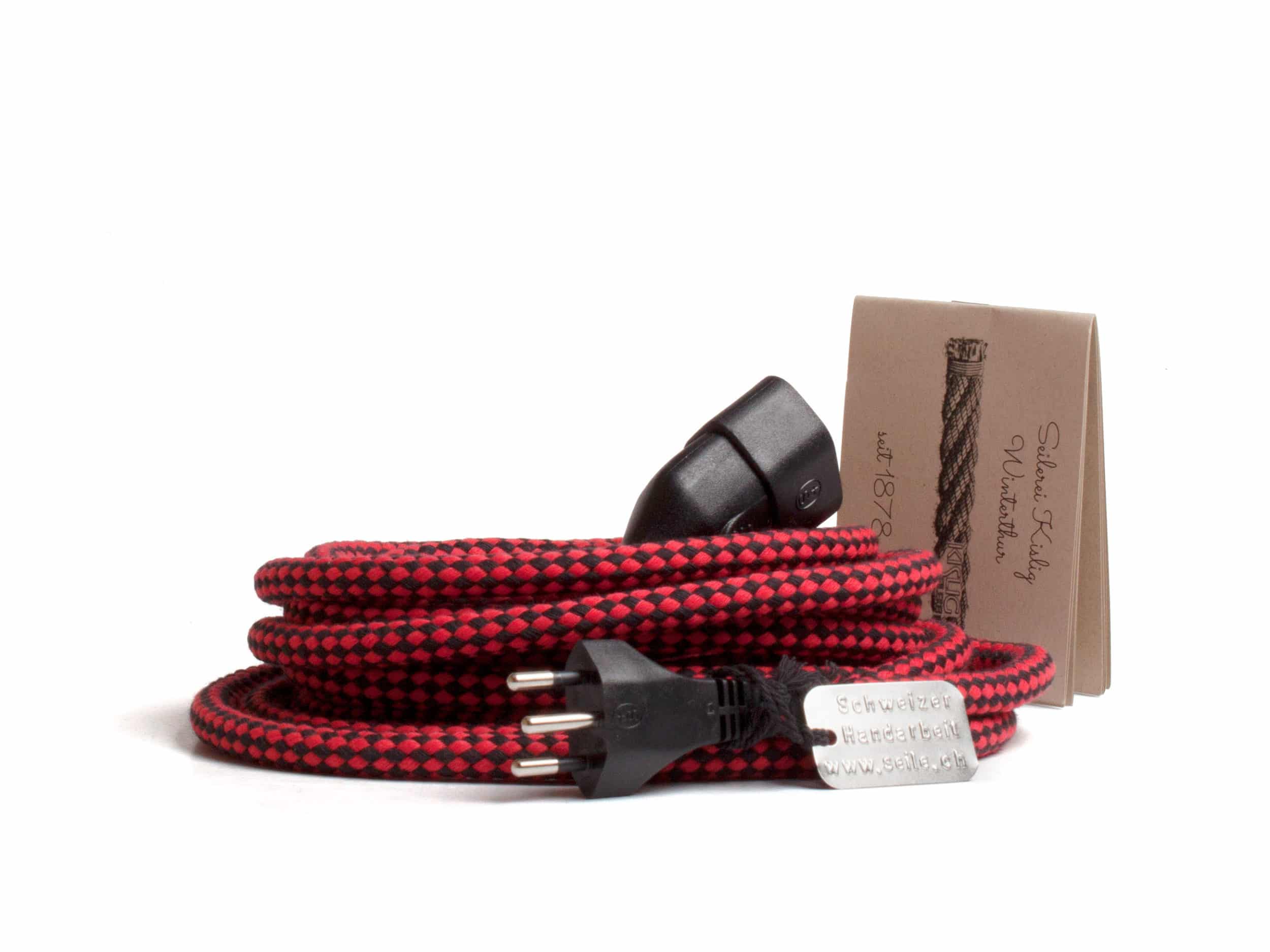 Auch ein Verlängerungskabel kann schön sein. Das dekorative «Elektroseil» wird von Martin in der traditionellen Seilerei hergestellt. Das 5 Meter lange Verlängerungskabel ist mit Baumwolle umflochten und von Hand abgebunden.