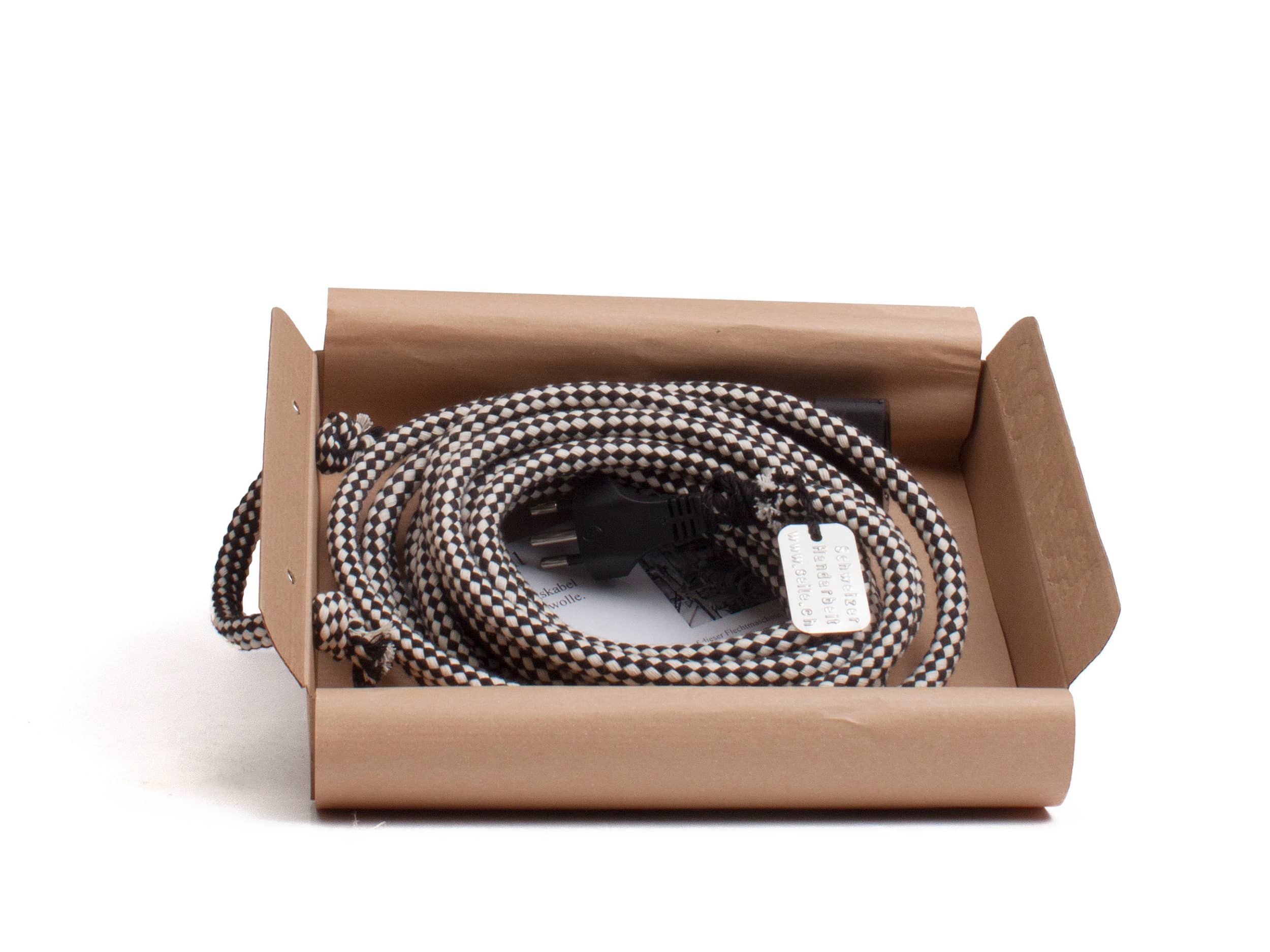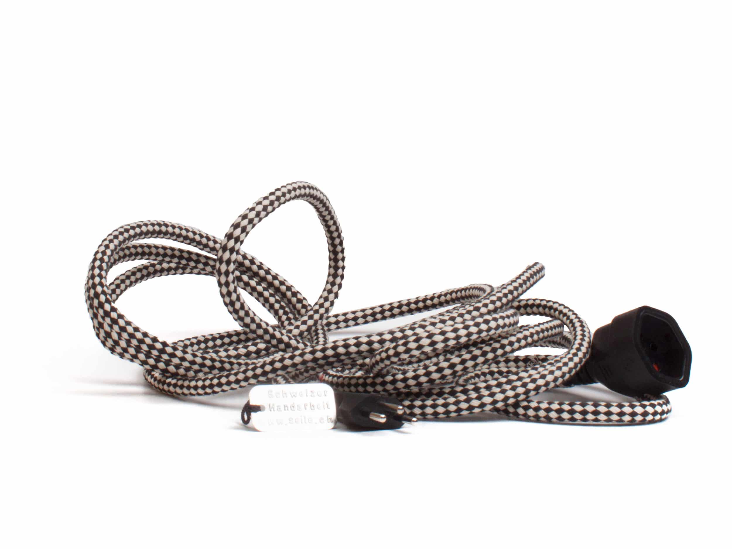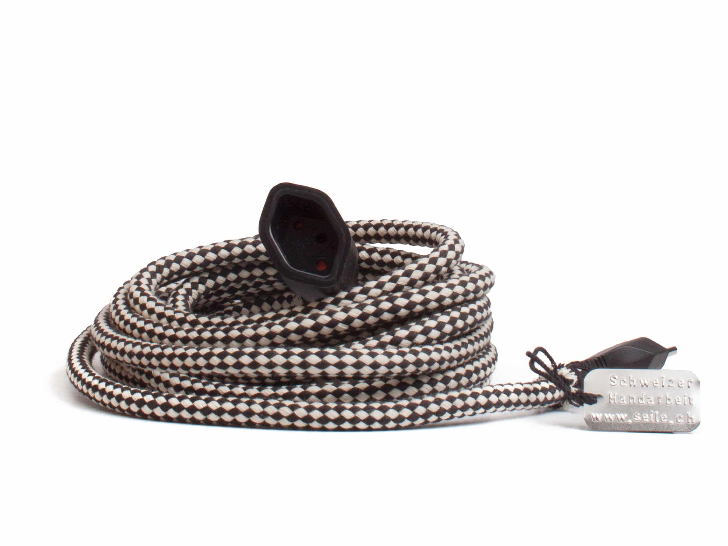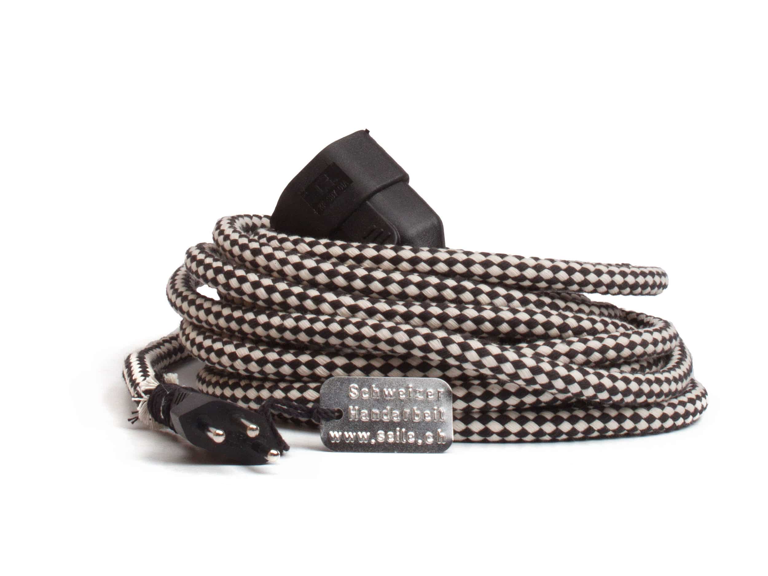 Auch ein Verlängerungskabel kann schön sein. Das dekorative «Elektroseil» wird von Martin in der traditionellen Seilerei hergestellt. Das 5 Meter lange Verlängerungskabel ist mit Baumwolle umflochten und von Hand abgebunden.