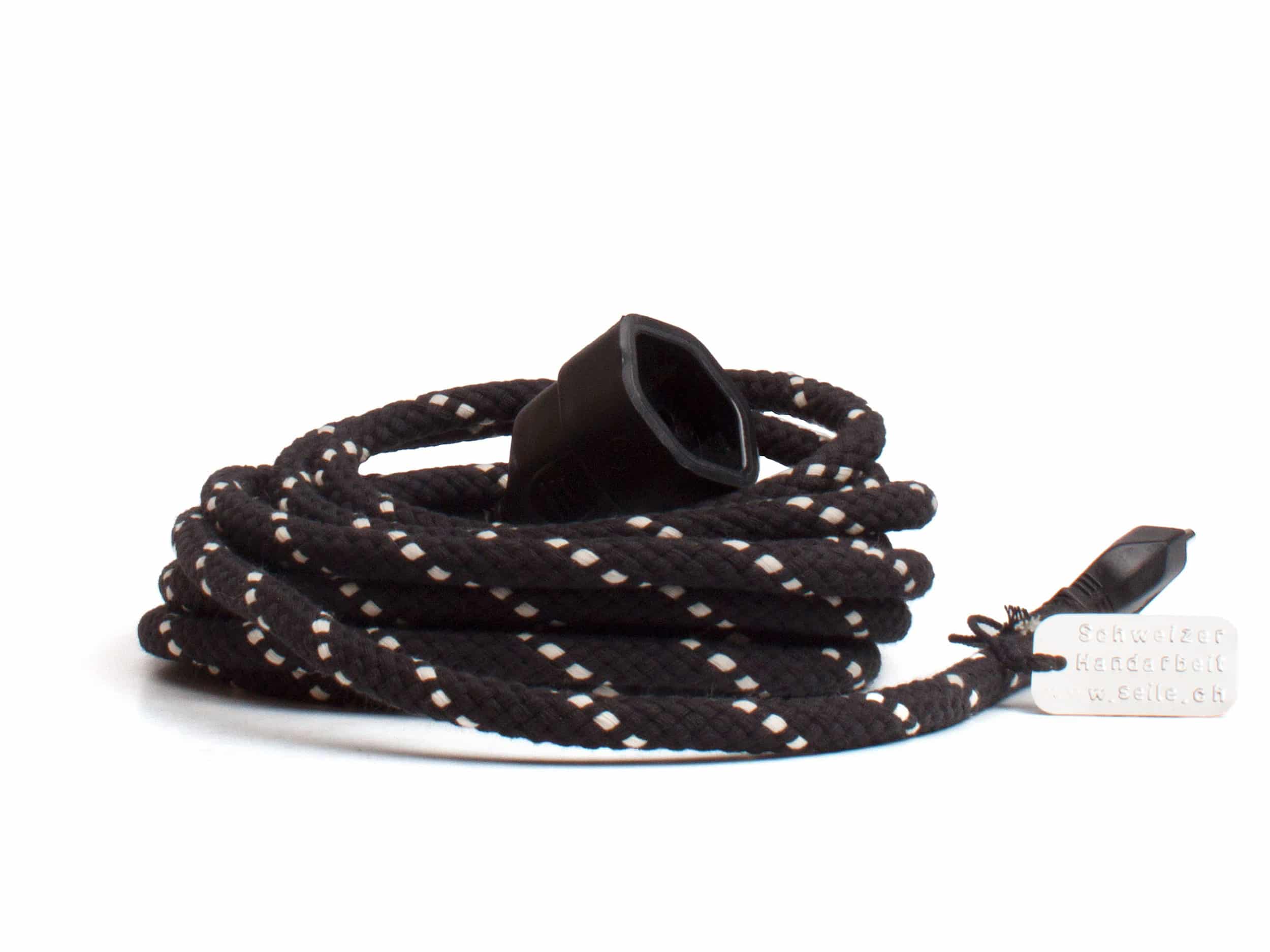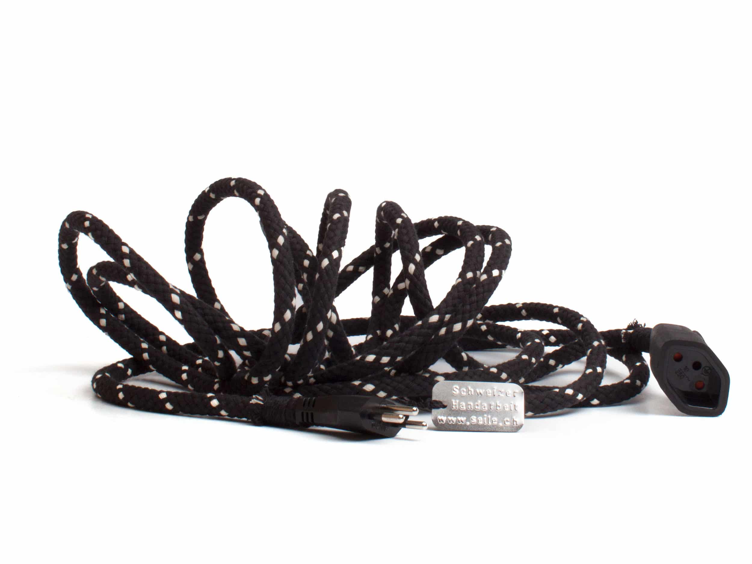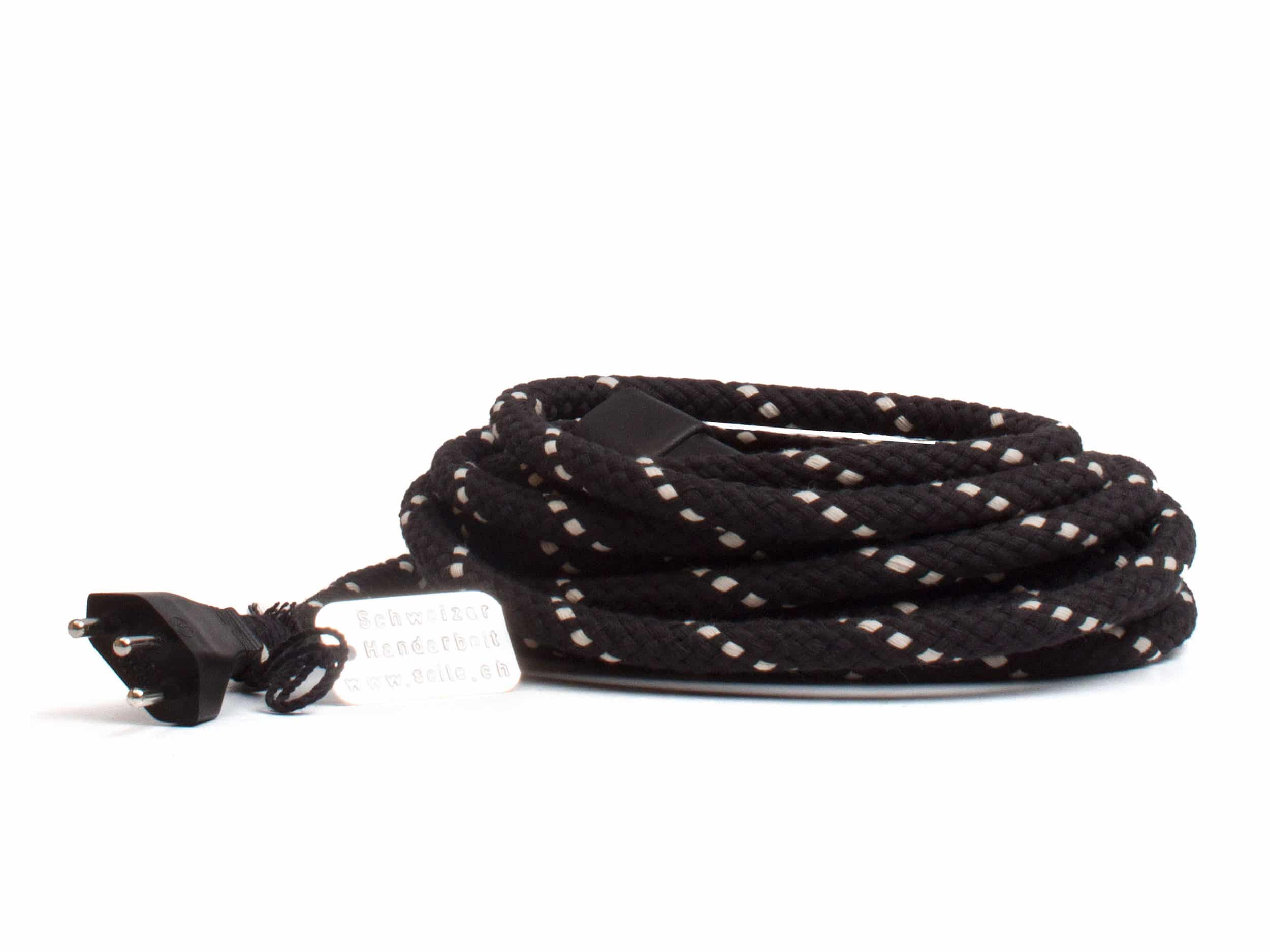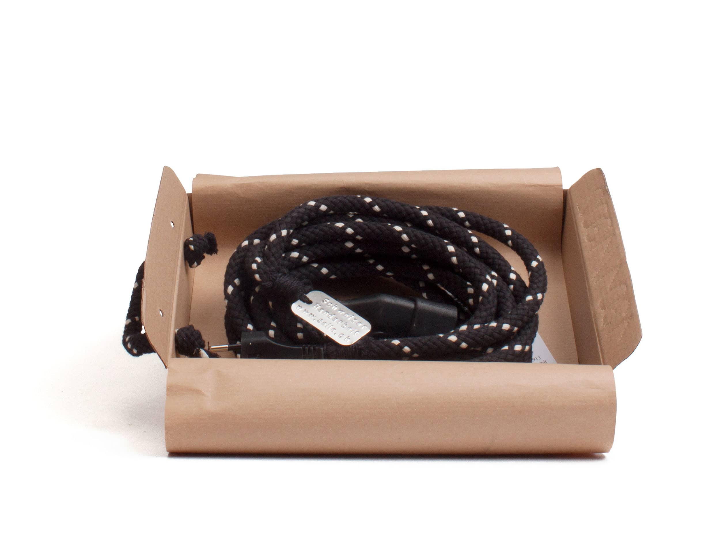 Auch ein Verlängerungskabel kann schön sein. Das dekorative «Elektroseil» wird von Martin in der traditionellen Seilerei hergestellt. Das 5 Meter lange Verlängerungskabel ist mit Baumwolle umflochten und von Hand abgebunden.