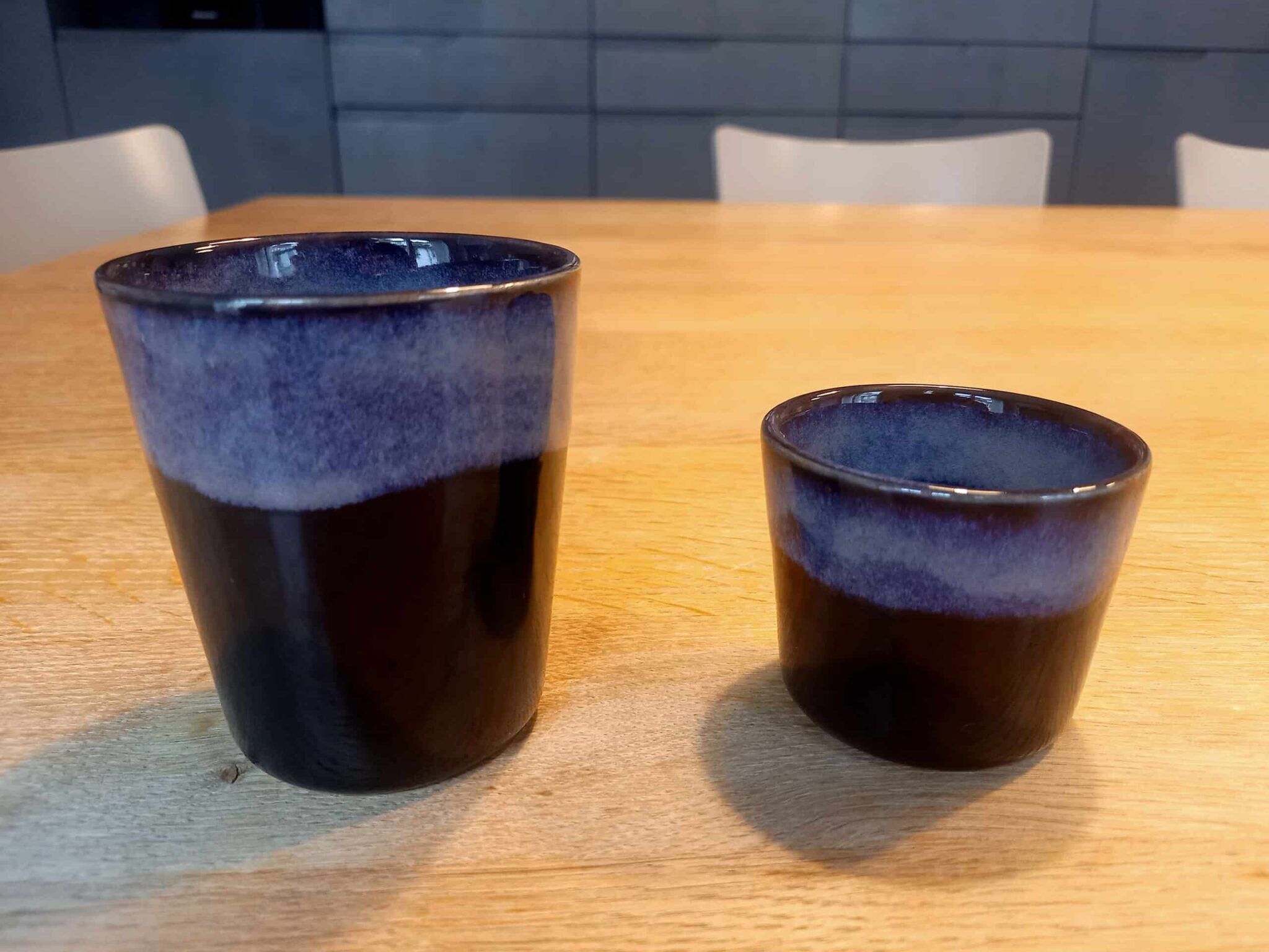 Jedes Stück wird in der Schweiz von Hand gefertigt. Kleine Unregelmässigkeiten in Form und Farbe sind Spuren des Handwerks und machen jeden Becher einzigartig.