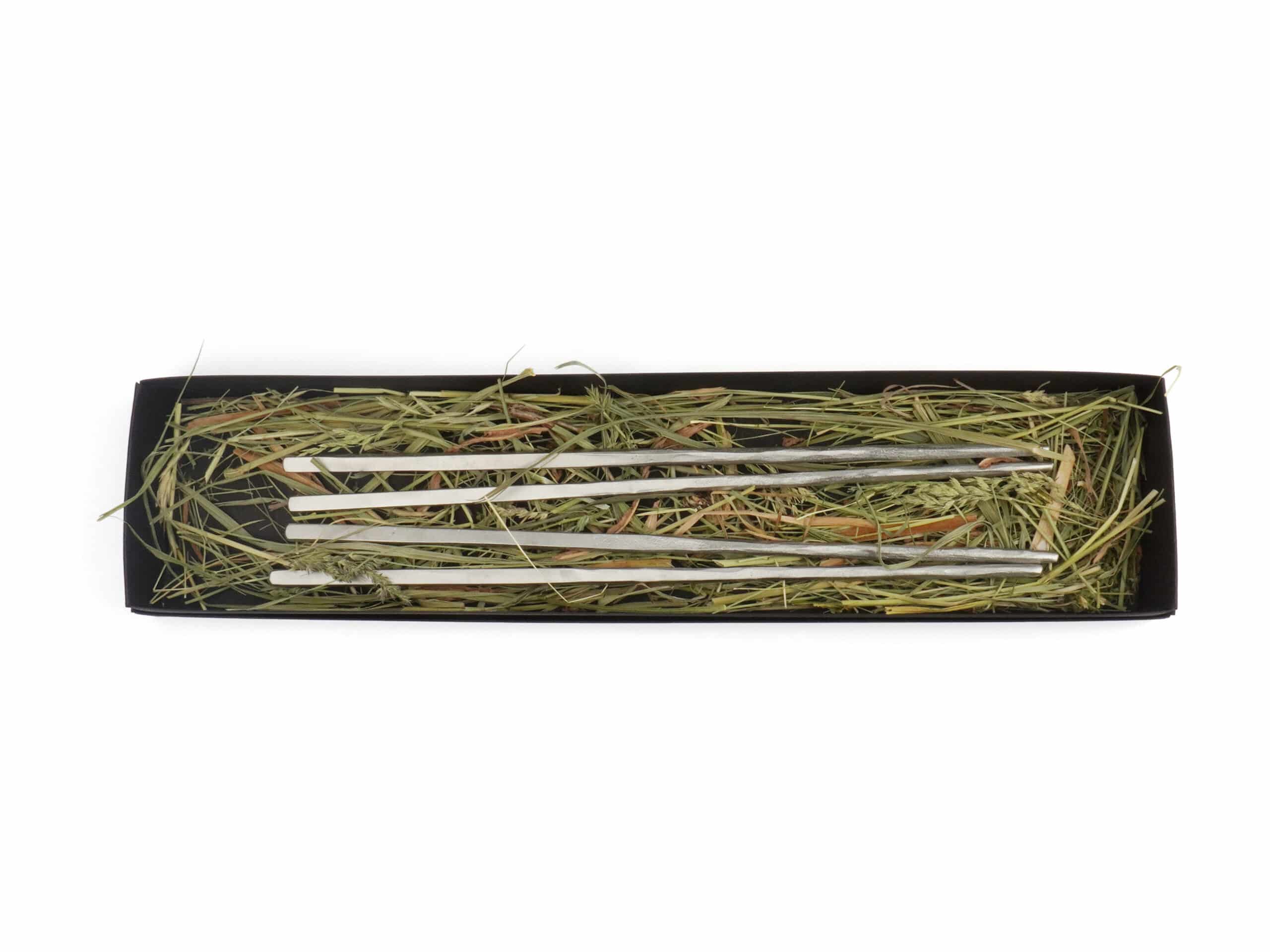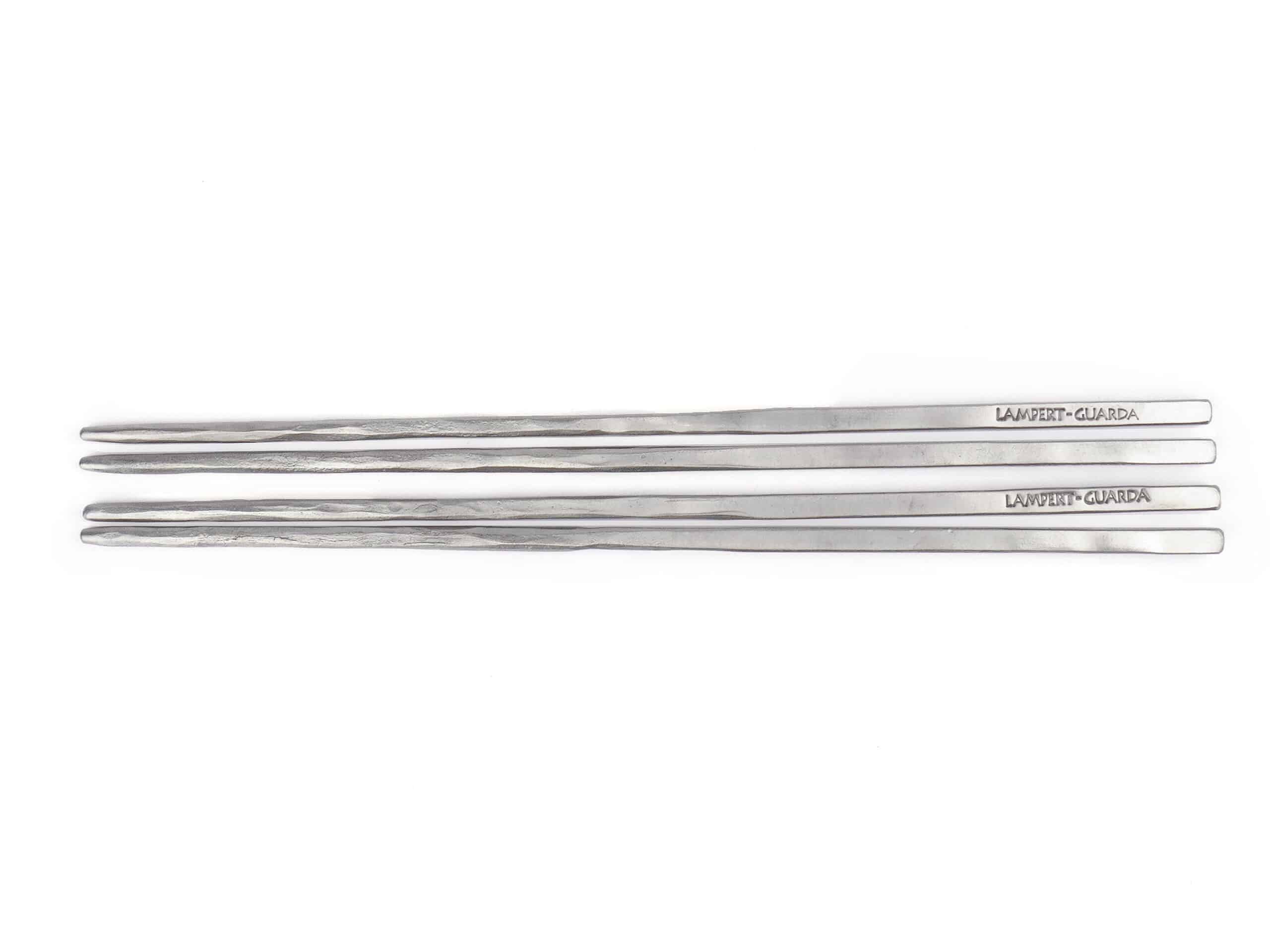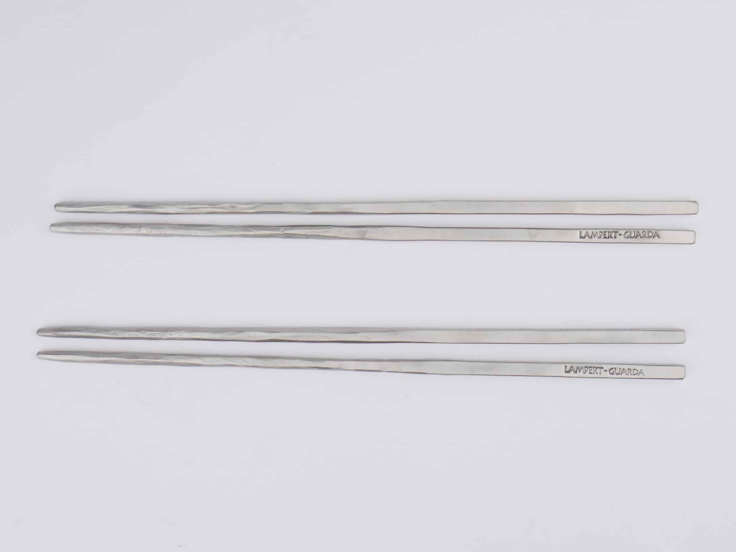 Diese schlichten Essstäbchen aus Metall sind zwar etwas schwerer, halten aber dafür ein Leben lang. Sie werden von Thomas Lampert in Guarda handgeschmiedet. Ein charaktervolles und langlebiges Stück Schweizer Handwerkskunst für Dein Zuhause.