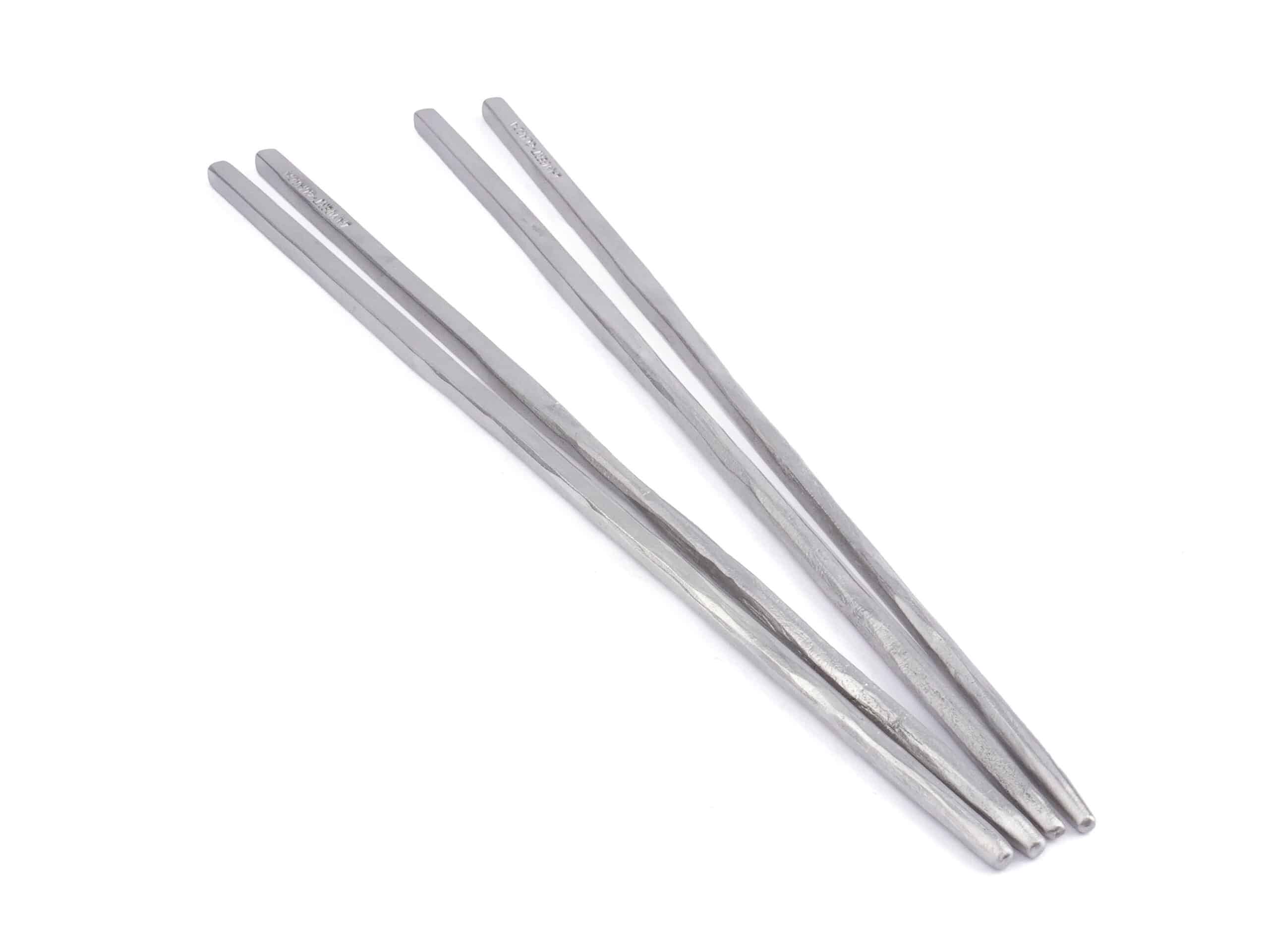 Set mit 4 Essstäbchen. Aus INOX-Messerstahl 1.4034 hergestellt und für die Spülmaschine geeignet.  Trotz des rostfreien Stahls könnte ein wenig Flugrost auftreten, wenn das Produkt nicht abgetrocknet wird.