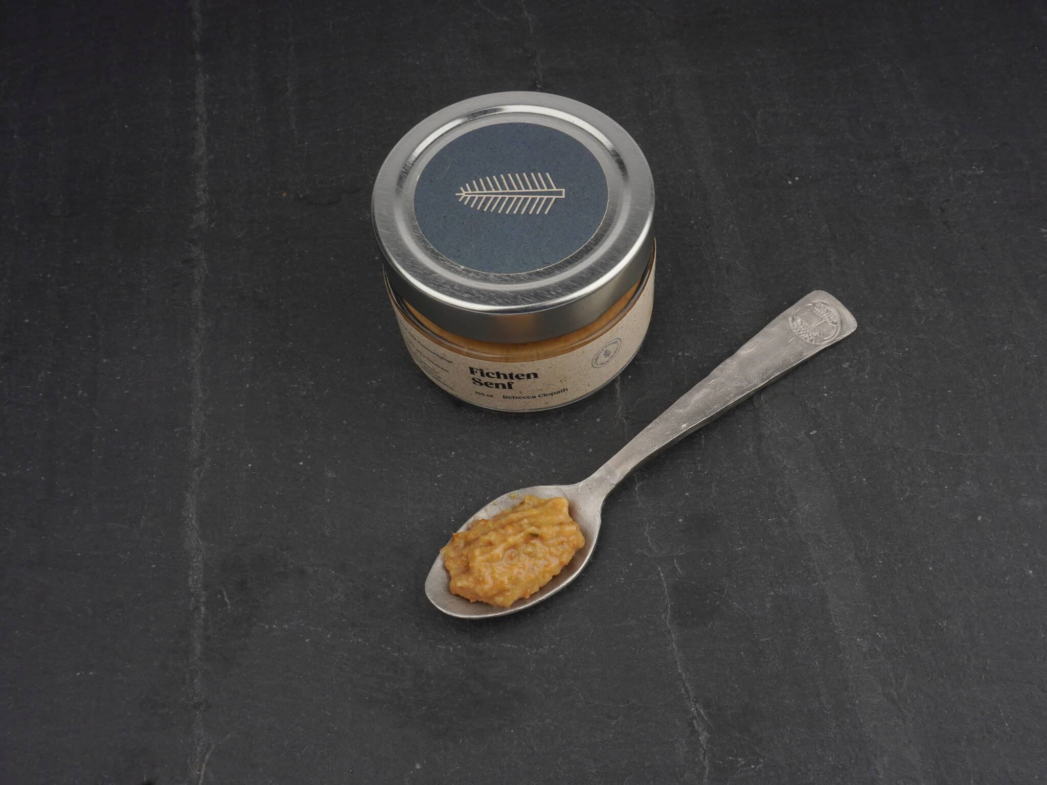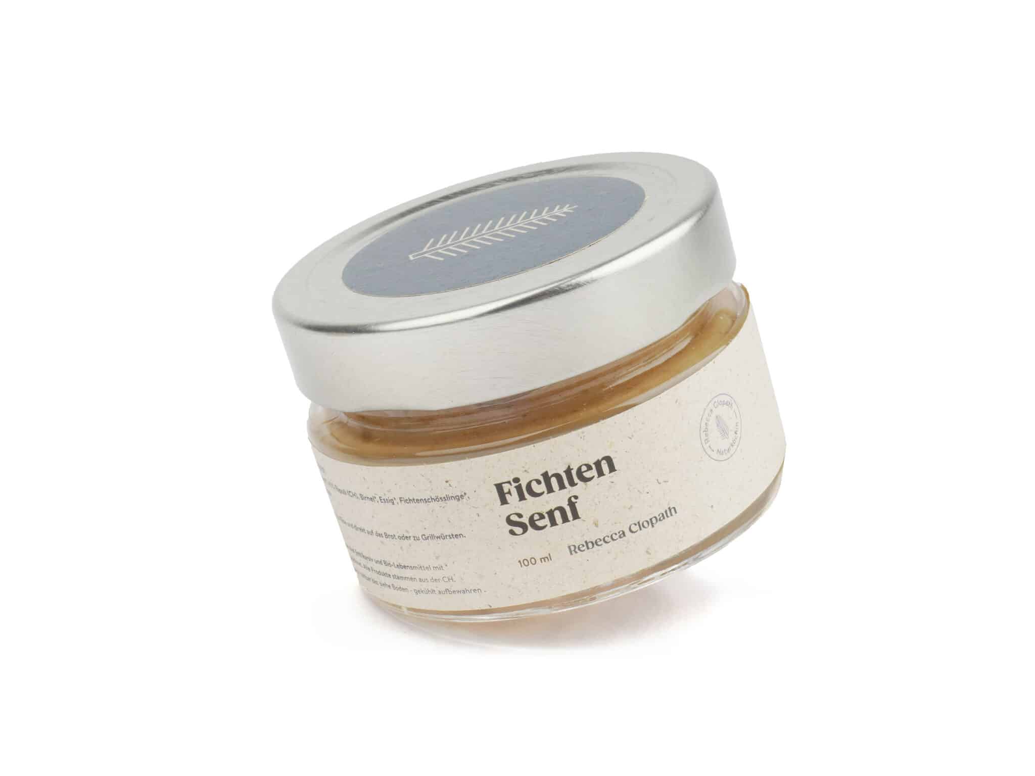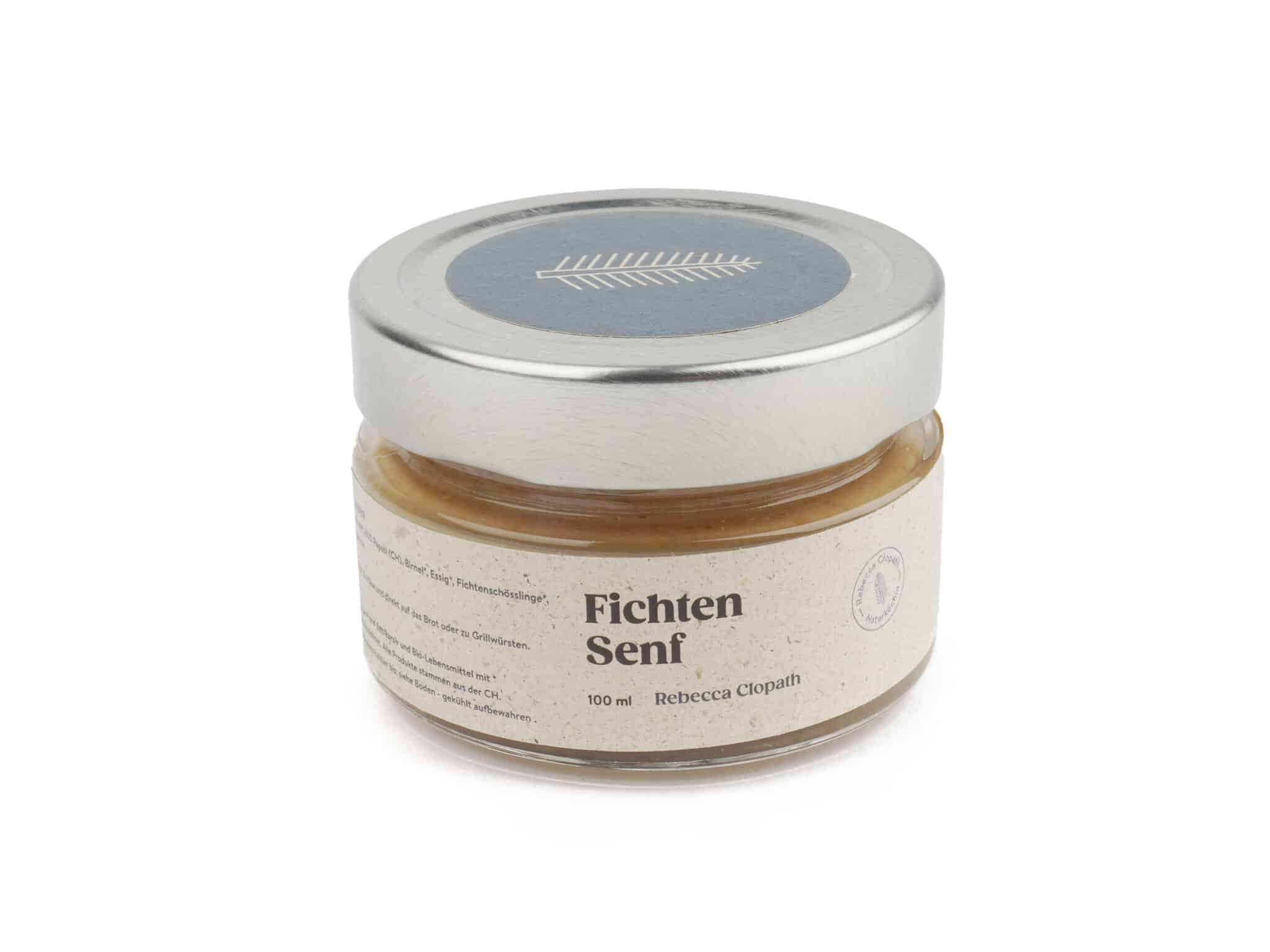 Fichten Senf (100ml) Spezialität im Glastöpfli. Sorgfältig hergestellt von Naturköchin Rebecca Clopath in Lohn (GR). Passt perfekt zu Käse, Grillwürsten oder direkt auf das Brot.