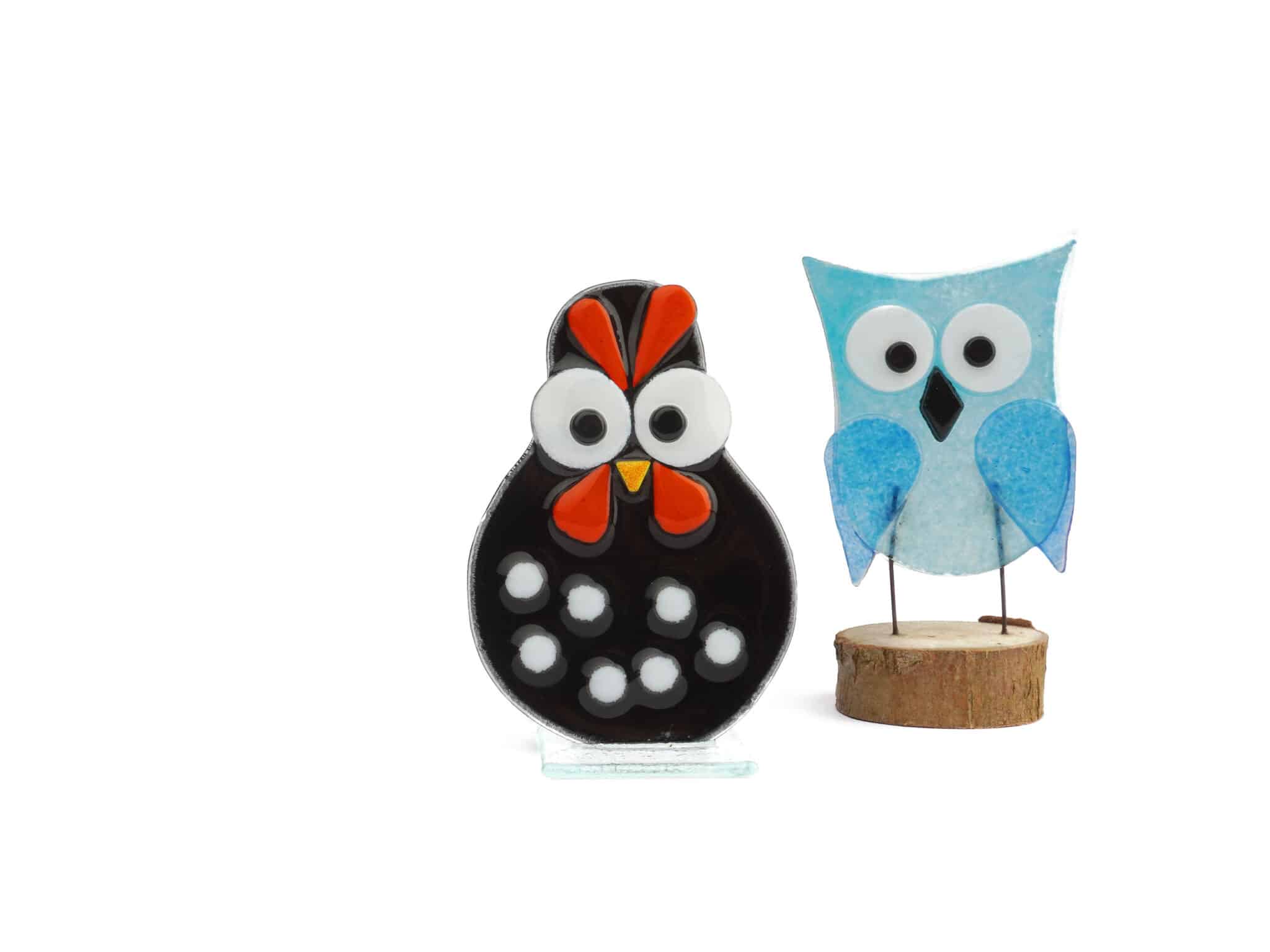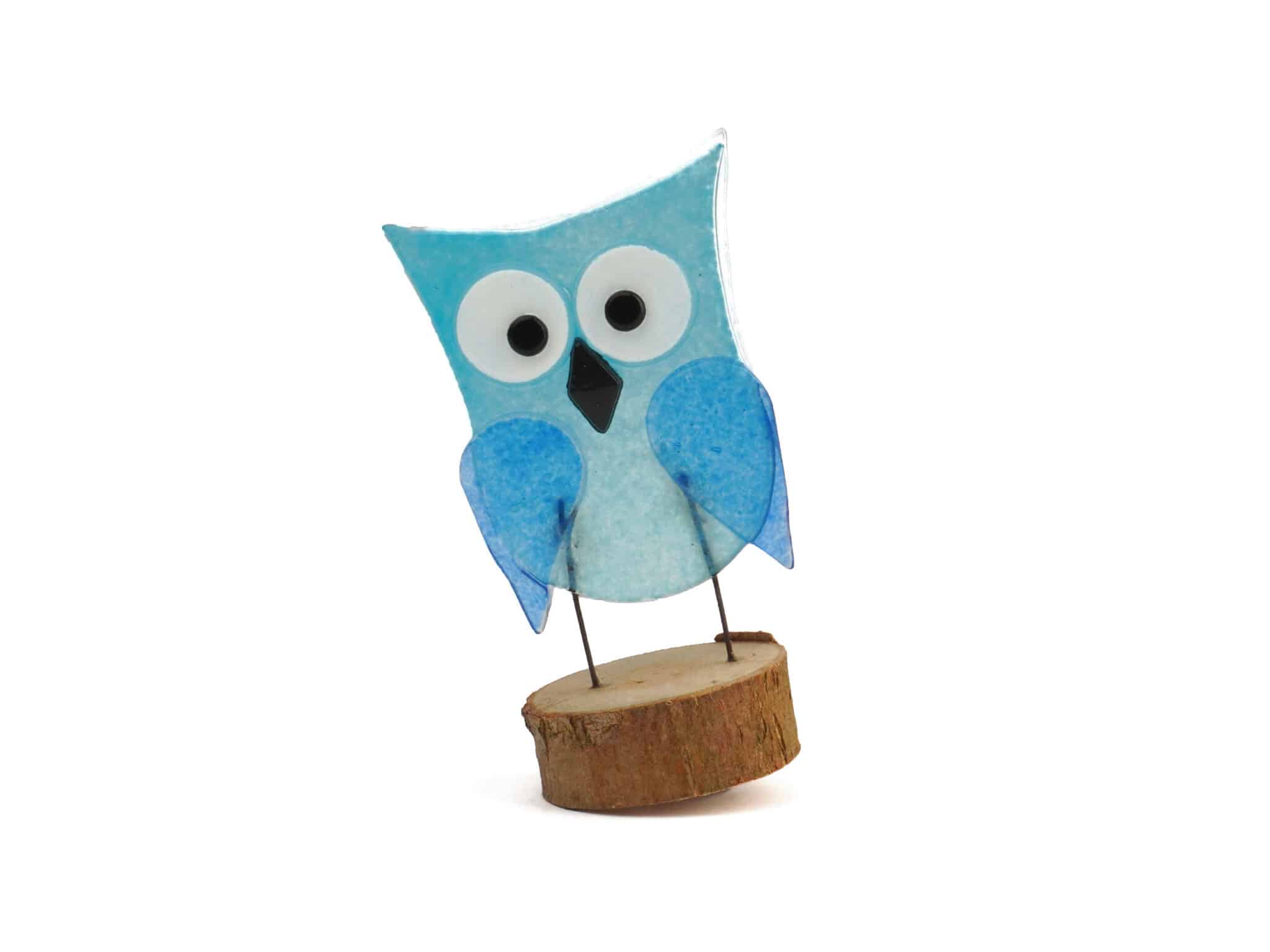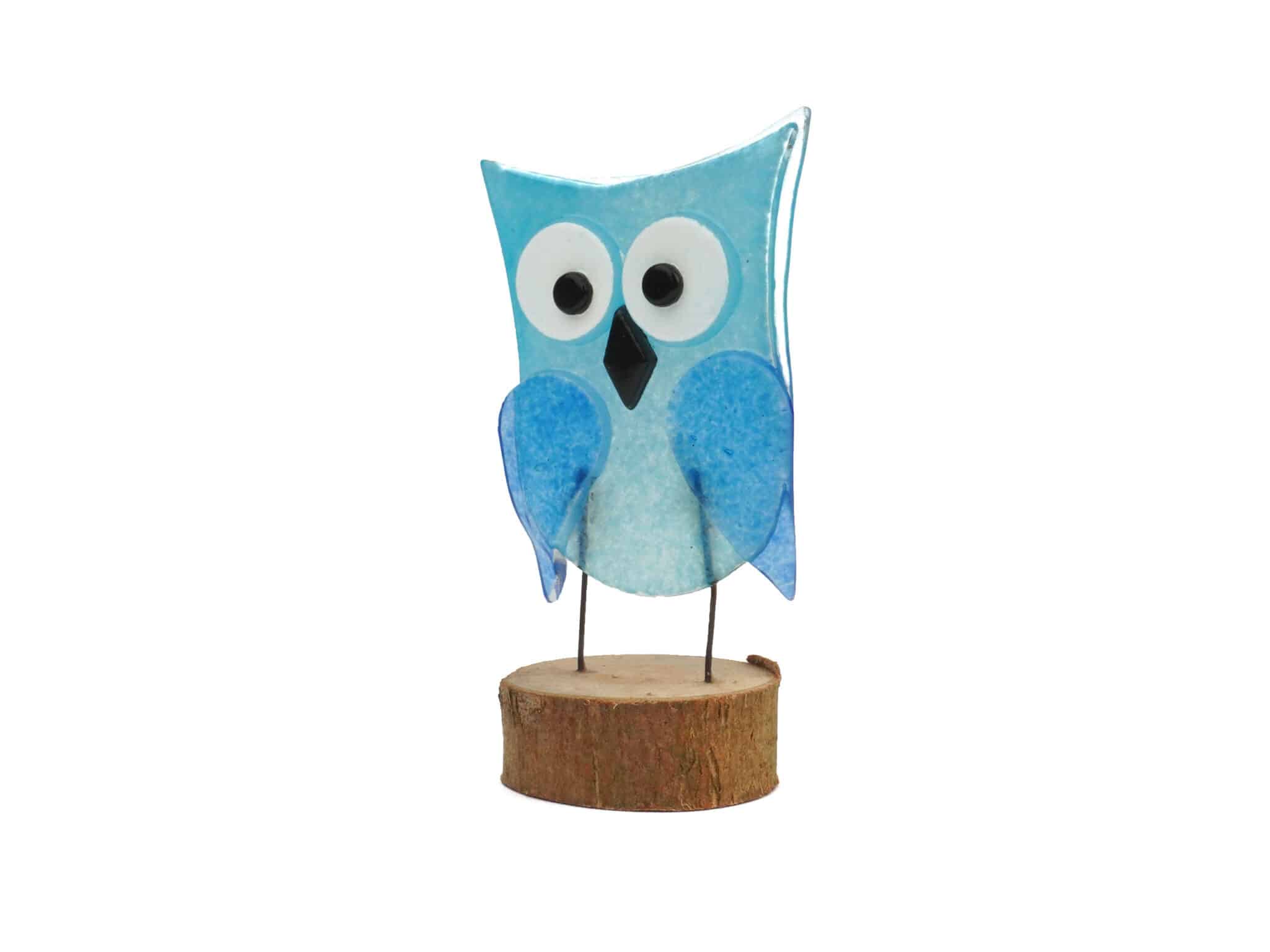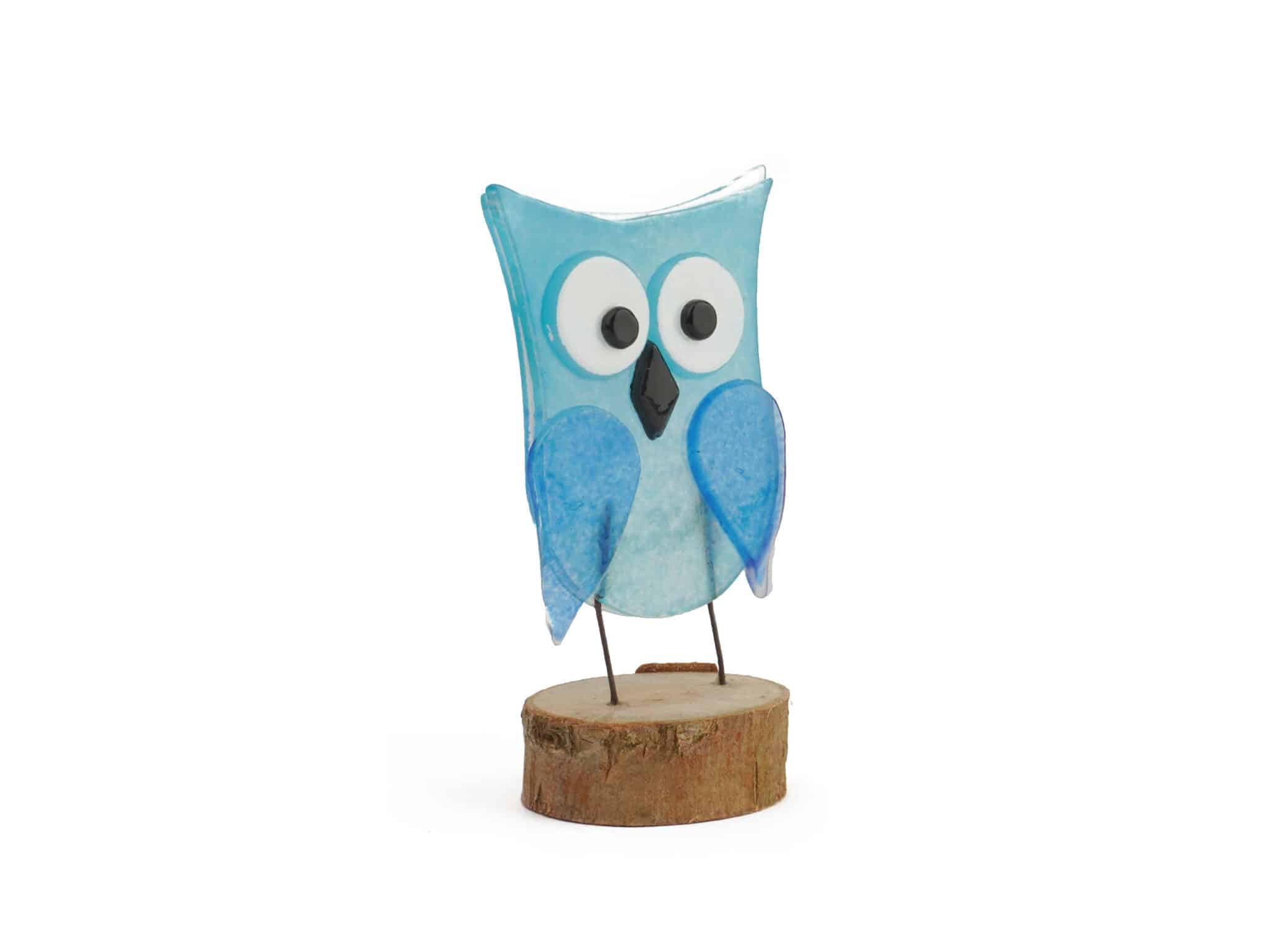 Ob fürs Büro, den Esstisch, im Schlafzimmer, Bad oder Garten. Die Glas Eule «Tobi» (Höhe 13cm) guckt Dich mit grooossen Augen an und macht gute Laune. Schweizer Dekoration von Hand gefertigt von Menschen mit Beinträchtigung in der Schweiz.