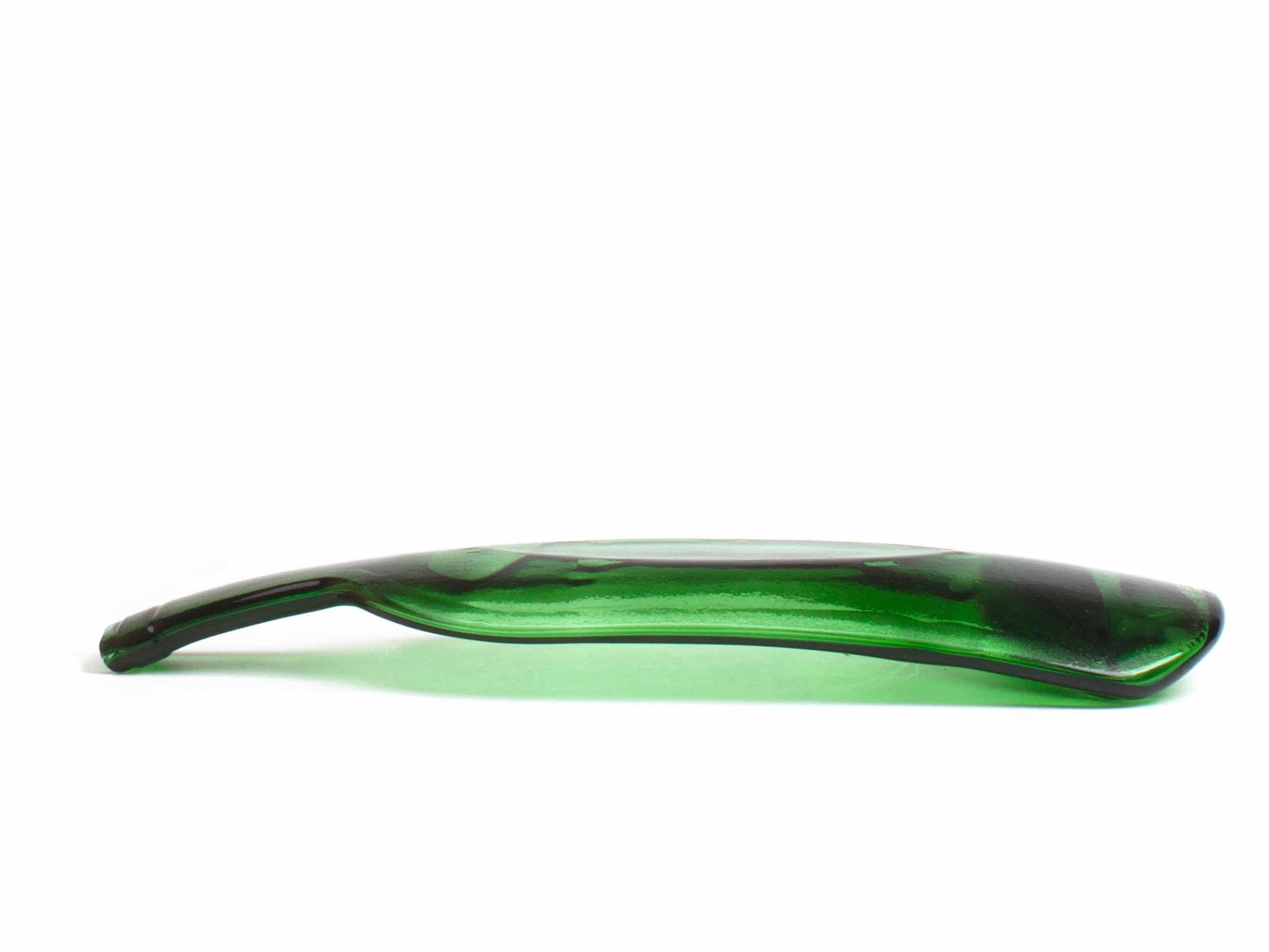 Der Hals ist leicht angehoben, der Körper zu einer eleganten Glasschale geschwungen. Die Breite kann je nach Weinflasche etwas variieren. Die Glasschale Grosse Welle eignet sich zum Servieren von Esswaren wie Käse, Früchte, Gebäck oder Süssigkeiten. Und auch Schmuck oder Schreibutensilien lassen sich wirkungsvoll in der Grossen Welle aufbewahren. Erhältlich in den Farben Grün oder Dunkel.