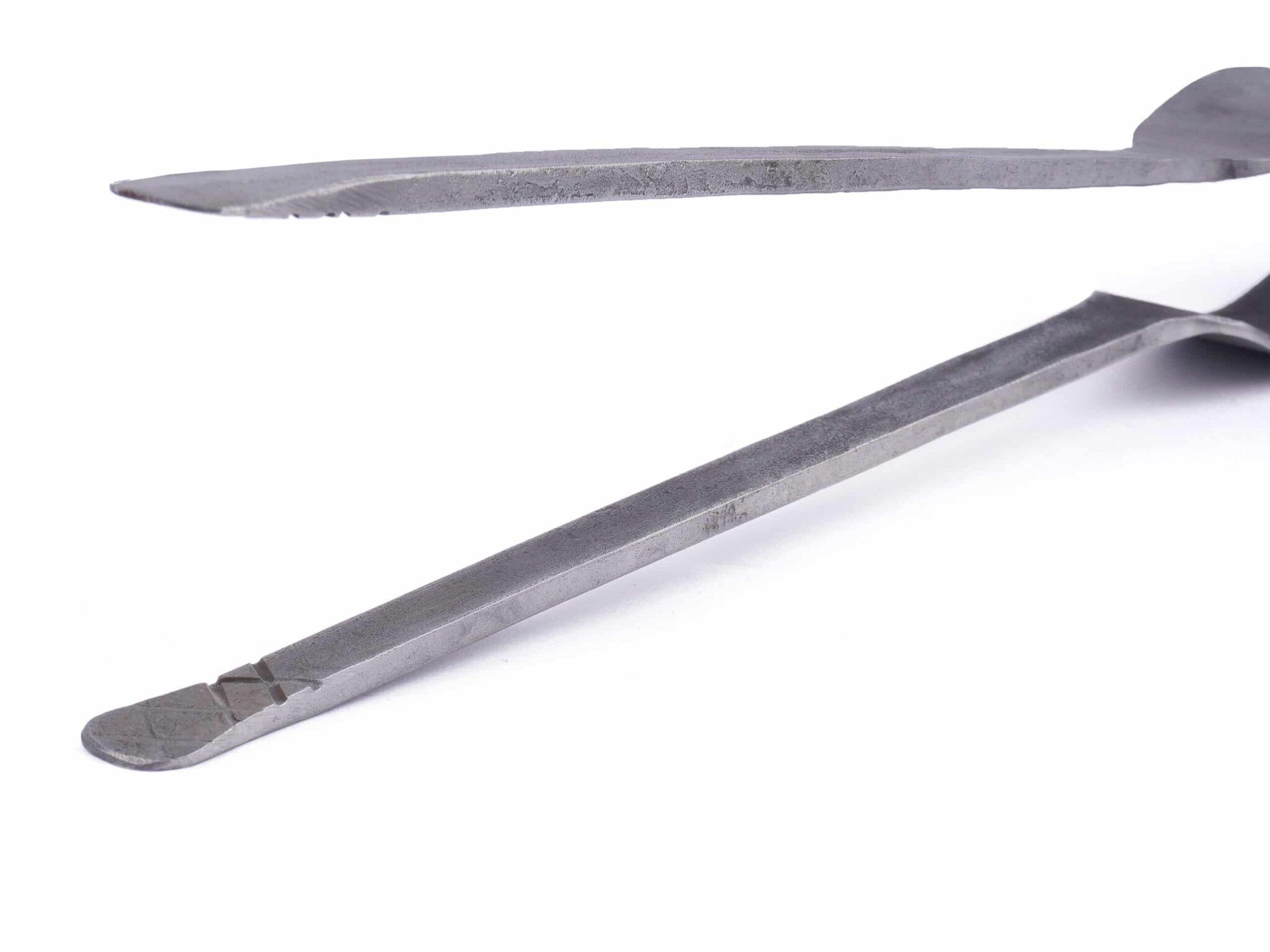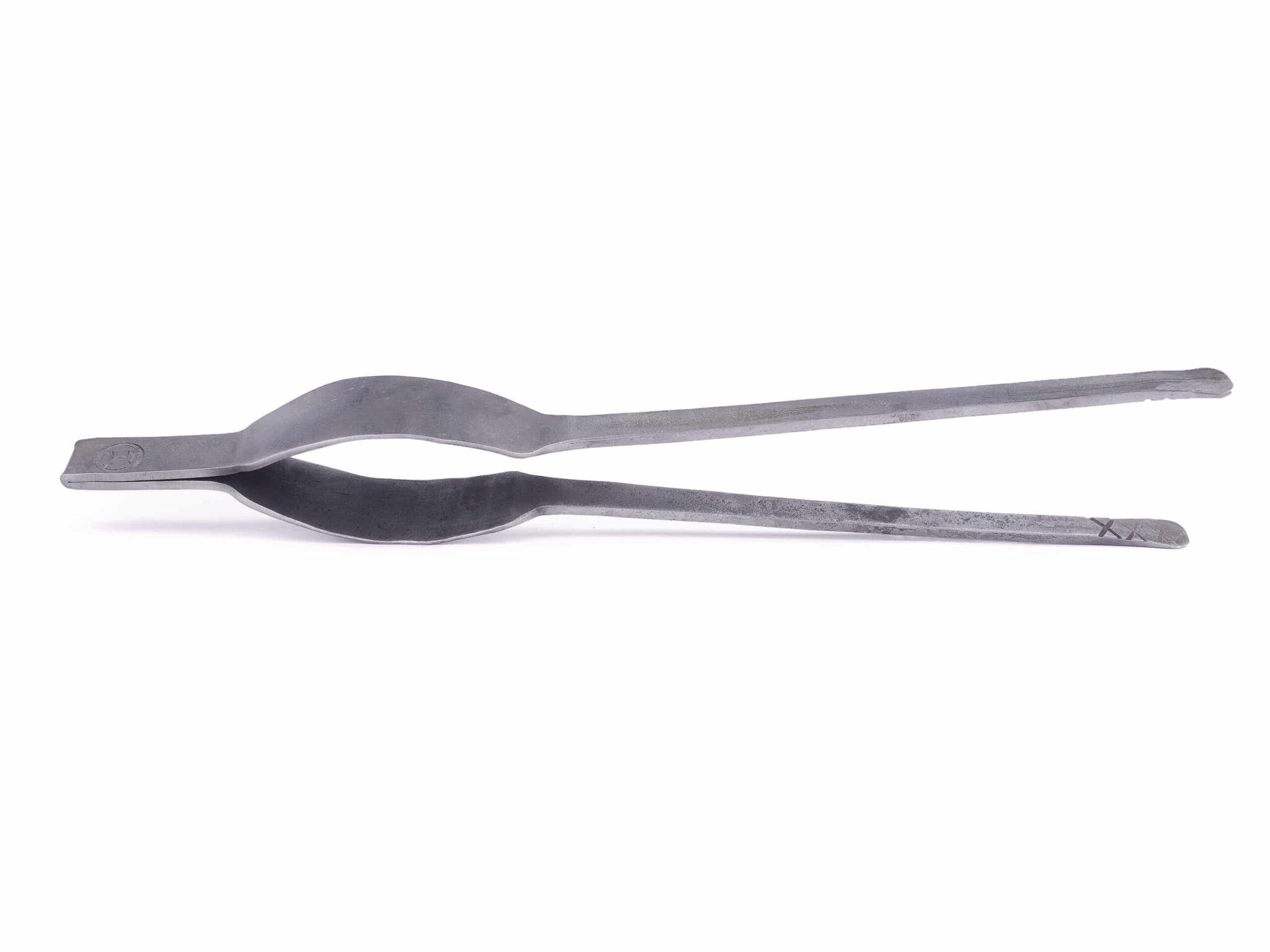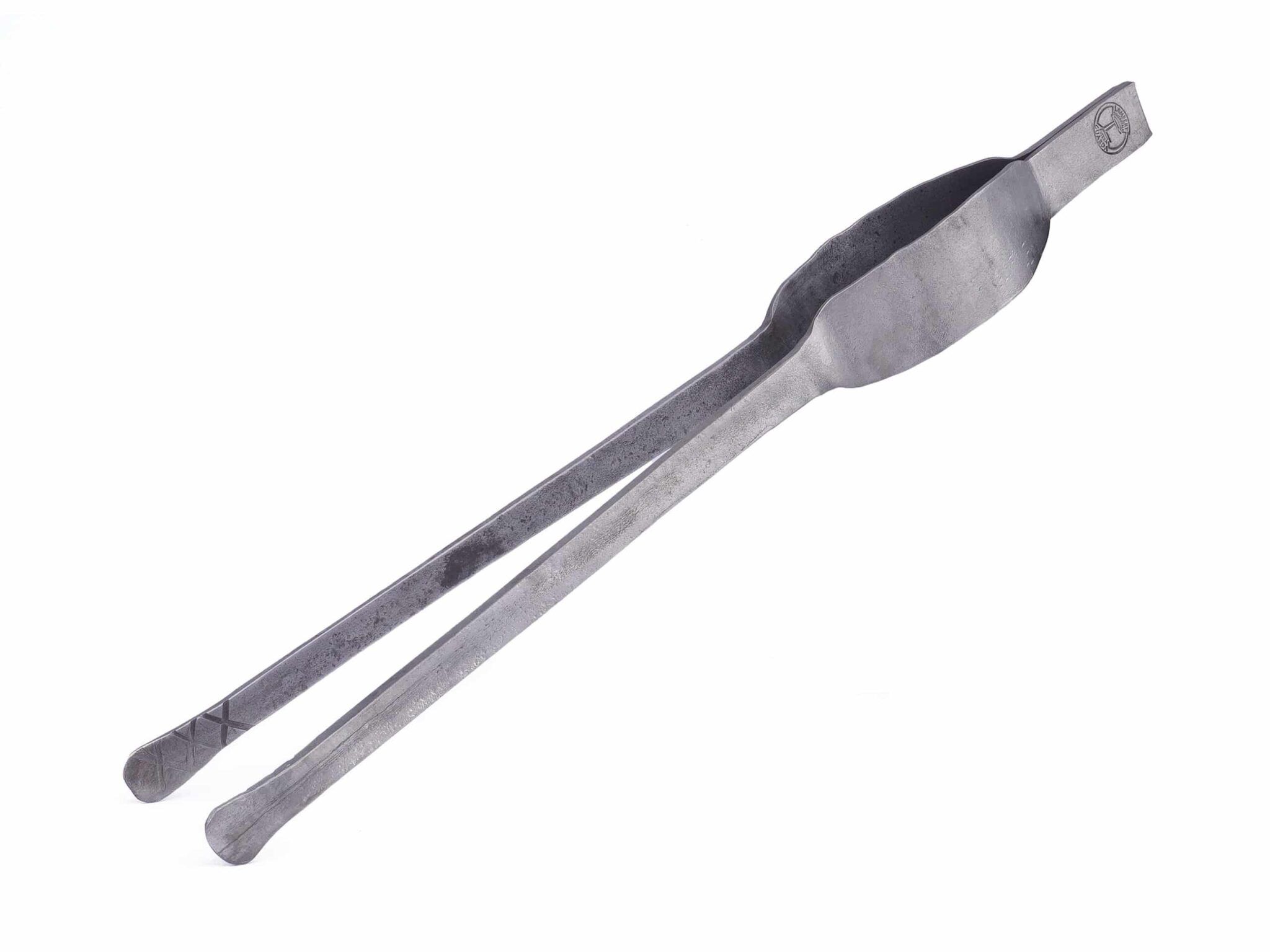 Formschöne, handgeschmiedete Grillpinzette. Von Hand gefertigt von Thomas Lampert in Guarda.