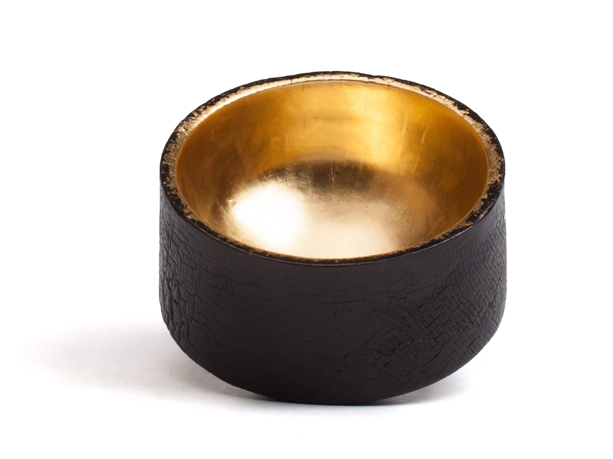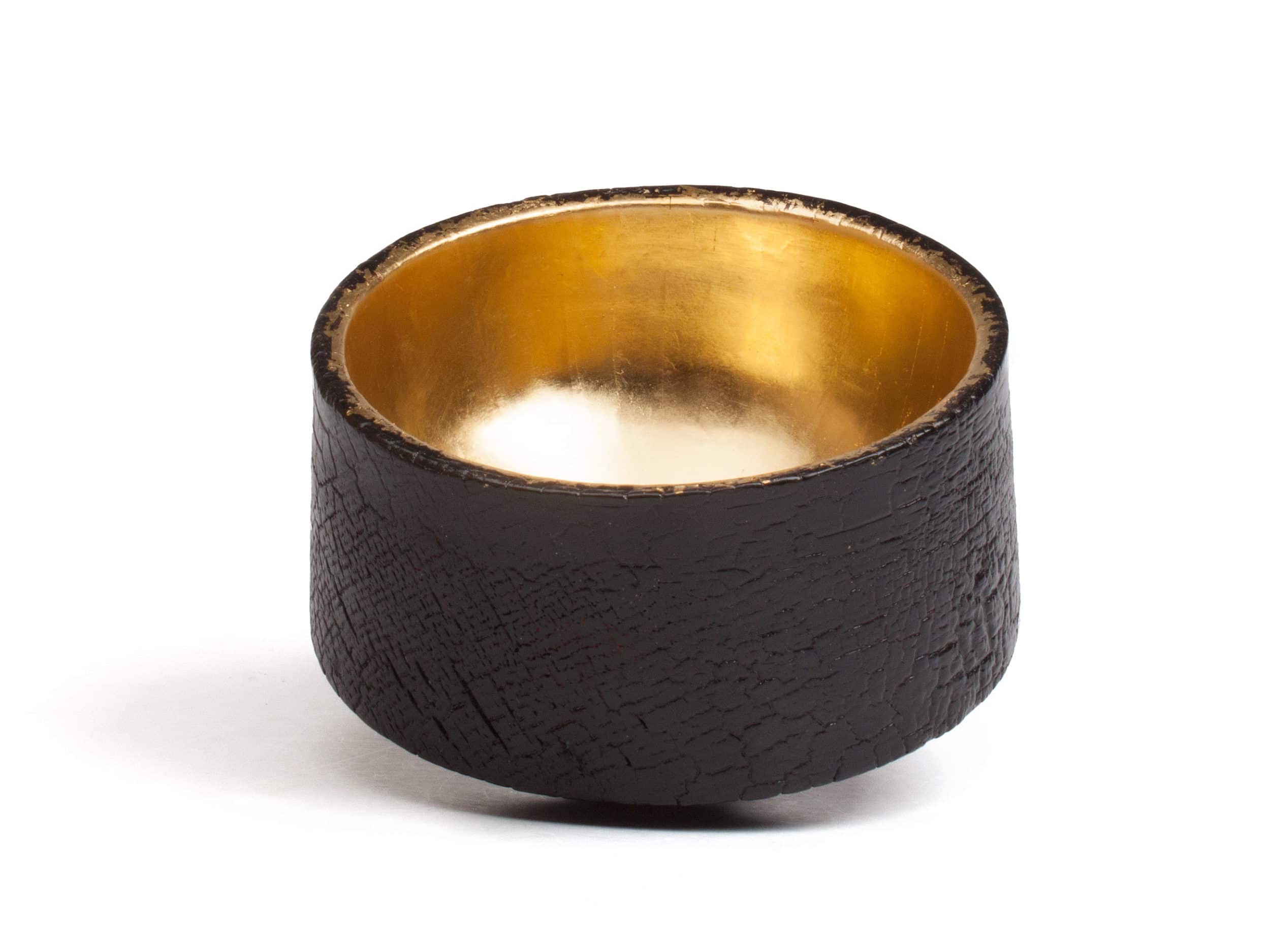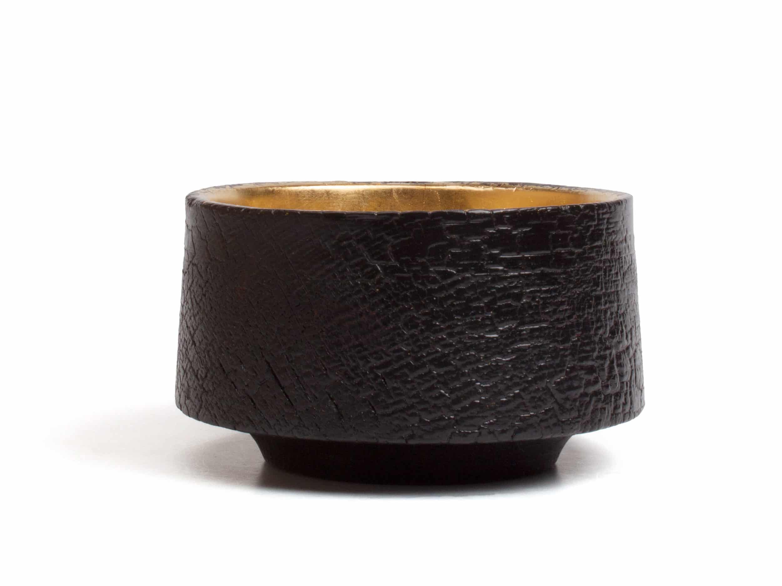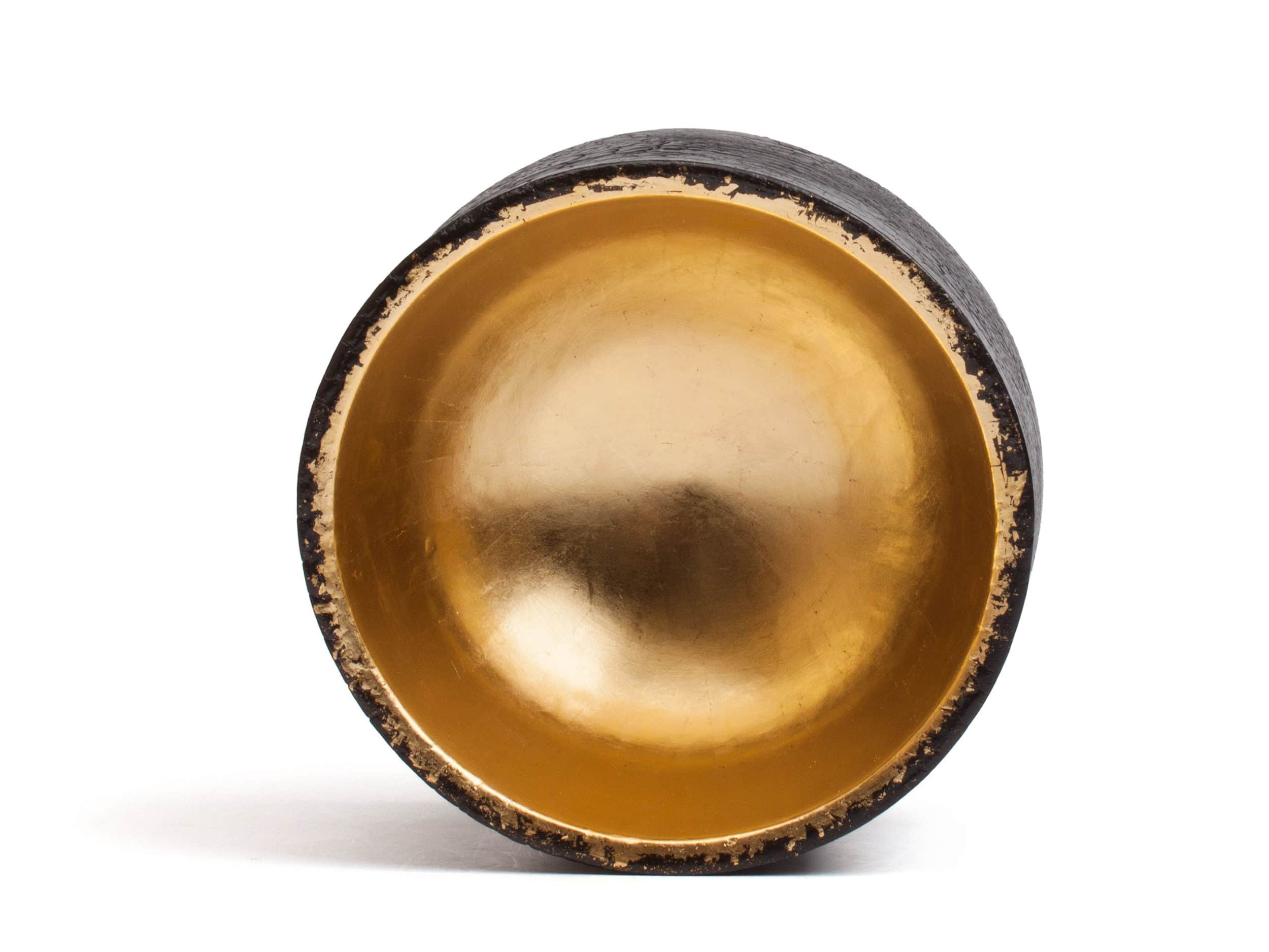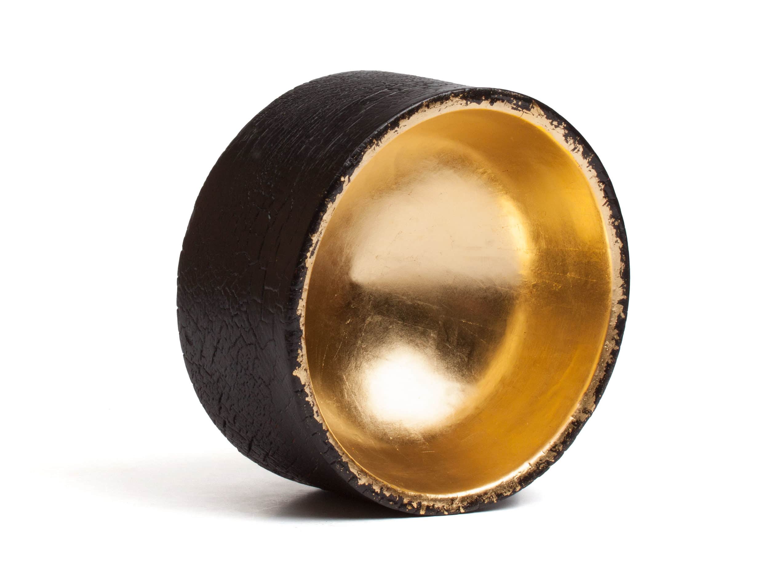 Das Schaleninnere ist mit 23.75 Karat Blattgold ausgelegt und bietet einen kraftvollen, einzigartigen, aber warmen Kontrast zur Aussenseite.