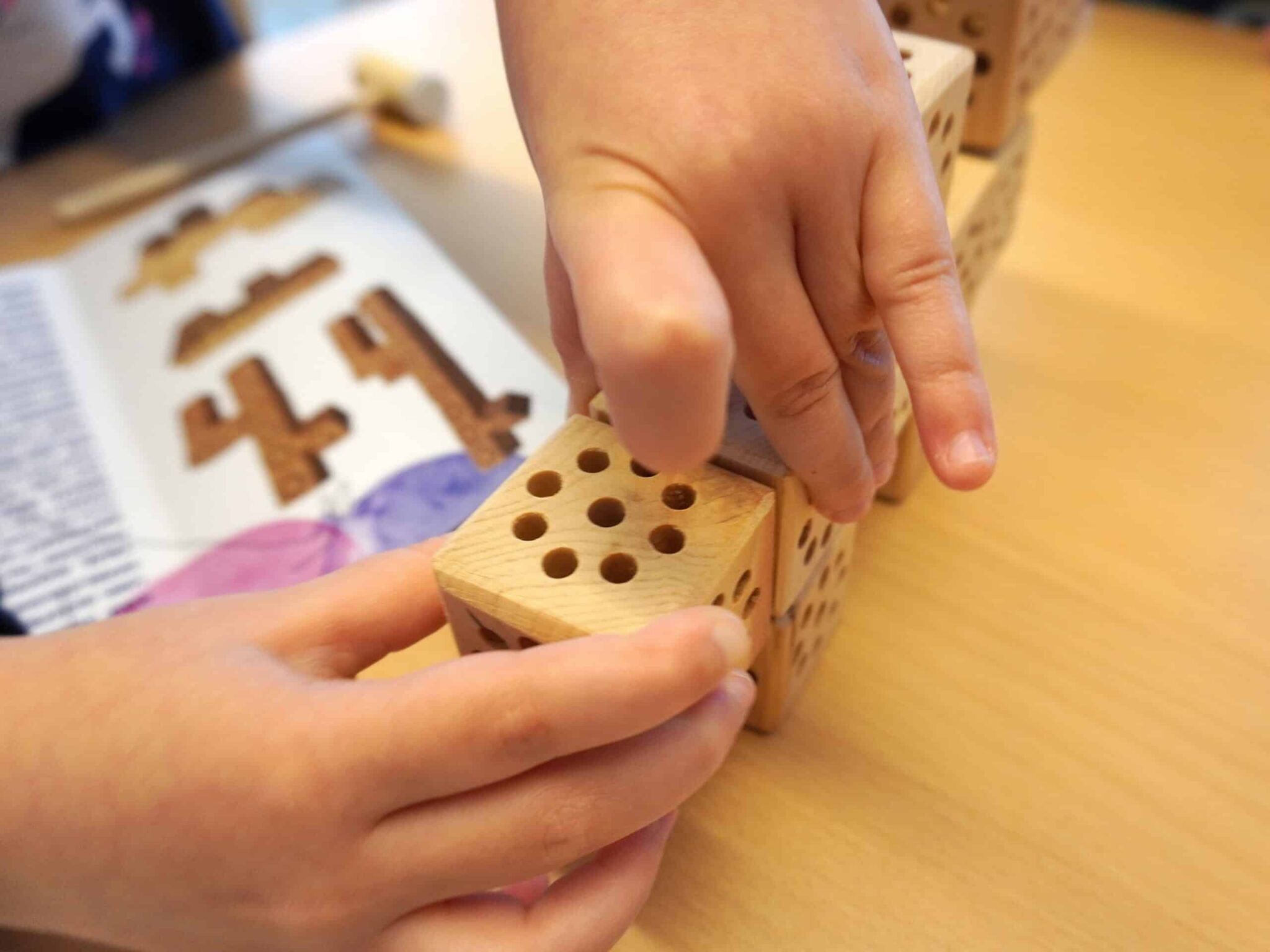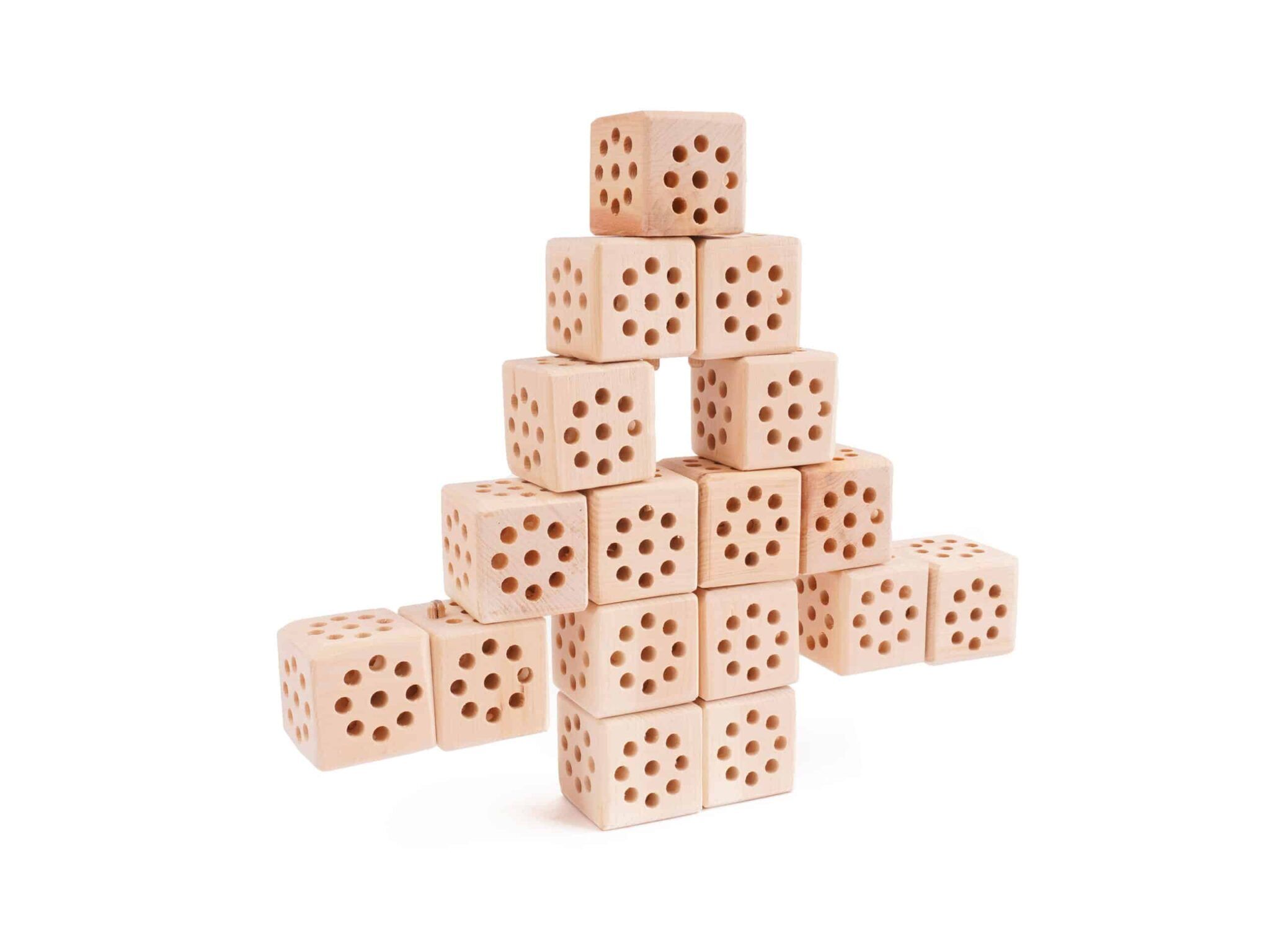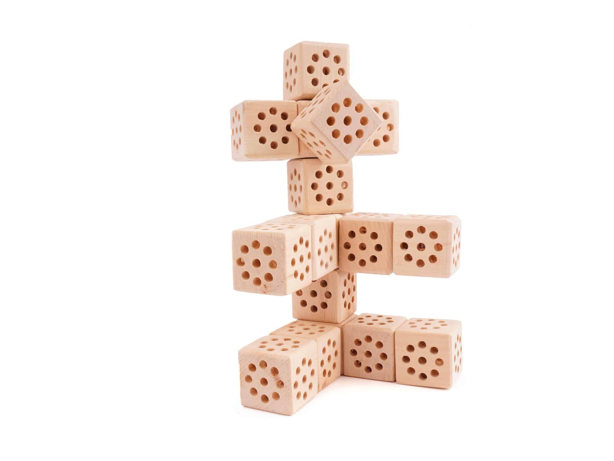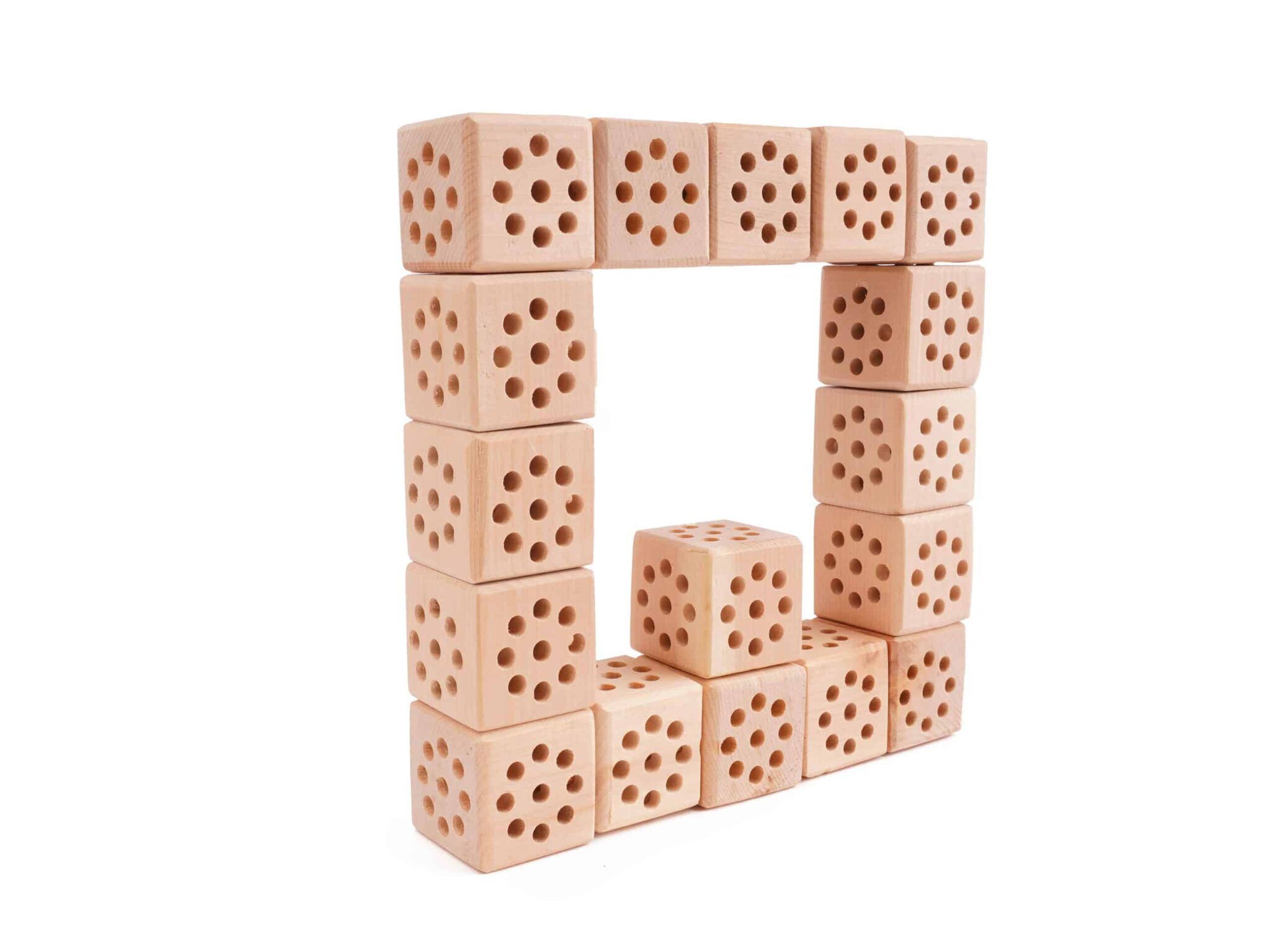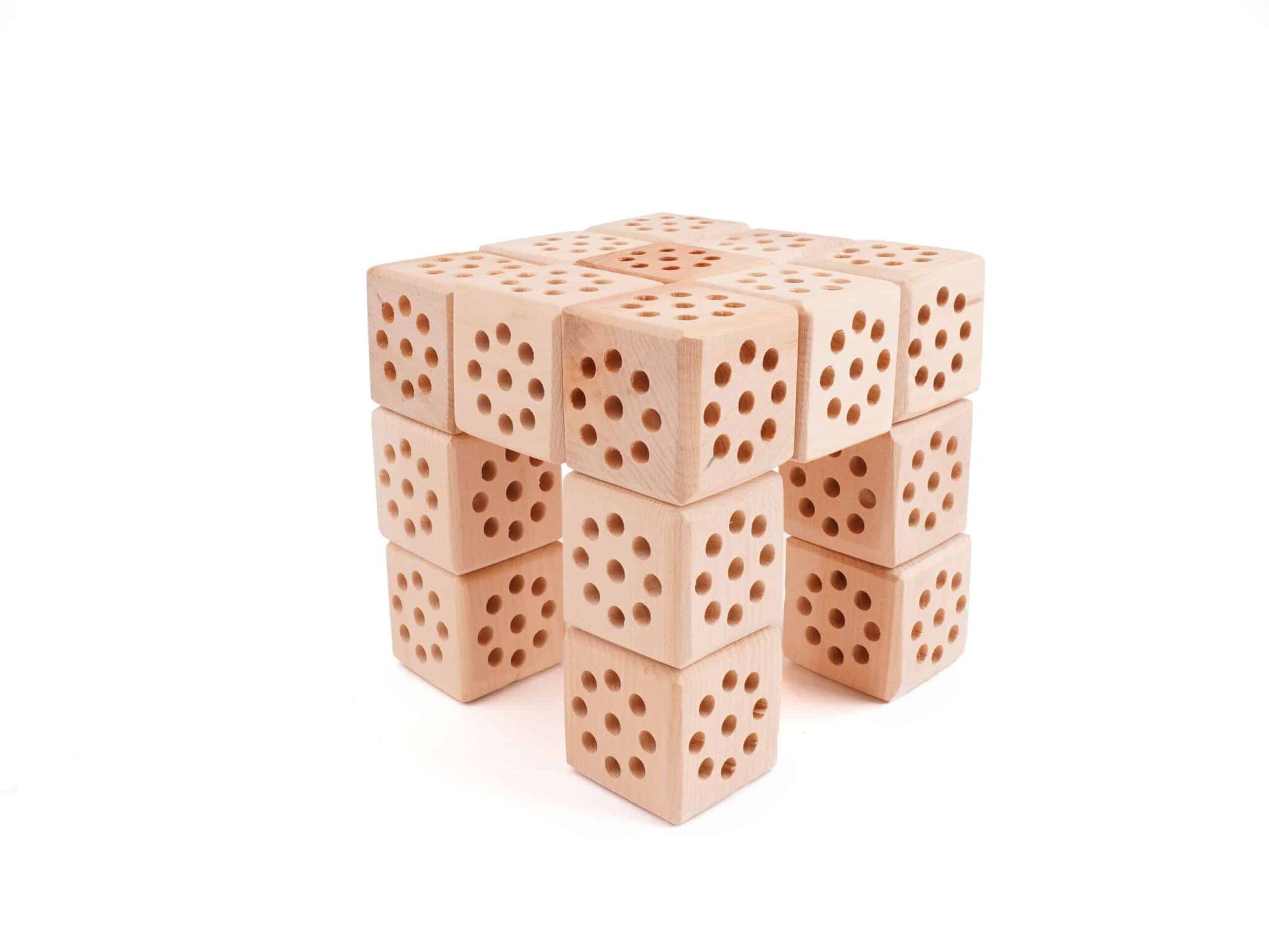 Die Steckbauklötze lassen sich ohne Zusatzteile leicht zusammenstecken (an 6 Seiten und auch schräg anbaubar), halten fest und können leicht auseinander genommen werden. Alle Kanten sind abgerundet und es gibt keine vorstehende oder verschluckbare Kleinteile. Die Arvenholzklötzchen sind naturbelassen, haben eine schöne Haptik und die wohlriechenden ätherischen Öle der Arve beruhigen.