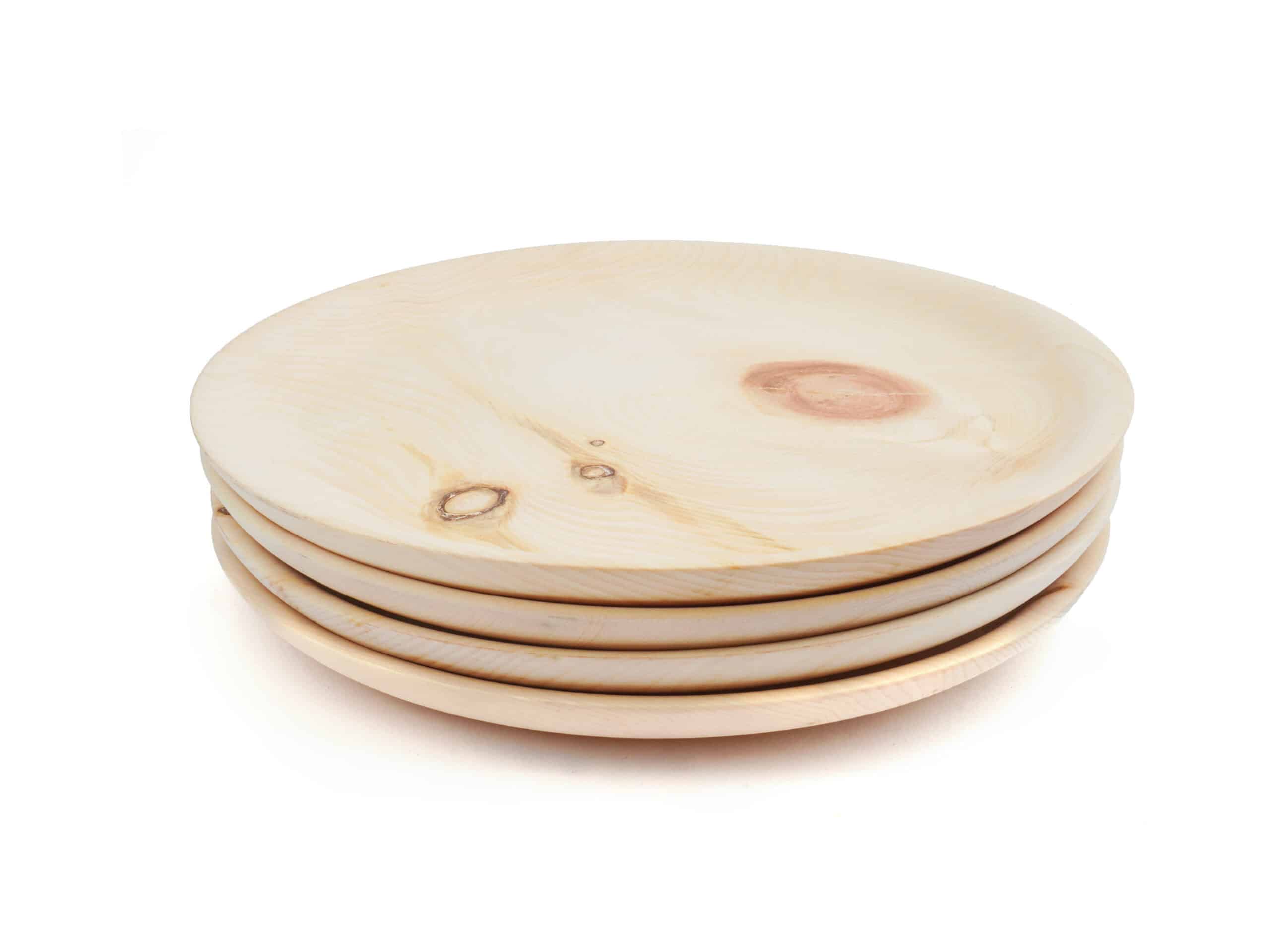 Lieferumfang 4 Teller. Die Teller sind nicht spülmaschinenfest. Beim Abspülen darauf achten, dass der Teller ganzheitlich nass wird. Danach vorsichtig trocknen lassen. Holz ist ein einzigartiges Naturprodukt, die Maserung / Astung kann sich von den abgebildeten Fotos unterscheiden.