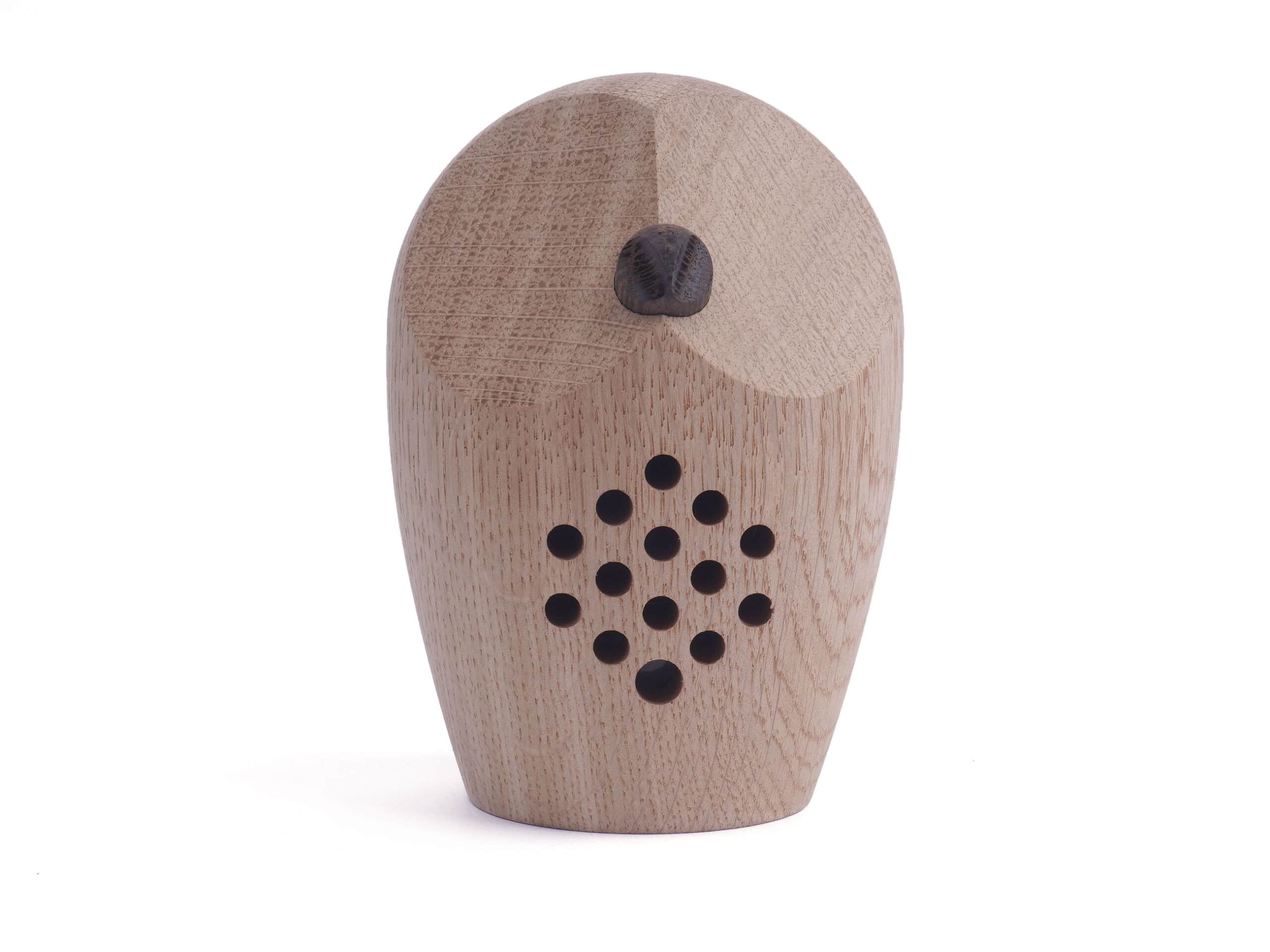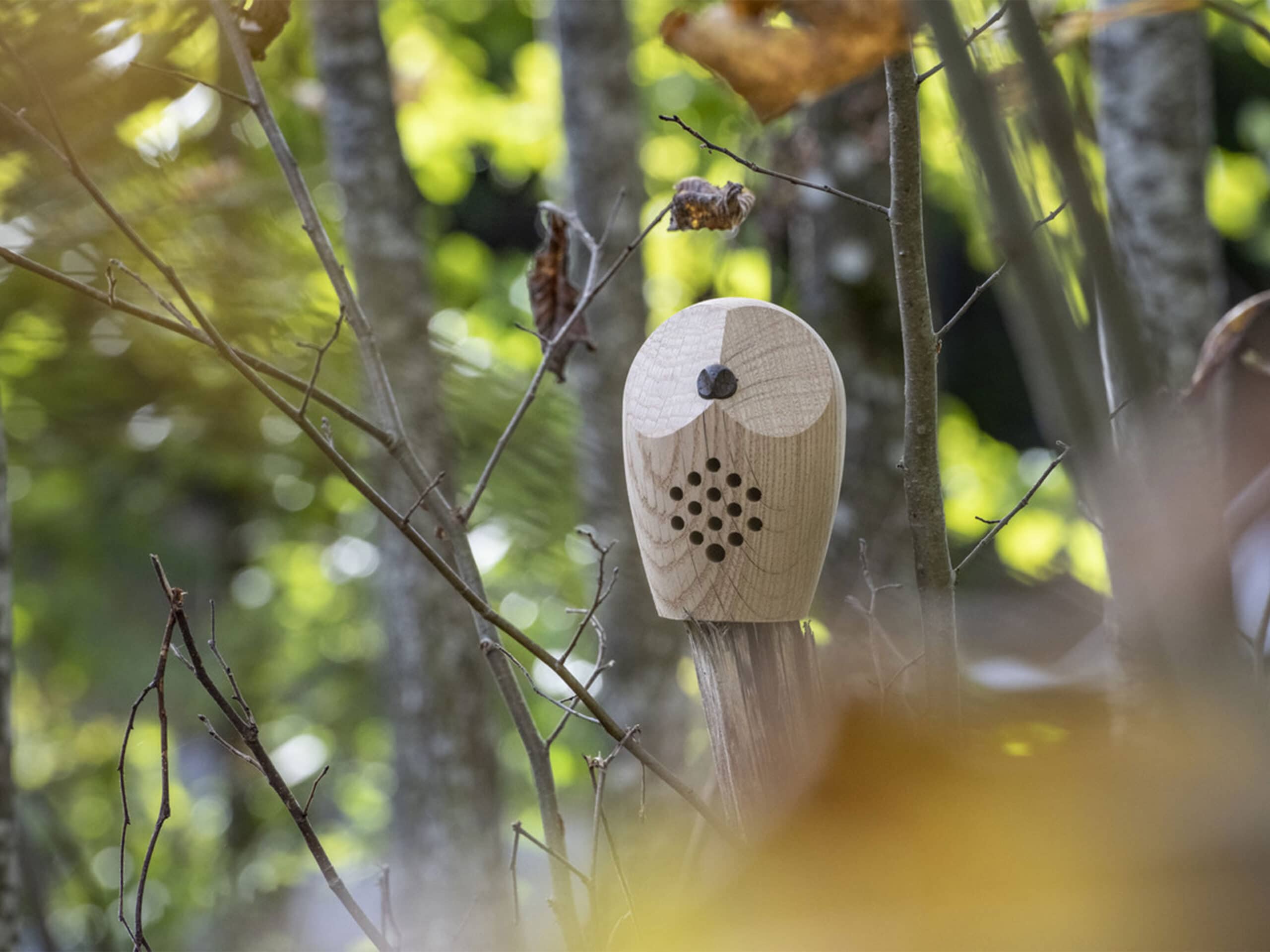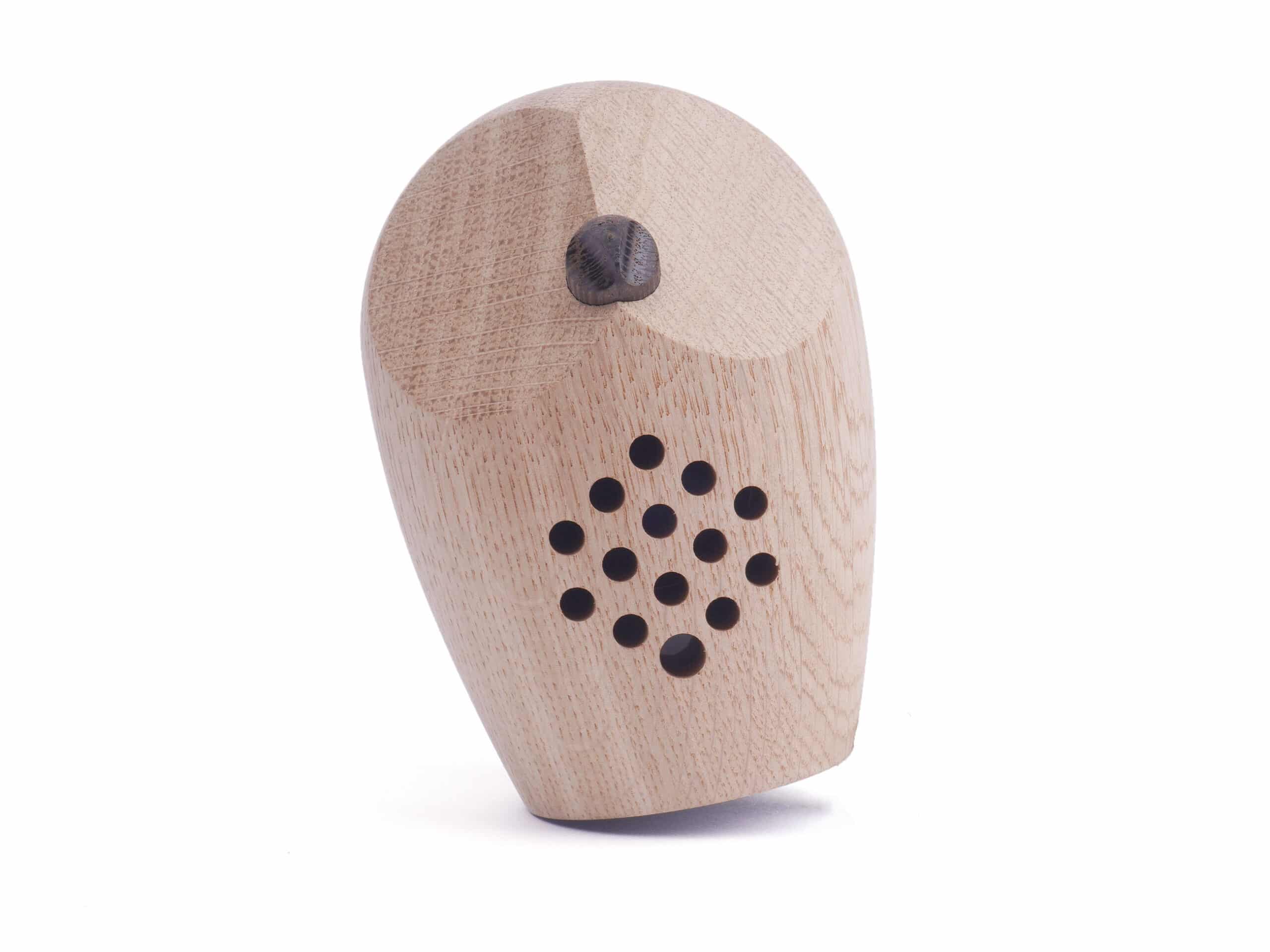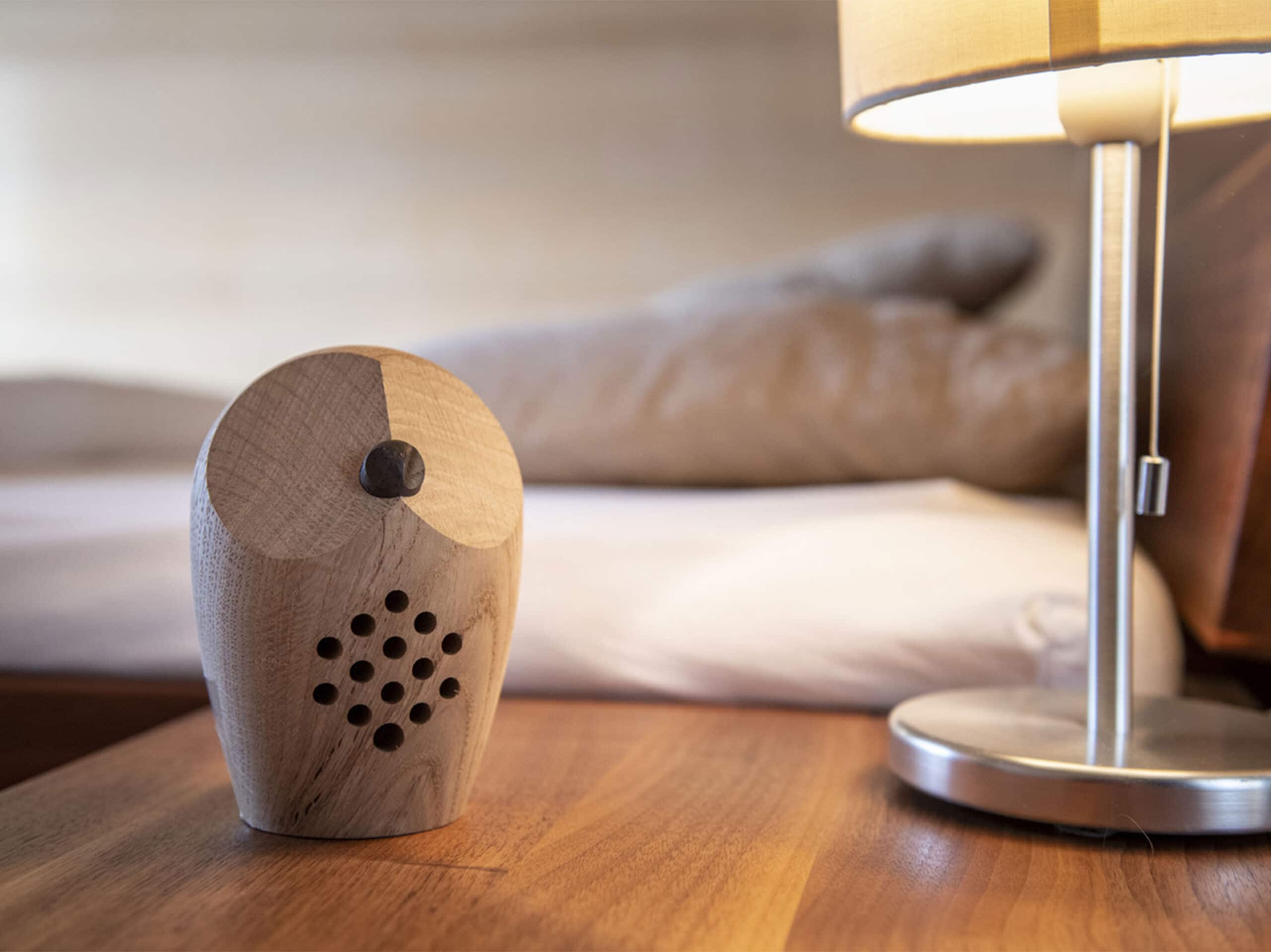 Huuri» (Schweizer Dialekt für Eule) ist eine Klangbox aus Schweizer Eichenholz mit Bewegungsmelder und beruhigenden Geräuschen.