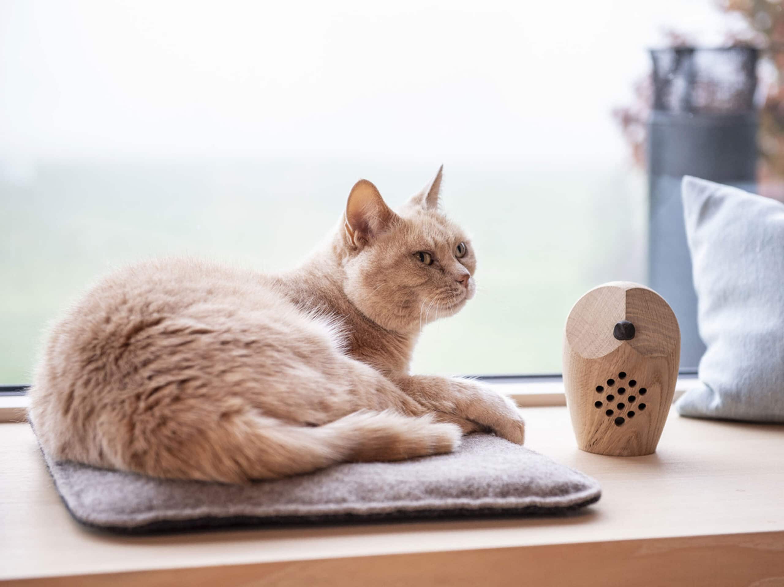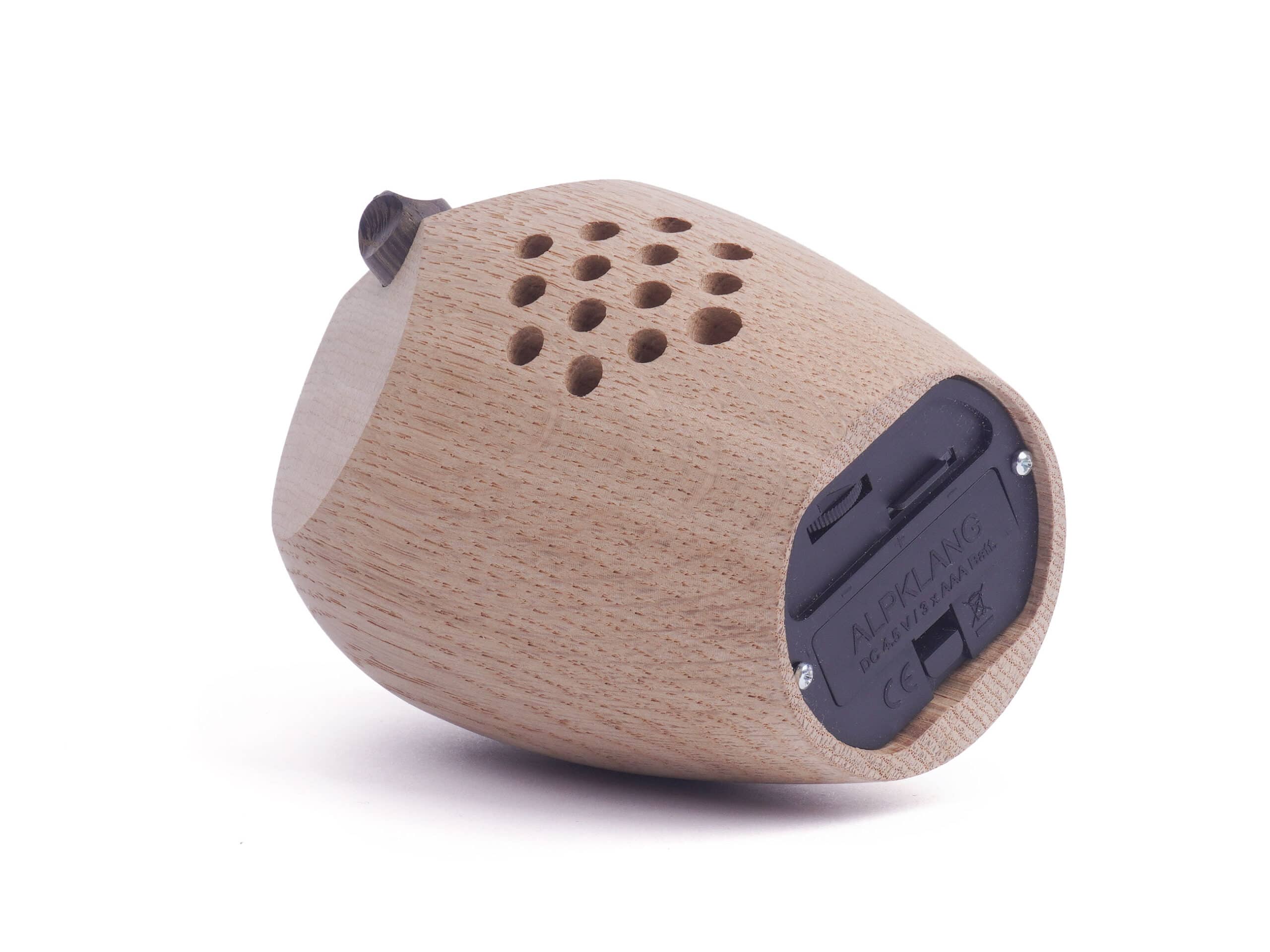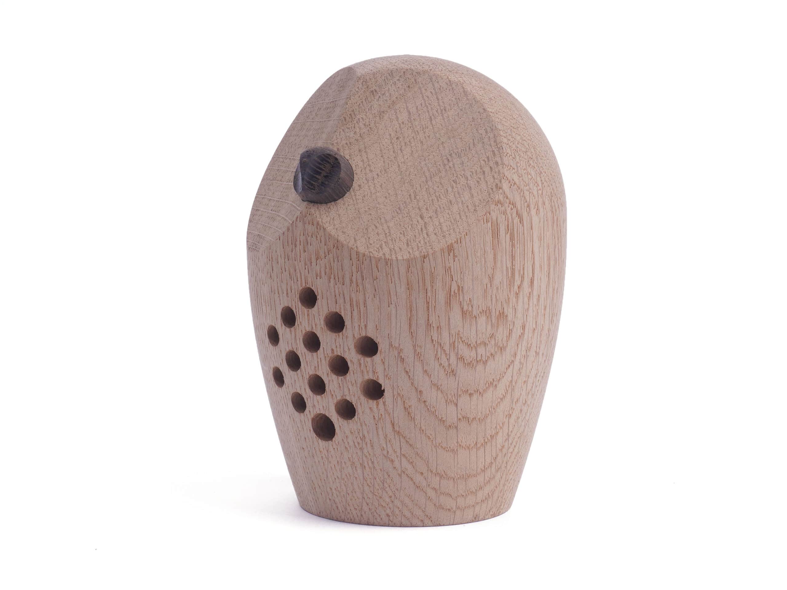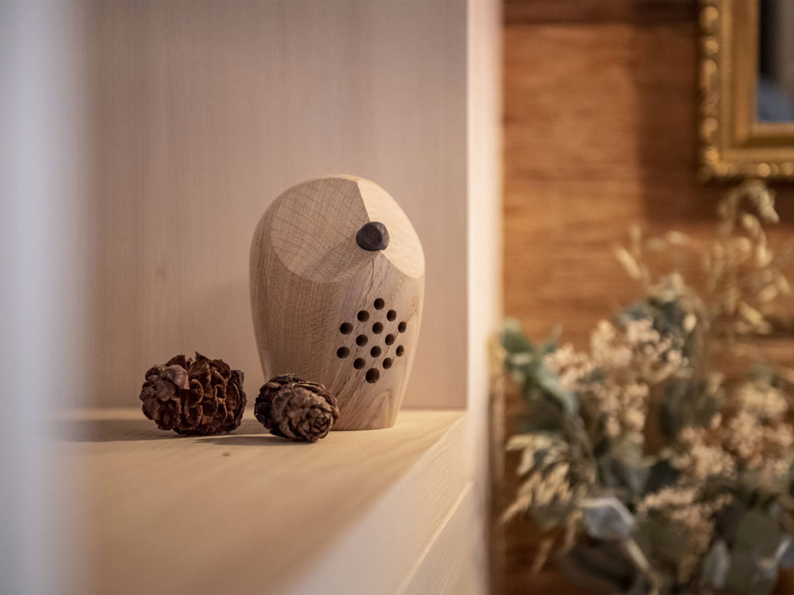 Huuri» (Schweizer Dialekt für Eule) ist eine Klangbox aus Schweizer Eichenholz mit Bewegungsmelder und beruhigenden Geräuschen.
