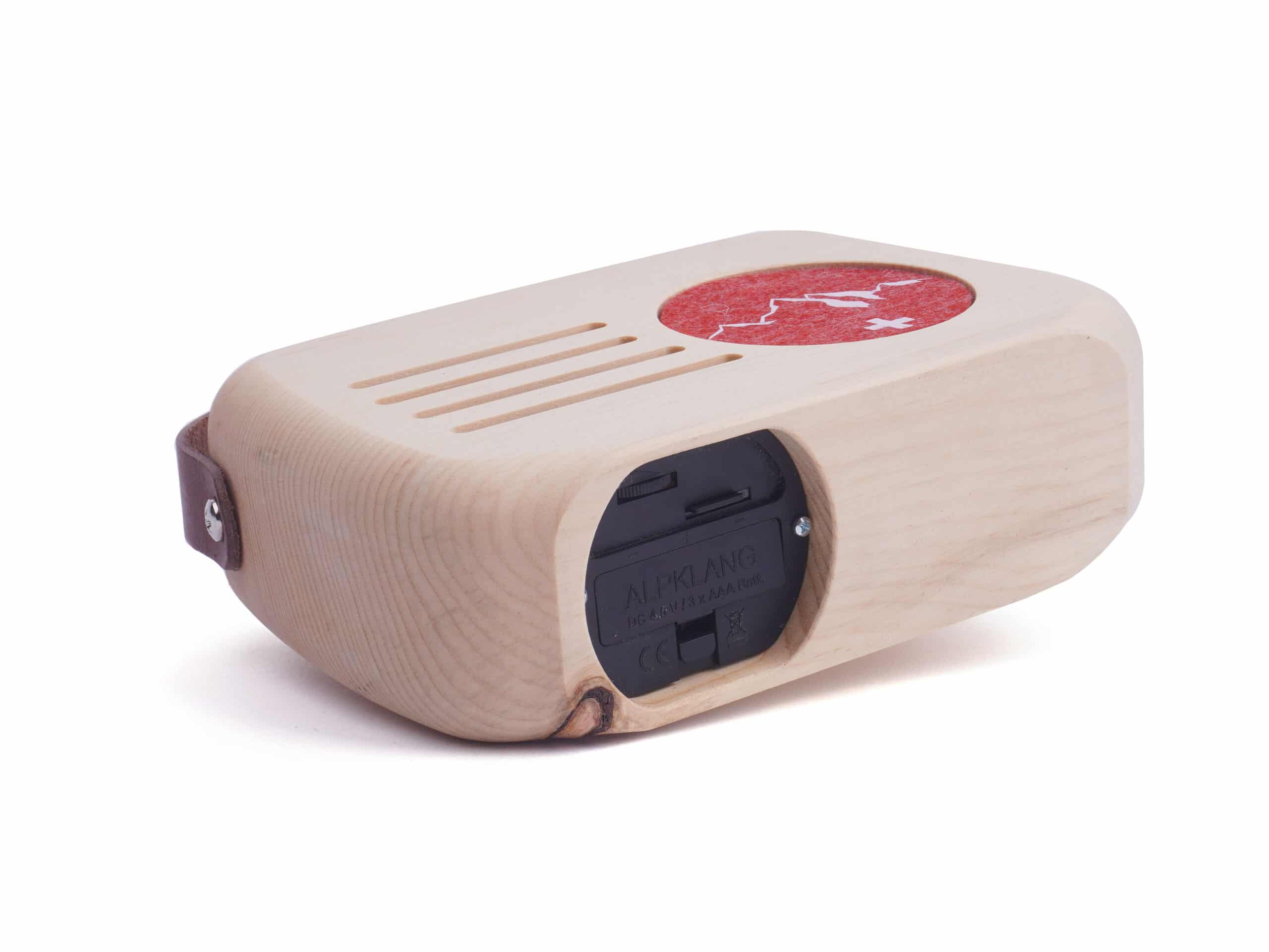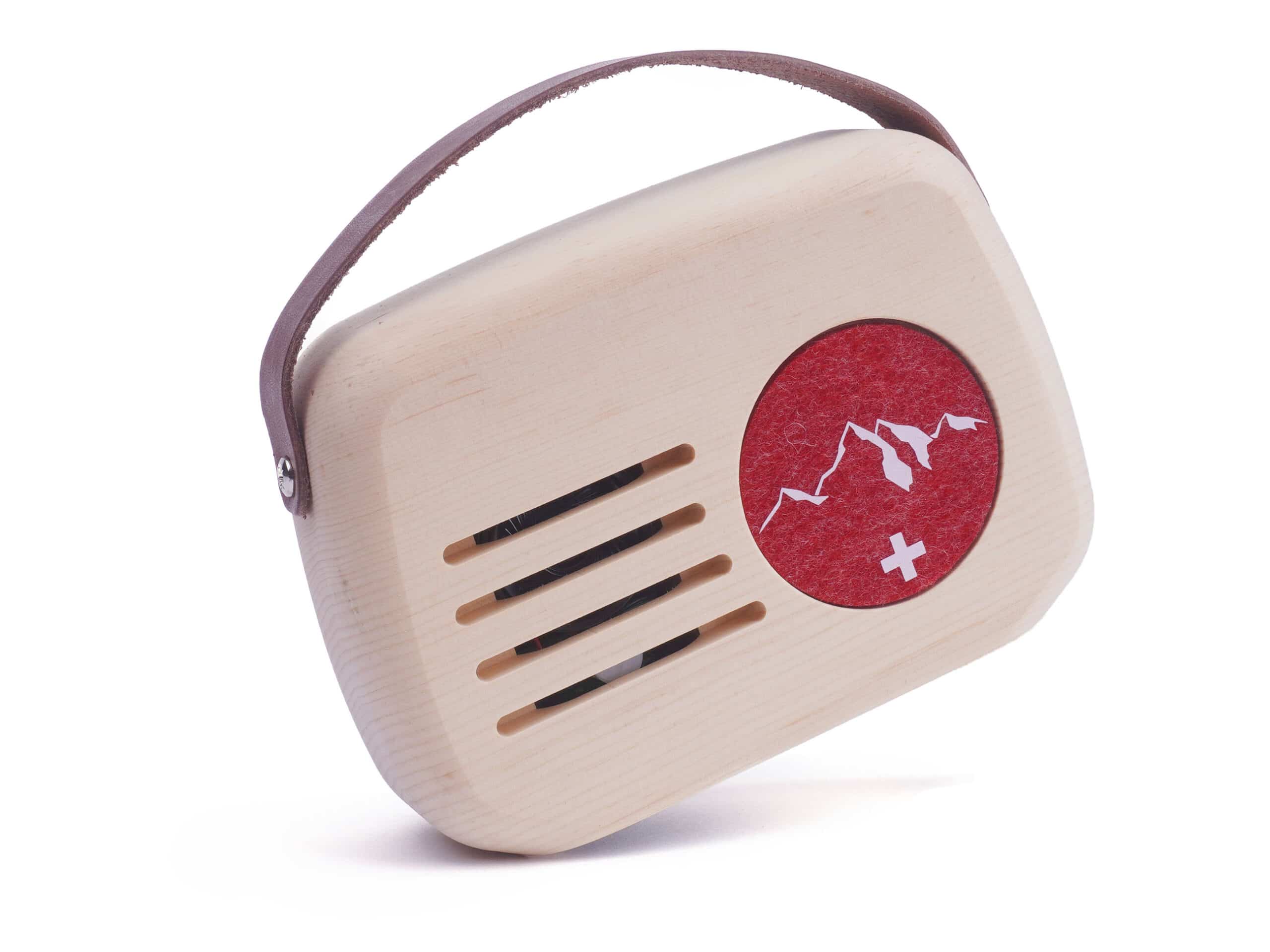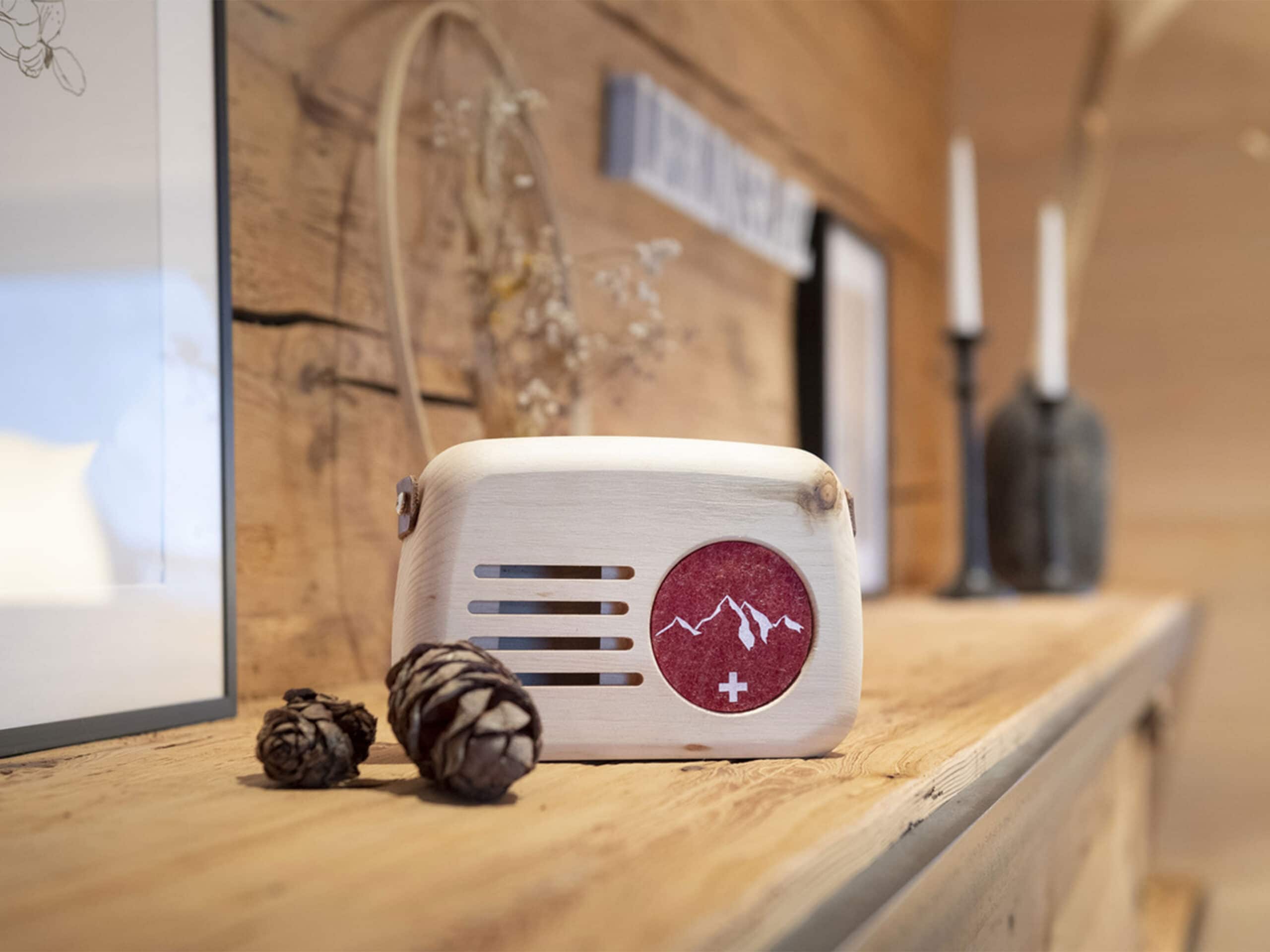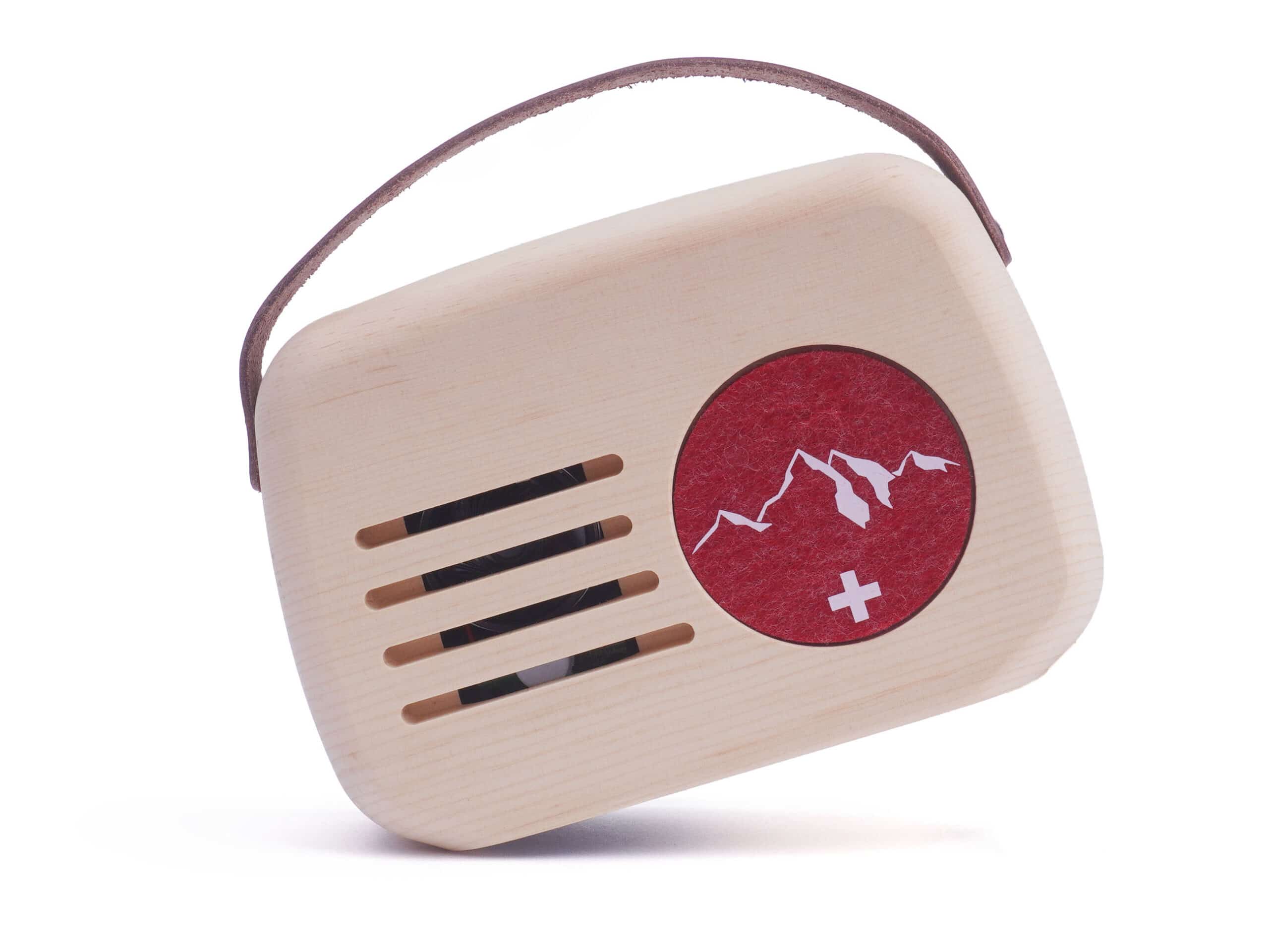 Klangbox aus Schweizer Arvenholz mit Bewegungsmelder. Mit entspannenden Schweizer Klängen wie nostalgische Kuhglocken, Alphorn oder Naturjutze. Für etwas Entschleunigung im Alltag.