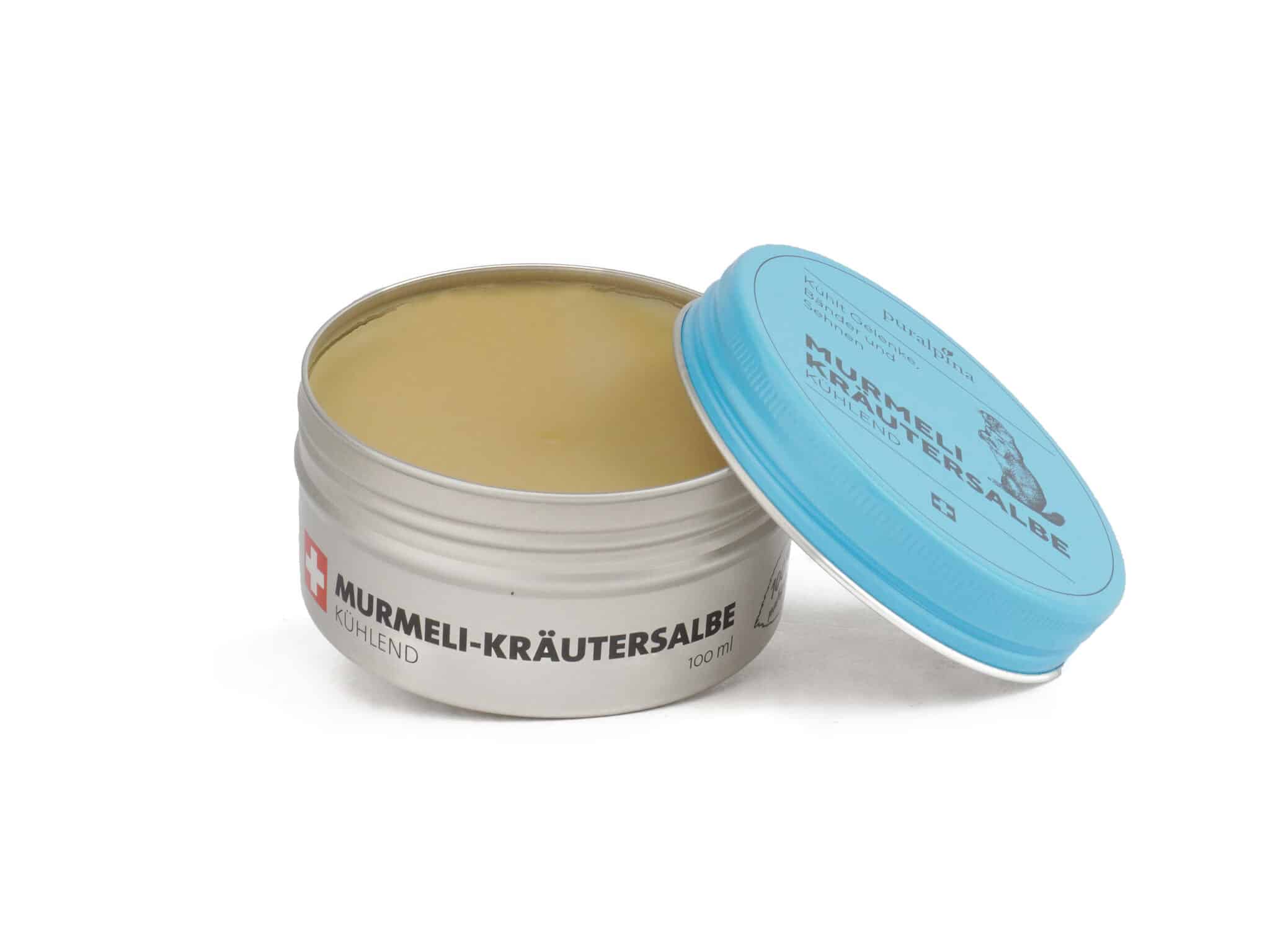 Die Murmeltiersalbe wird aus Murmeltierfett, Gems- und Dachsfett, Olivenöl sowie 9 Kräutern aus der Schweiz (Ringelblumen, Heublumen, Fichtennadeln, Arnika, Parakresse, Sumpfporst, Wallwurz, Johanniskraut, Pfefferminze) in traditioneller Handarbeit in Frutigen hergestellt. Ohne Konservierungs-, Duft- und Farbstoffe.