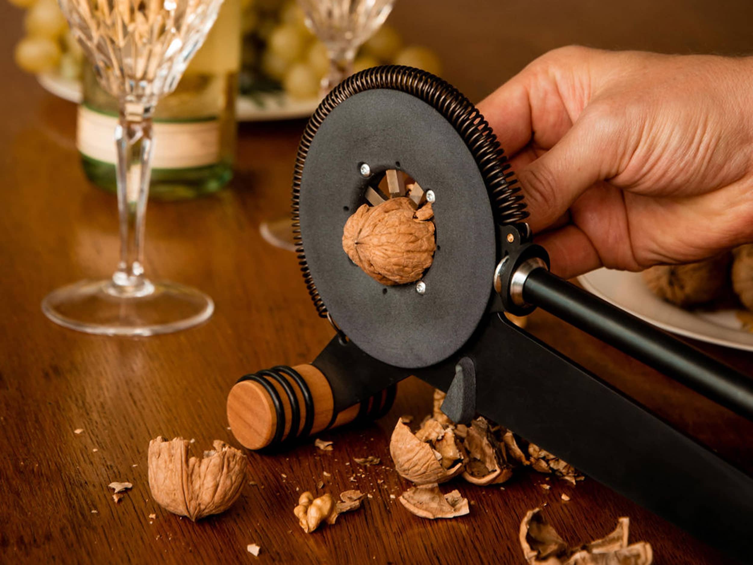 Die hochwertigen Materialien und edle Verarbeitung sorgen für eine einwandfreie Bedienung. Durch das Knacken in Querrichtung lässt sich die Nussschale sauber in zwei Halbschalen teilen, ohne dass kleine Splitter entstehen. Dank dieser Öffnungart kann der Kern meistens als ganzes Stück aus der Schale herausgezogen werden.