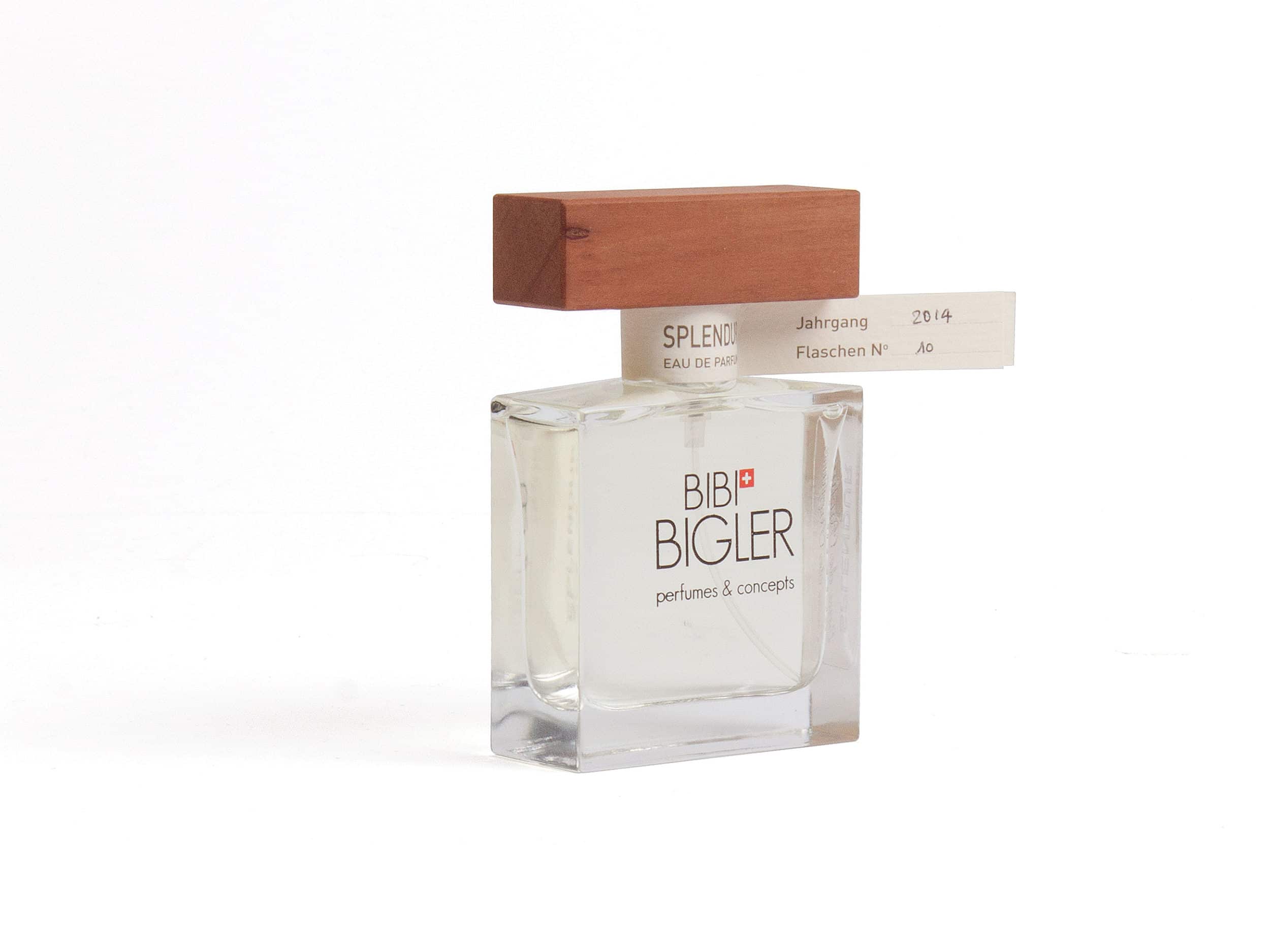 Die Idee zum Parfum «Splendur» (romanisch: Pracht, Glanz) entstand im Engadin, wo Bibi den Duft auf einer feuchten Bergwiese mit einer «Glasglocke» (Headspace Analyse) eingefangen und anschliessend analysiert und rekonstruiert hat. Ein wunderbares Geschenk für Alle, die das Spezielle schätzen und suchen.