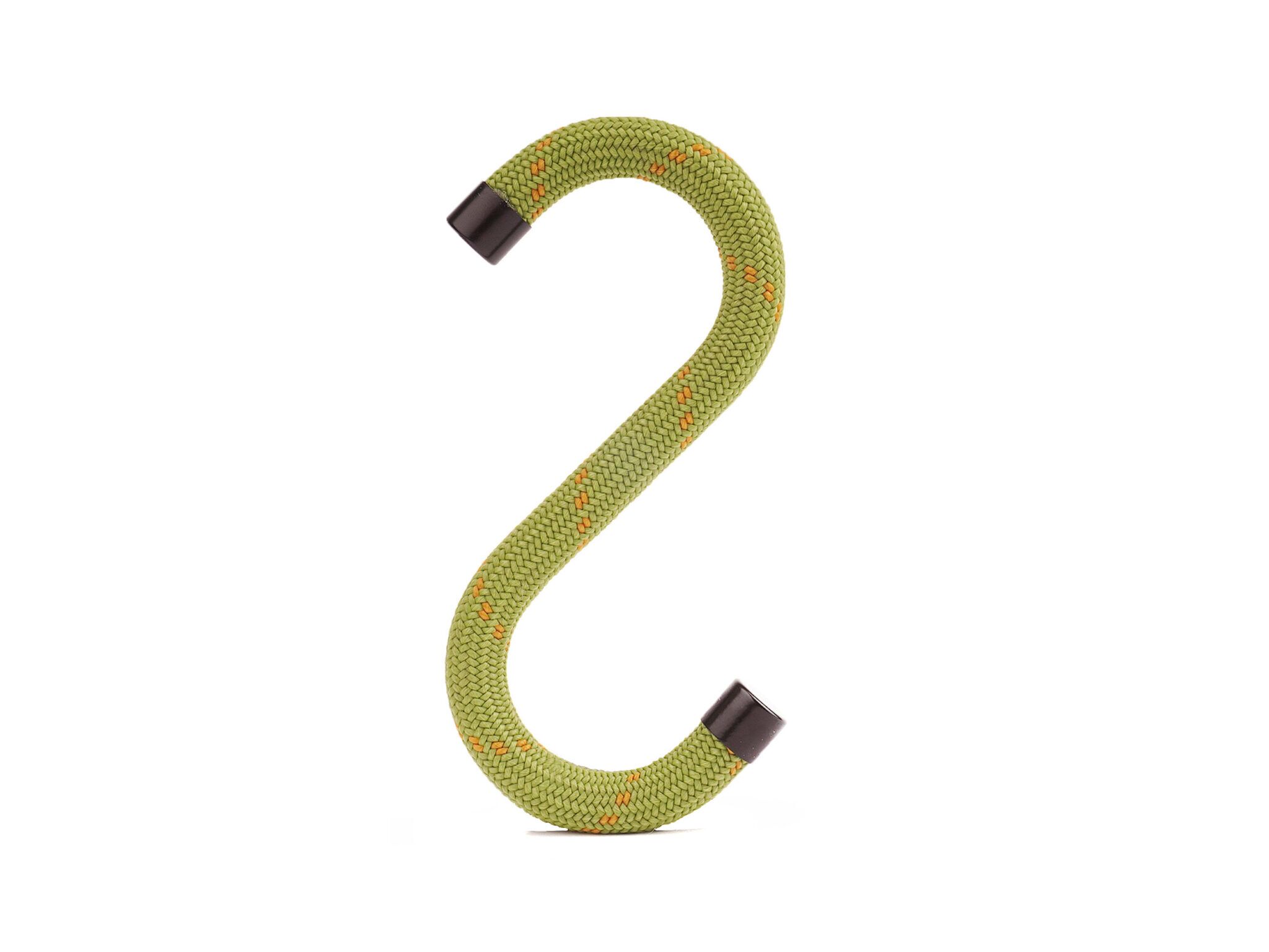 Das ist Upcycling – oder eigentlich eher «UpSEILcling». Der grosse, praktische S-Haken (13.5×6.5cm) wird in der Schweiz aus alten und ausgesonderten Kletterseilen und Metallstangen gefertigt.
