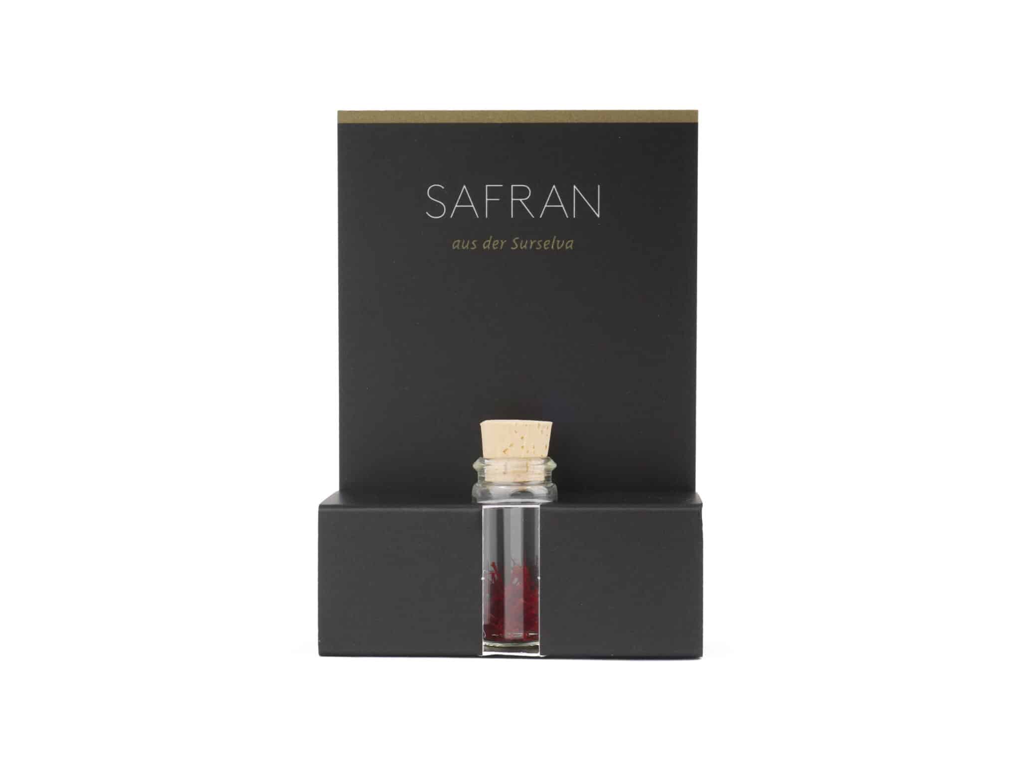Die edle Verpackung mit Glasfläschchen enthält eine Anleitung zur richtigen Verwendung von Safran in der Küche. Mit den 0,1 Gramm Schweizer Safran (je nach Grösse ca. 60 Narben) lässt sich ein Risotto für 6 Personen zubereiten.