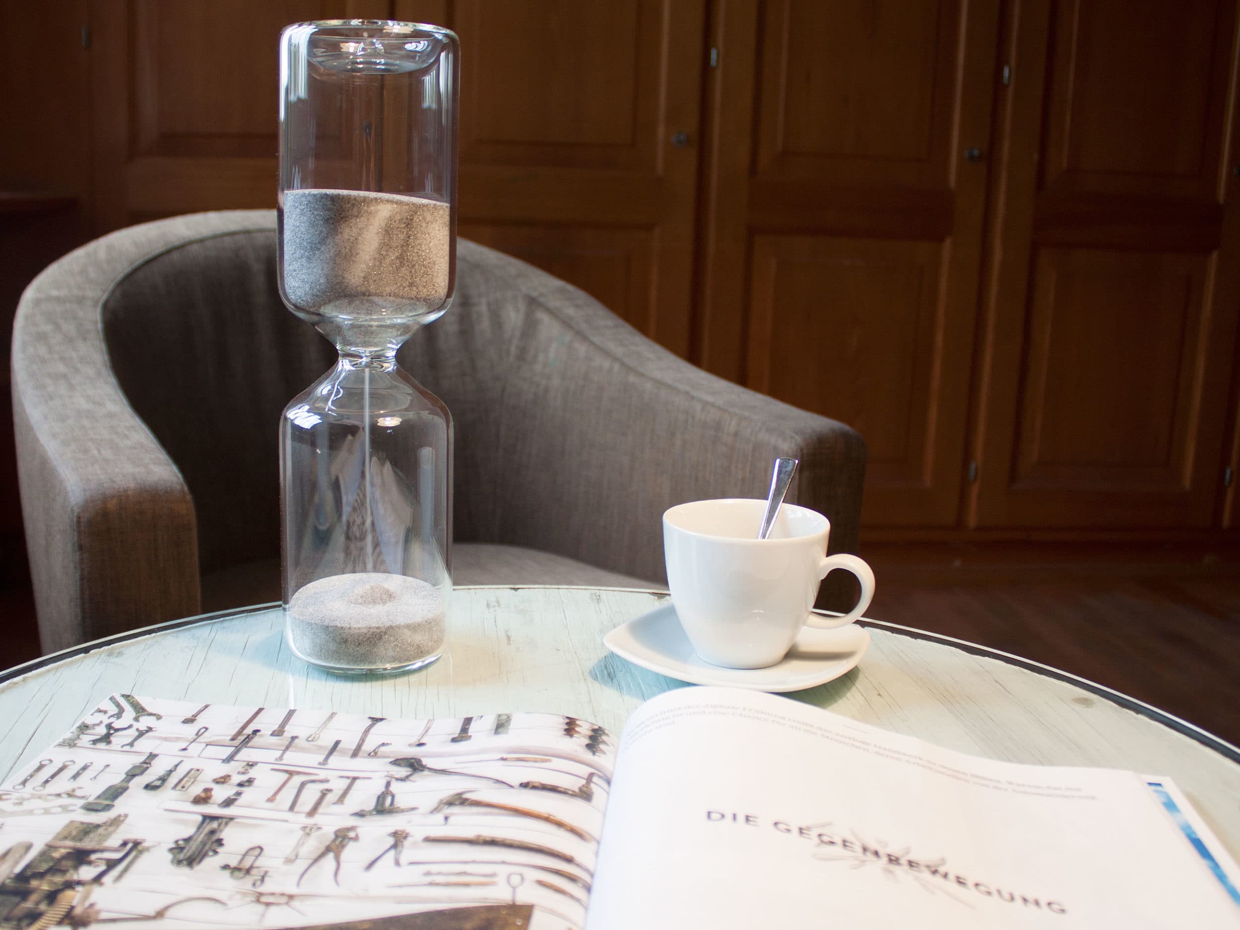 Die handgemachte, starkwandige Sanduhr (Gewicht 1.3kg) mit einer Rinndauer von 30 Minuten ist ein Schweizer Qualitätsprodukt. Mit Glasperlen gefüllt.