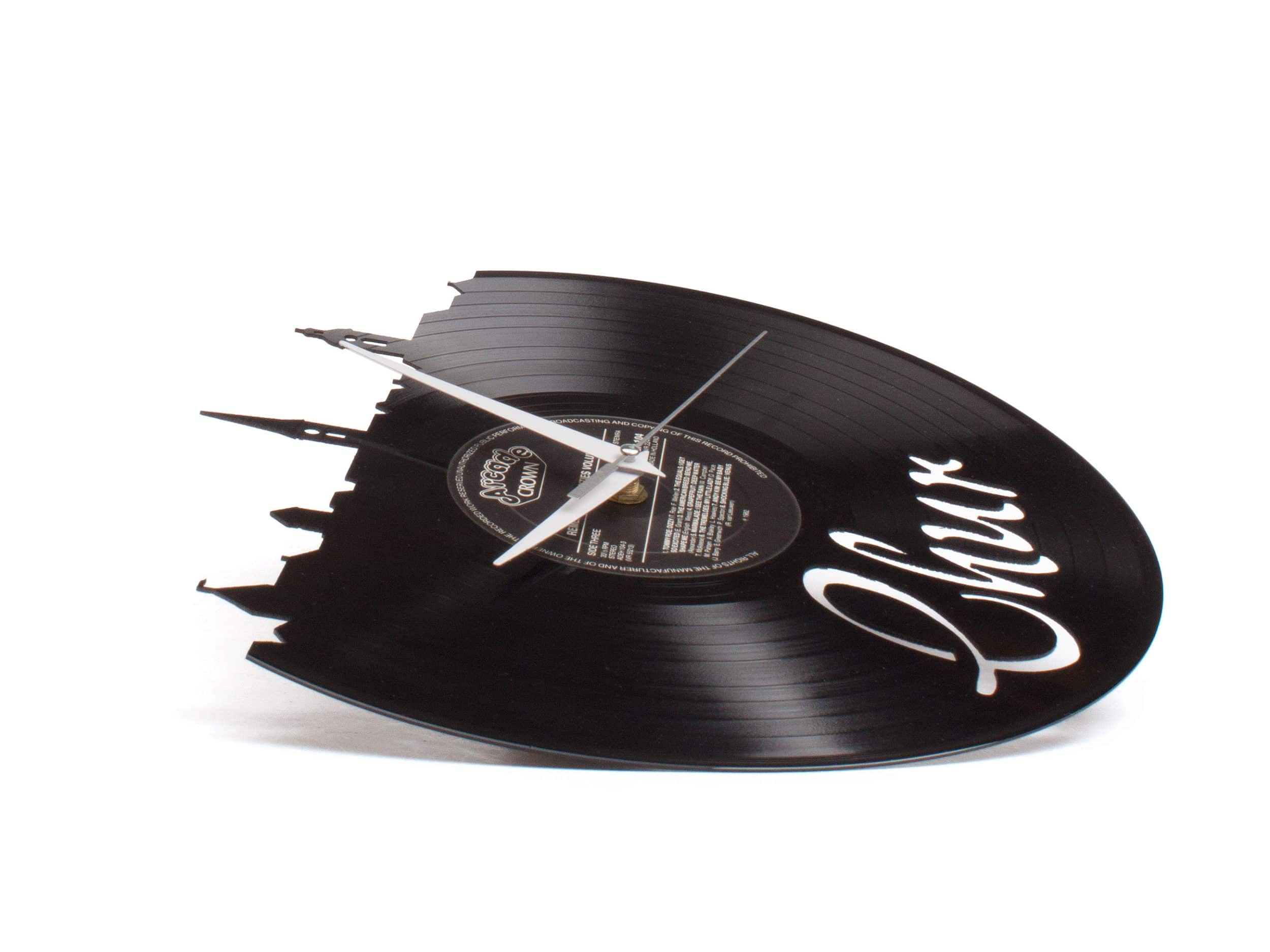 Schallplattenuhr Chur – Die einzigartige Wanduhr aus alten Schallplatten (Vinyl) wird in der Schweiz designt und hergestellt.