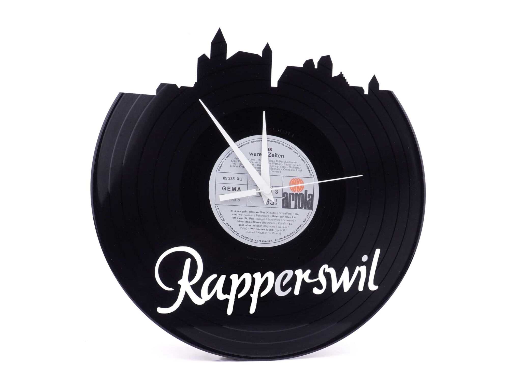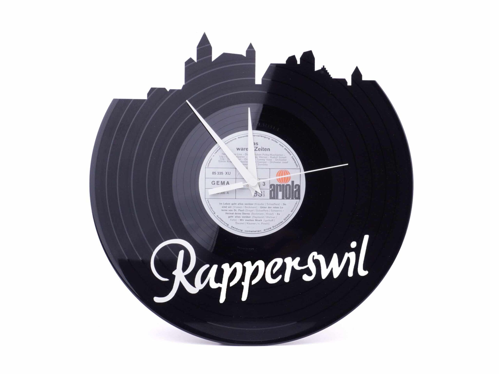 Das wunderschöne Rapperswil am Zürisee gibt es neu als Schallplattenuhr. Natürlich mit charakteristischer Sihlhouette von Schloss und Kirche Rapperswil. Für alle Fans der Rosenstadt und Heimweh-Rapperswiler in limitierter Auflage.