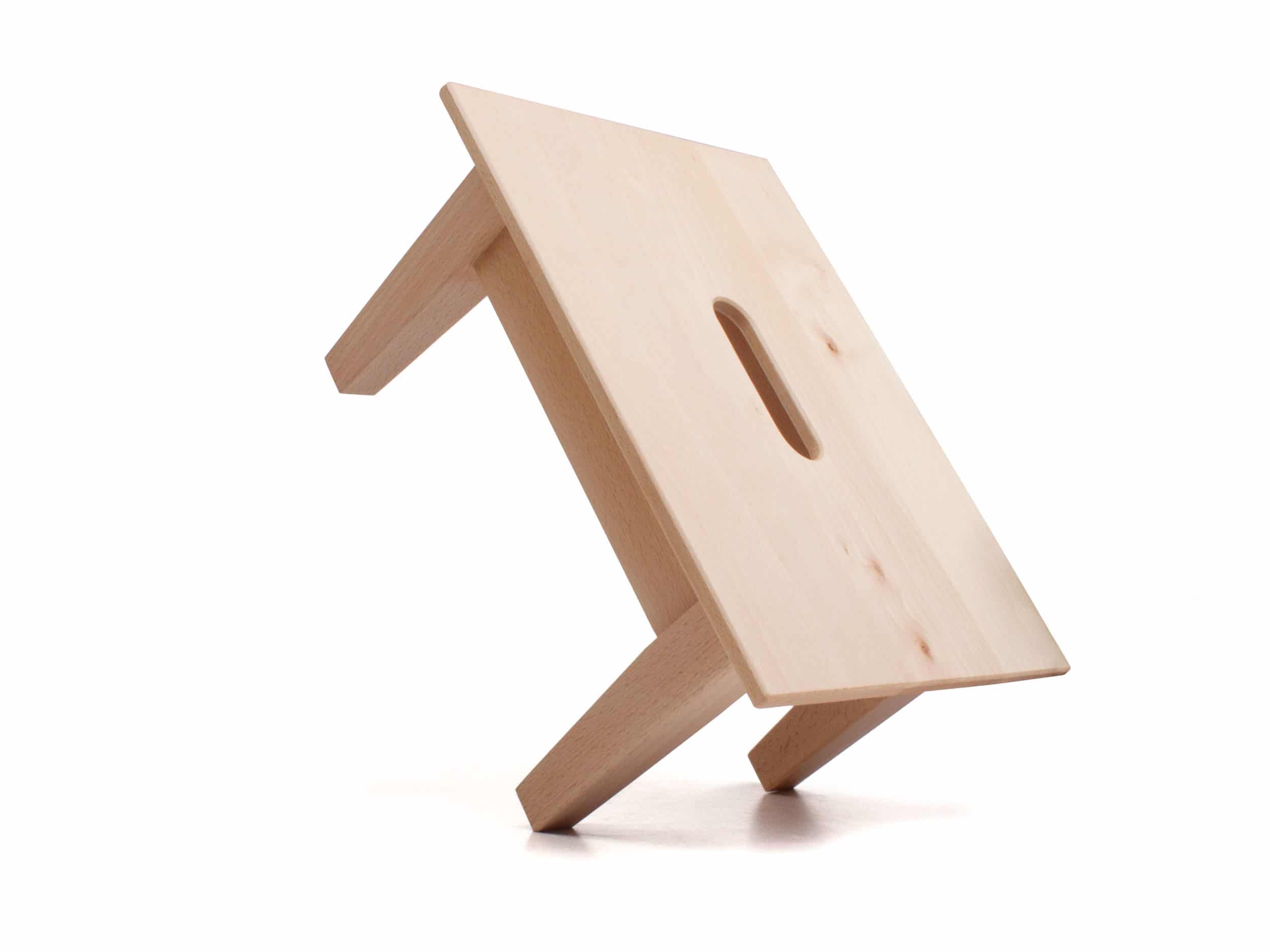 Dieser einfache, praktische und langlebige Fussschemel wird in Kleinserie von Thomas mit «schwimmendem» Deckbrett gefertigt.