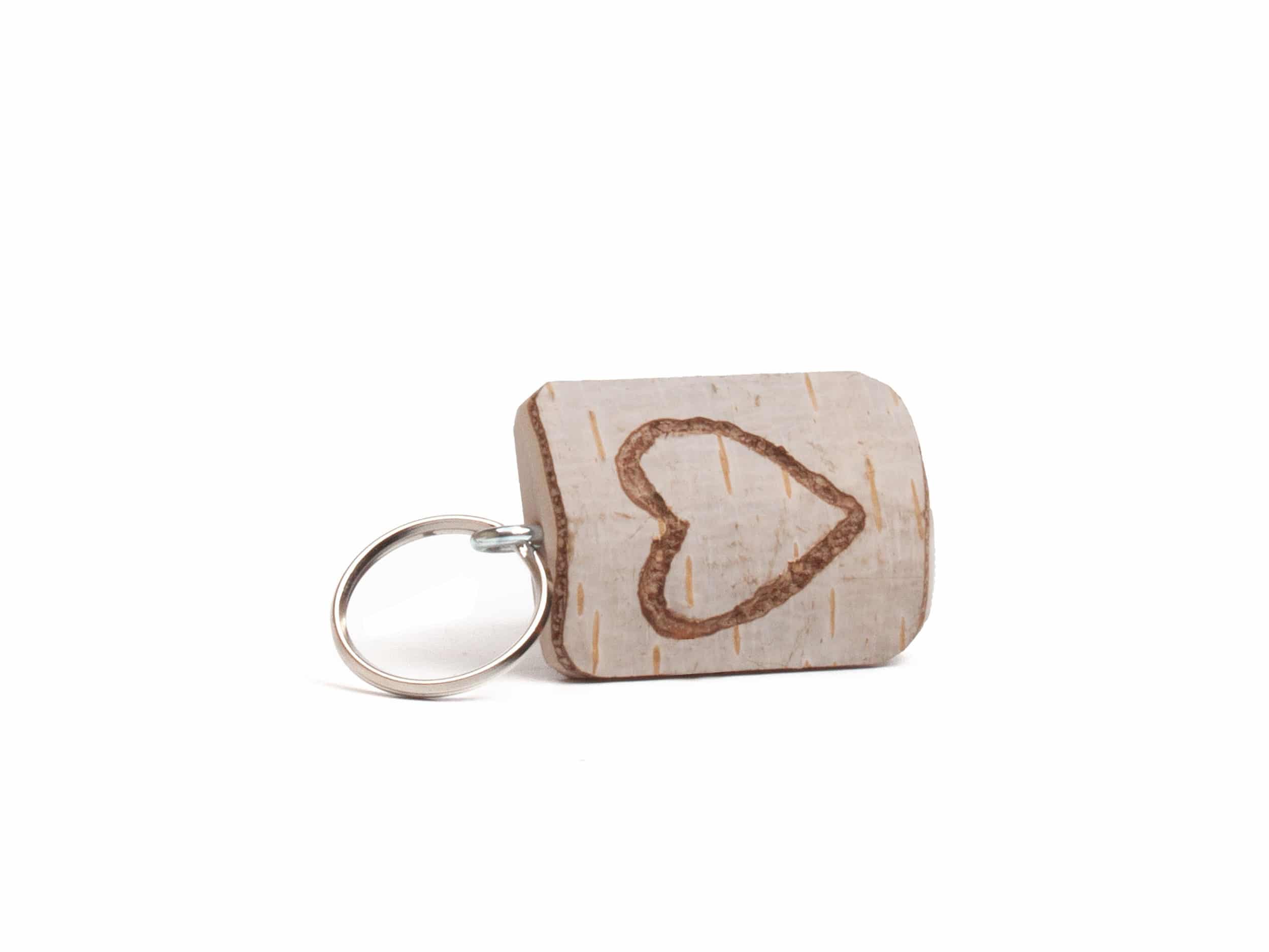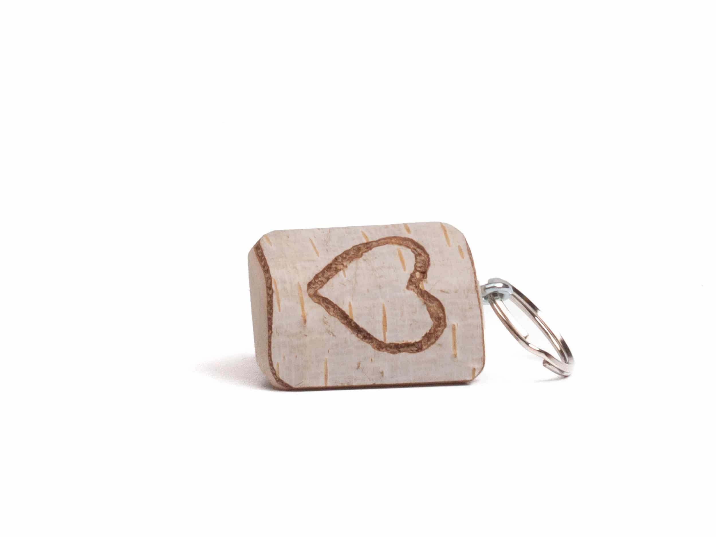 Für diesen Liebesbeweis musst Du keinen Baum einritzen. Der Schlüsselanhänger wird aus regionaler Birkenholzrinde gefertigt.