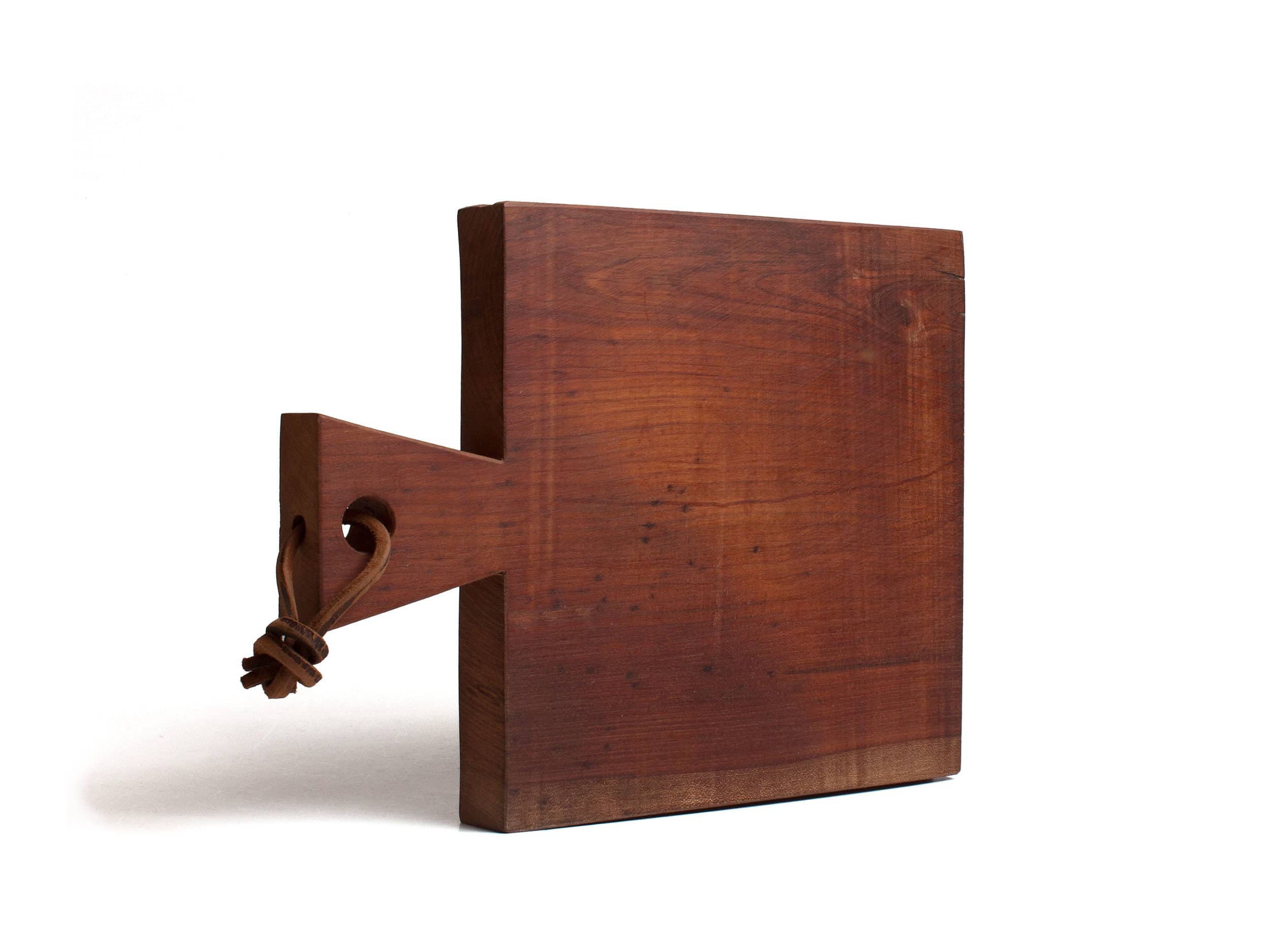 Altholz – Dieses «urchige» Küchenschneidbrett wird von Ralph aus alten gebrauchten Hölzern (je nachdem Kirsche, Eiche oder Nussbaum) gefertigt. Unebenheiten, kleine Risse und andere Spuren der Zeit geben den Objekten ihre Authentizität und Einzigartigkeit. Mit Bändeli zum Aufhängen.