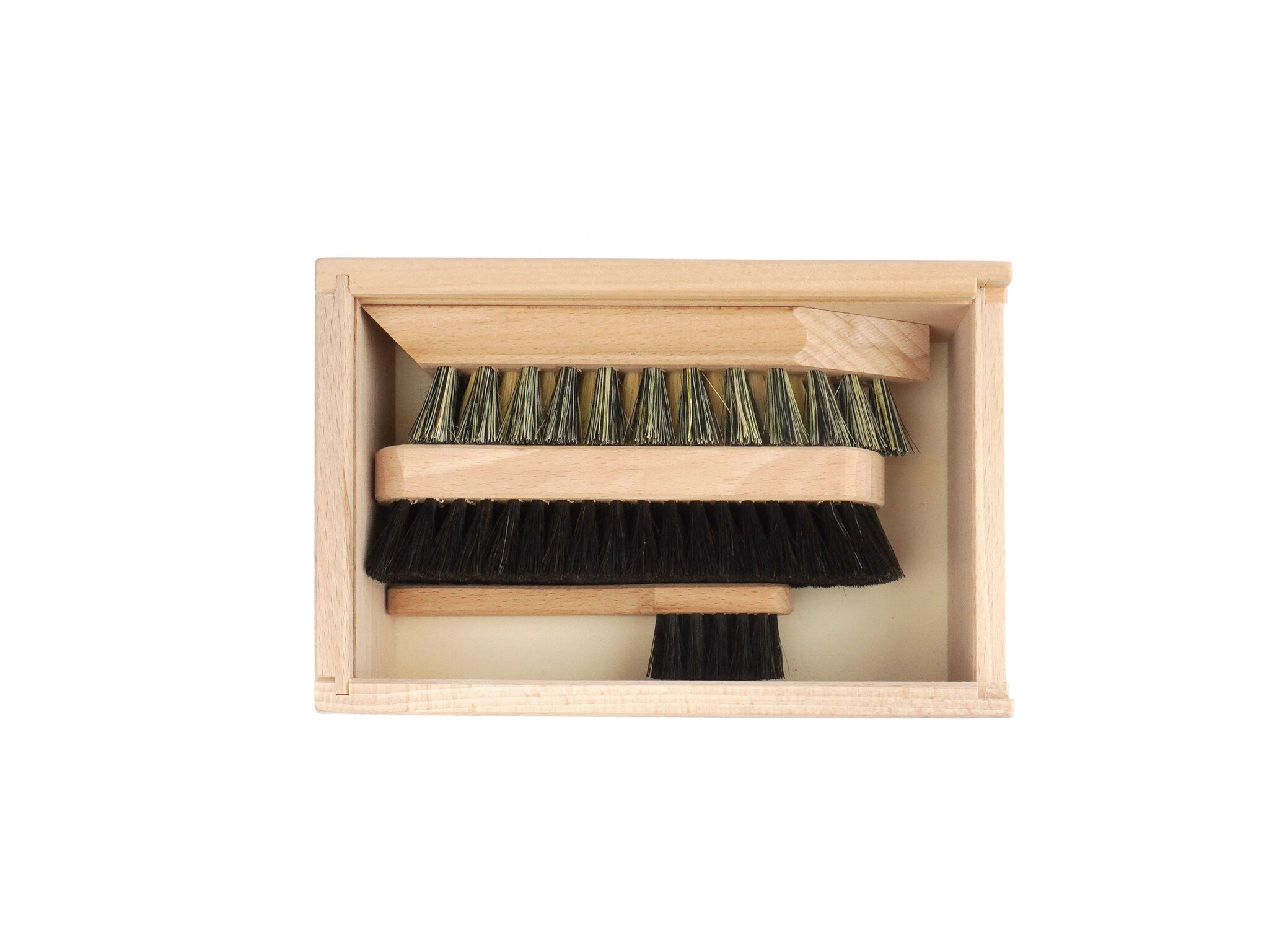 – 3 Bürsten verpackt in Holzschatulle