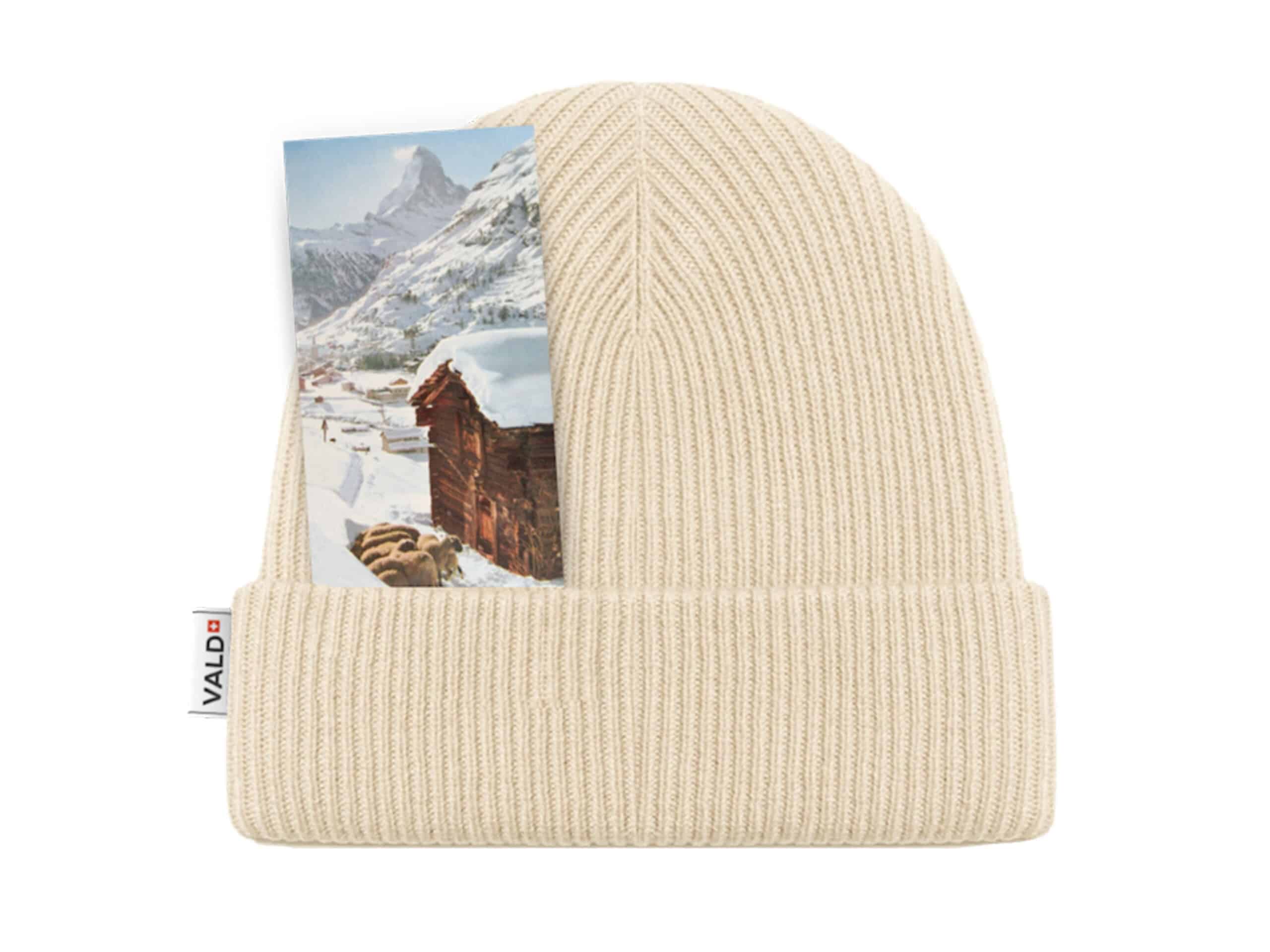 «Für warmi Öhrli»: Die schlichte, ungefärbte Schweizer Alpenwoll Mütze wird aus 100% Schweizer Schafwolle (Wallis, Graubünden und Bern) in der Schweiz hergestellt.