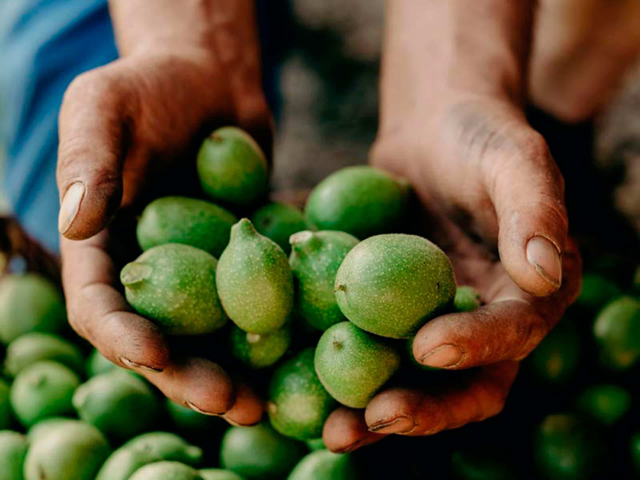 Die Baumnüsse werden bereits im Juni mit samt der grünen Schale von Hand gepflückt. Danach wird jede einzelne Nuss mit viel Fingerspitzengefühl eingestochen, damit in den nächsten vier Wochen beim täglichen Wasserbad die Gerbstoffe ausgeschwemmt werden. Und dass die Nuss beim Veredeln mit einem leichten Vanillesirup den Geschmack besser aufnehmen kann. Zum Schluss werden die Nüsse in einem Glas eingemacht und bis zur Genussfähigkeit mindestens 6 Monate gelagert.