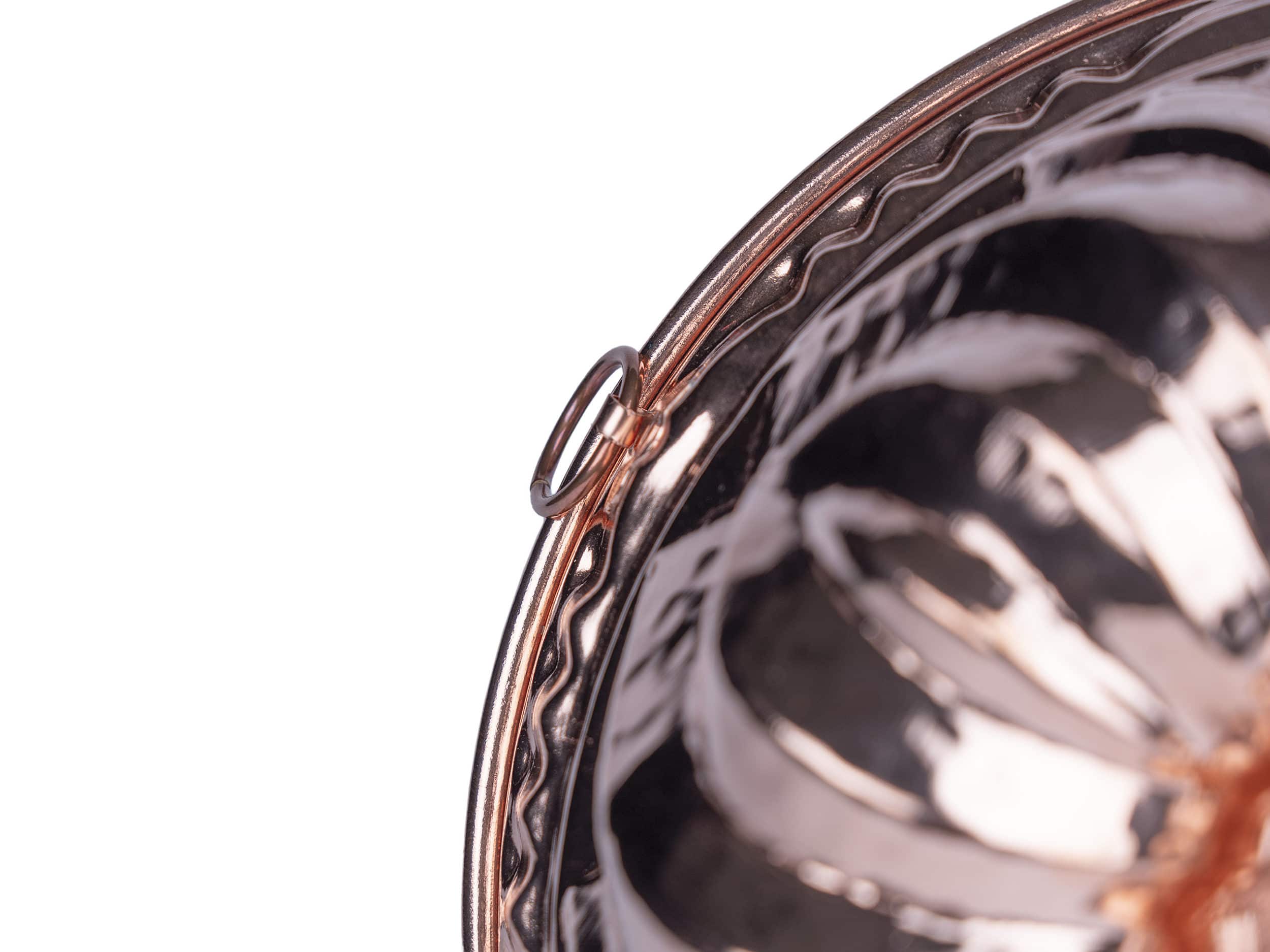 Diese schöne, kleine Gugelhopfform aus Kupfer wird in einem Familienbetrieb im Tessin hergestellt. Die Kupferform mit einem Durchmesser von 14 cm ist nicht nur ein herrliches Schmuckstück in Küche oder Backstube. Durch die Wärmeleitfähigkeit des Kupfers garantiert sie auch ein gleichmässiges und perfektes Backergebnis. Die Form ist auf der Innenseite verzinnt und hat einen Ring zur Aufhängung.