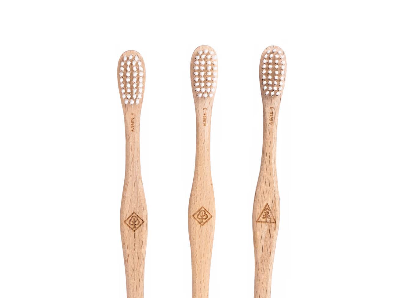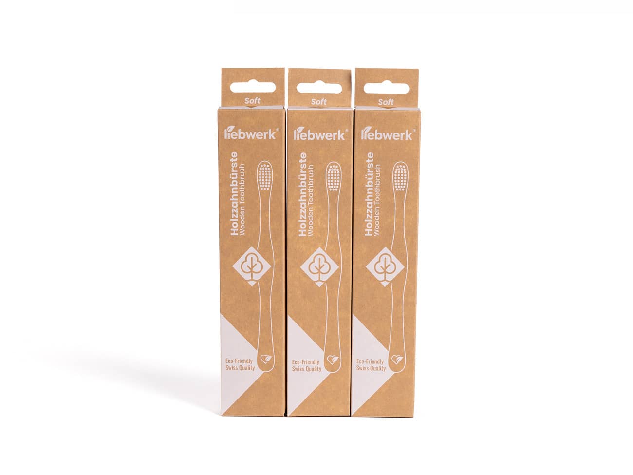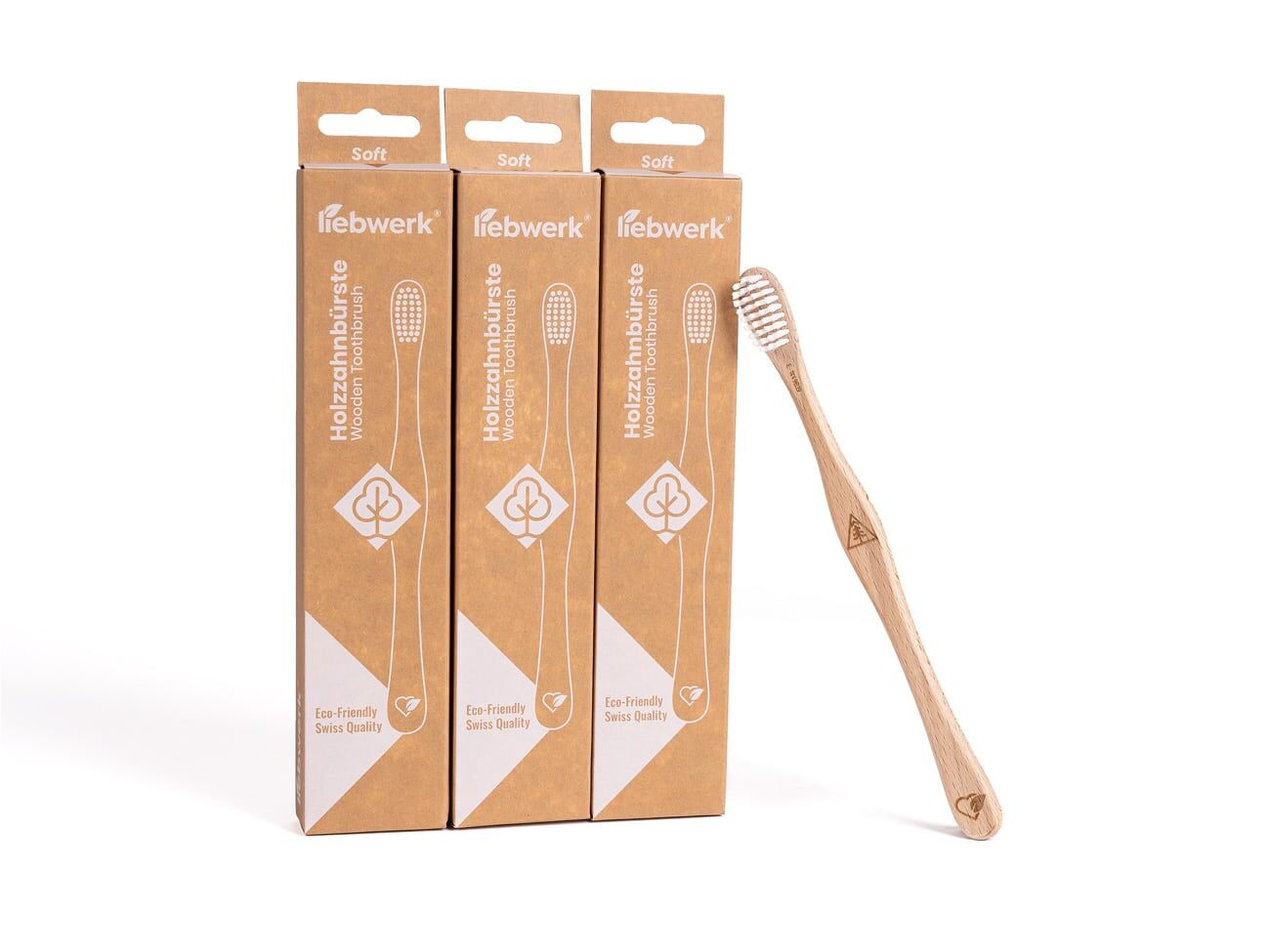 Umweltschonende Zahnbürsten aus Schweizer FSC-Buchenholz im 3er Set. Komplett hergestellt in der Schweiz.