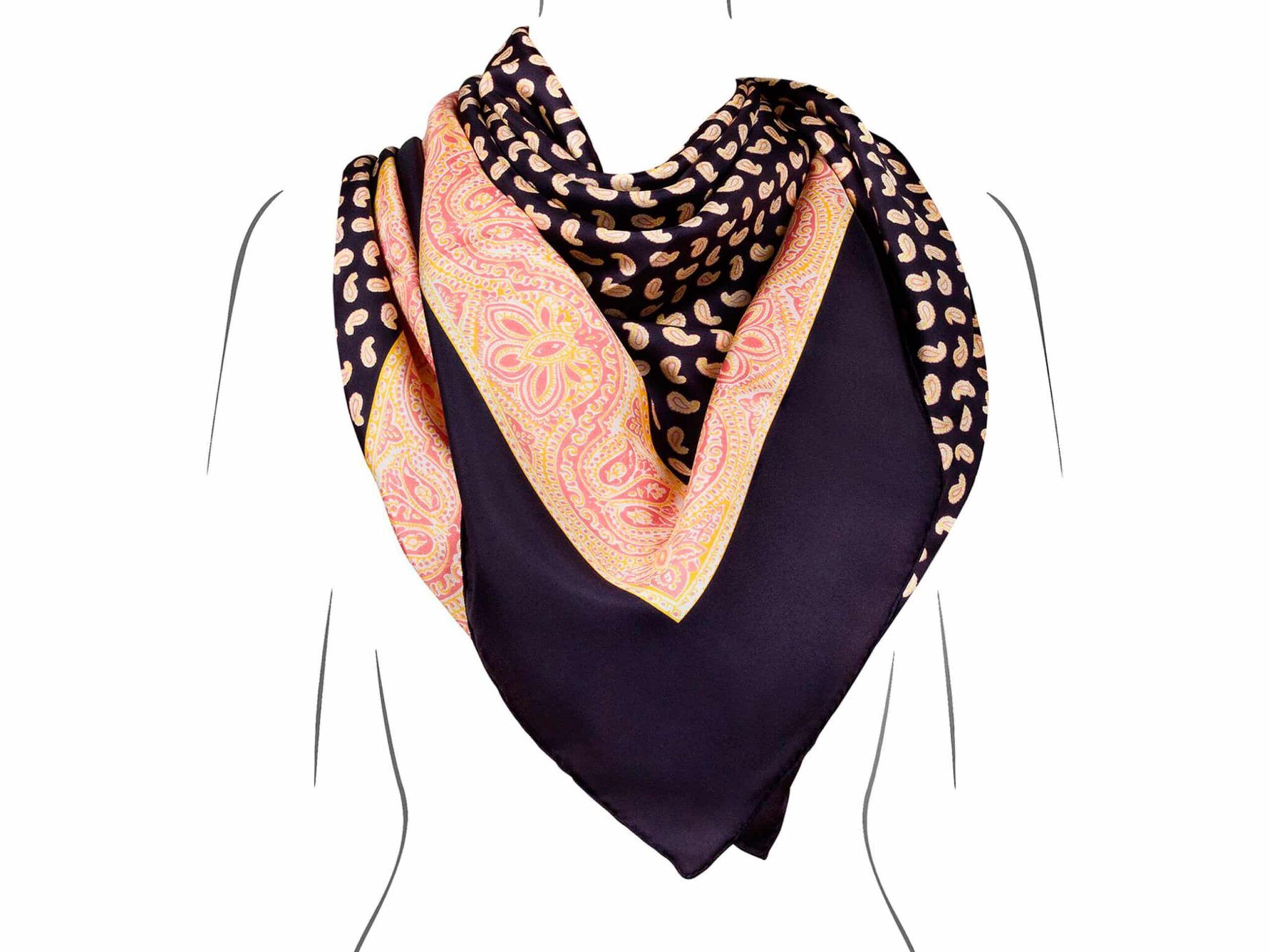 Das edle, grosse Seidenfoulard (120x120cm) wird von Hand in einer der letzten Seidendruckereien der Schweiz (Mitlödi Textildruck AG) gedruckt. Das sehr aufwändige Siebdruckverfahren garantiert – im Gegensatz zum heute gängigen Digitaldruck – eine deutliche Musterzeichnung des Paisley-Musters auf Vorder- und Rückseite des Seidentuchs und eine lange Haltbarkeit. Alle Druckfarben sind nach Oeko-Tex Standard 100 zertifiziert, waschfest und hautverträglich.