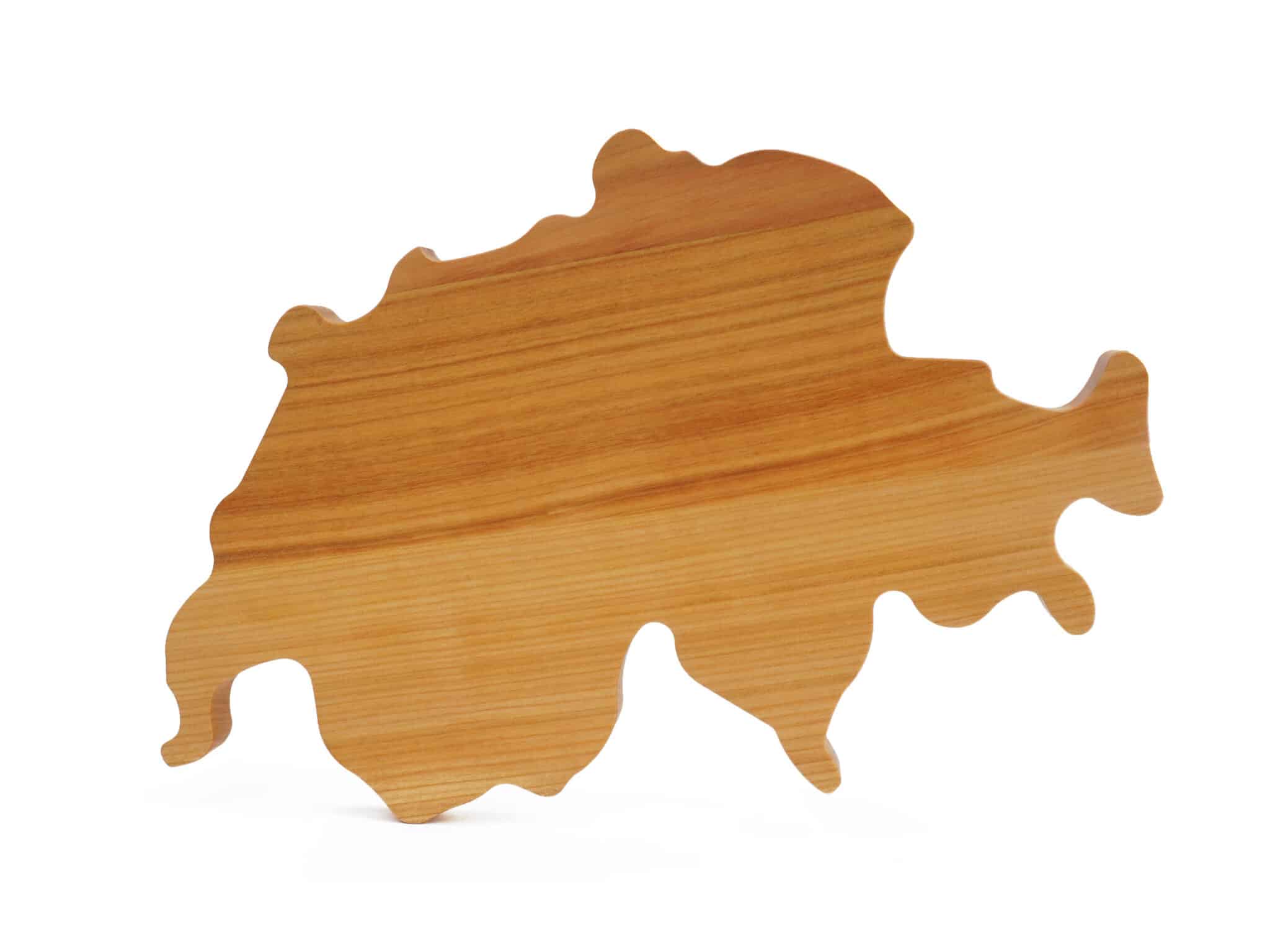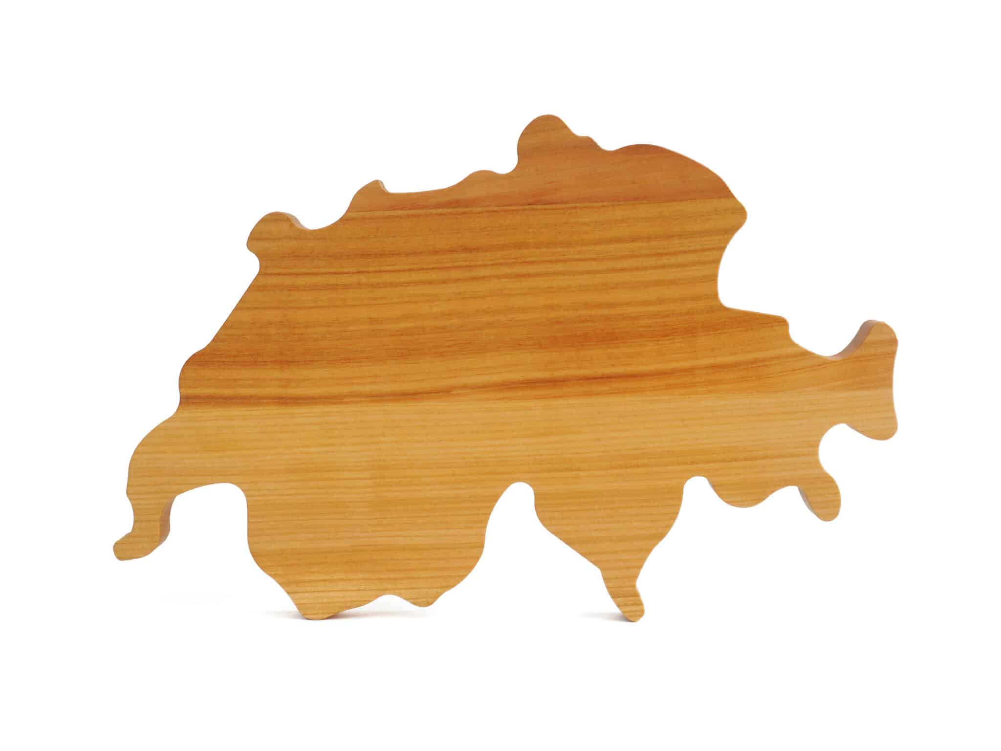 Auf der Schweiz servieren. Das schöne und langlebige Servierbrett Schweiz aus heimischem Kirschbaumholz (35 x 23 x 1.5 cm) macht nicht nur zu Raclette/Fondue oder am 1. August eine gute Figur. Ob als Zvieri-Plättli, Brotbrett, zum Anrichten von Beilagen oder dem Apéro. Für die kulinarische Tour de Suisse und als Blickfang in jeder Küche.