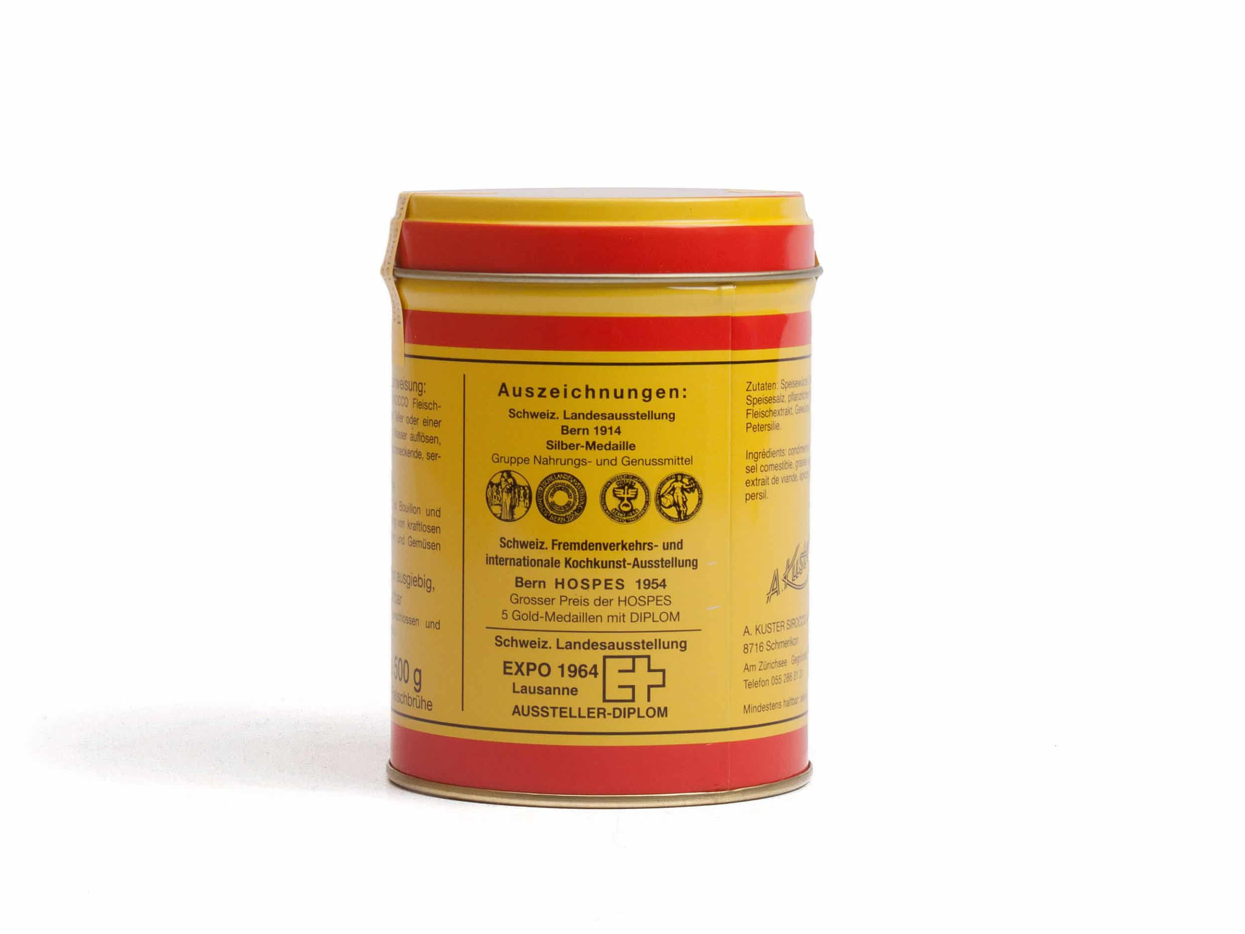 Die feine Fleischbrühe in der «Retro-Büchse» (Originalschriftzug) ist eine Hommage an die Anfänge des Betriebes und wurde schon vielfach ausgezeichnet.