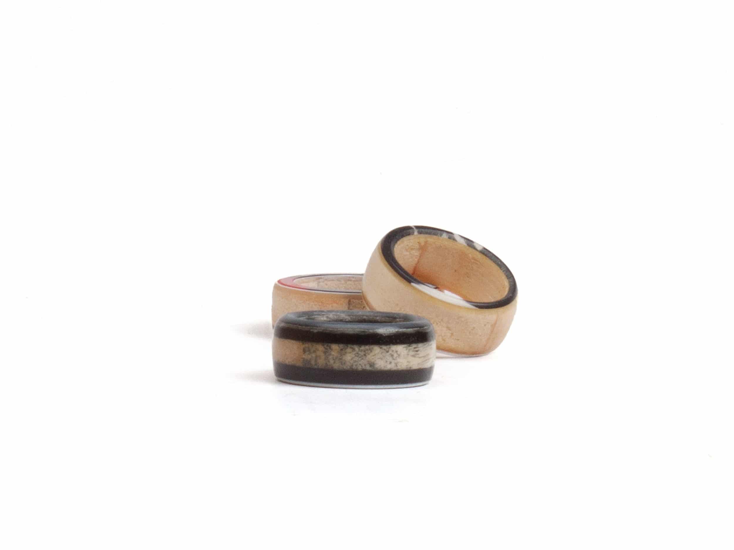 Das nennen wir schönes Recycling. Die Fingerringe gibt es in fünf Grössen (XS bis XL). Ein «musthave» für alle Boarder und Unikate-Liebhaber.