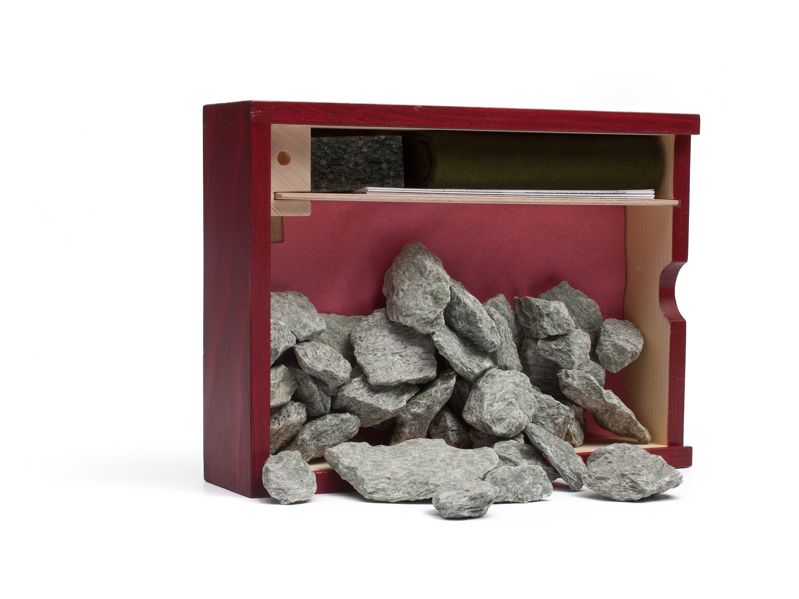 In der Holzschachtel mit Schiebedeckel sind 40 Stück Andeerer Gneis (Steine), ein Sockel und ein Stift aus Andeerer Gneis, ein Filztuch als Spielunterlage, eine Trennwand für das Steinwippe-Spiel, sowie eine Spielanleitung.