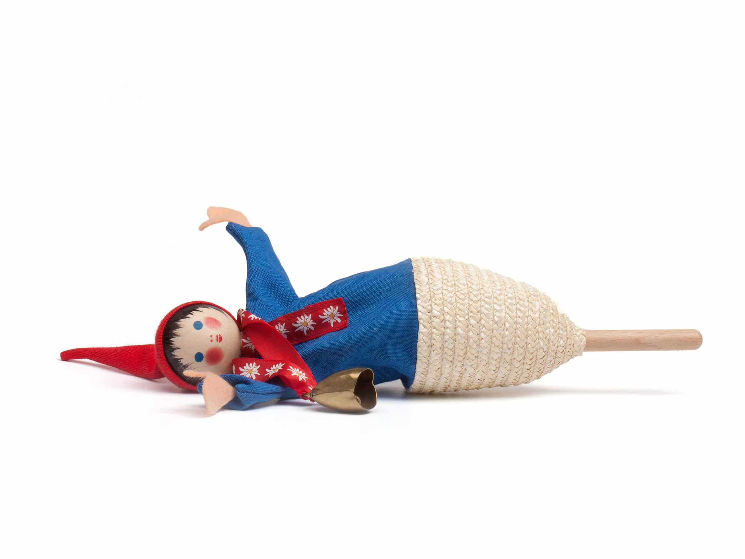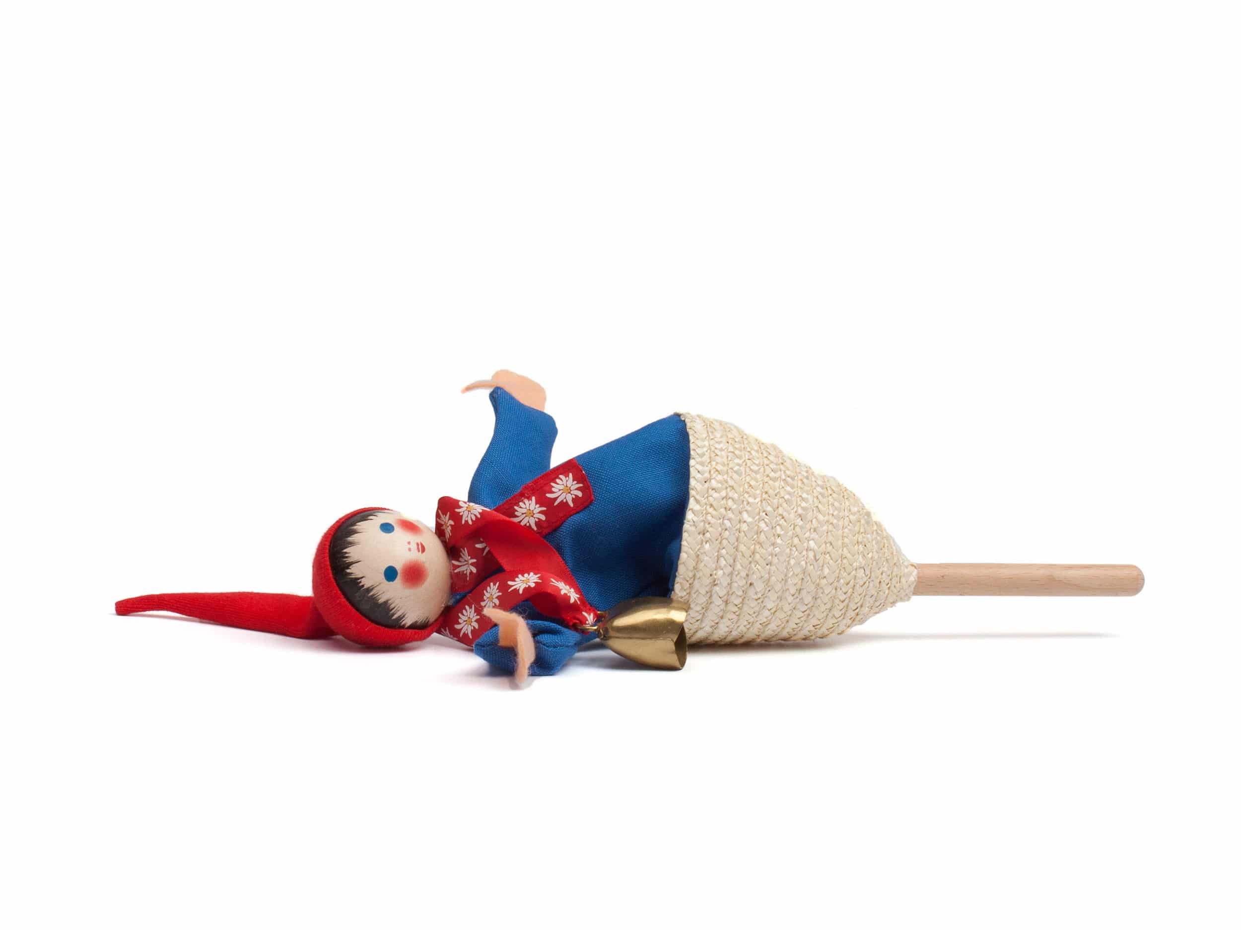 Stock und Kopf sind aus Schweizer Hartholz, die liebevoll gemachte Kleidung aus natürlichen Materialien und das Gesicht ist handbemalt.