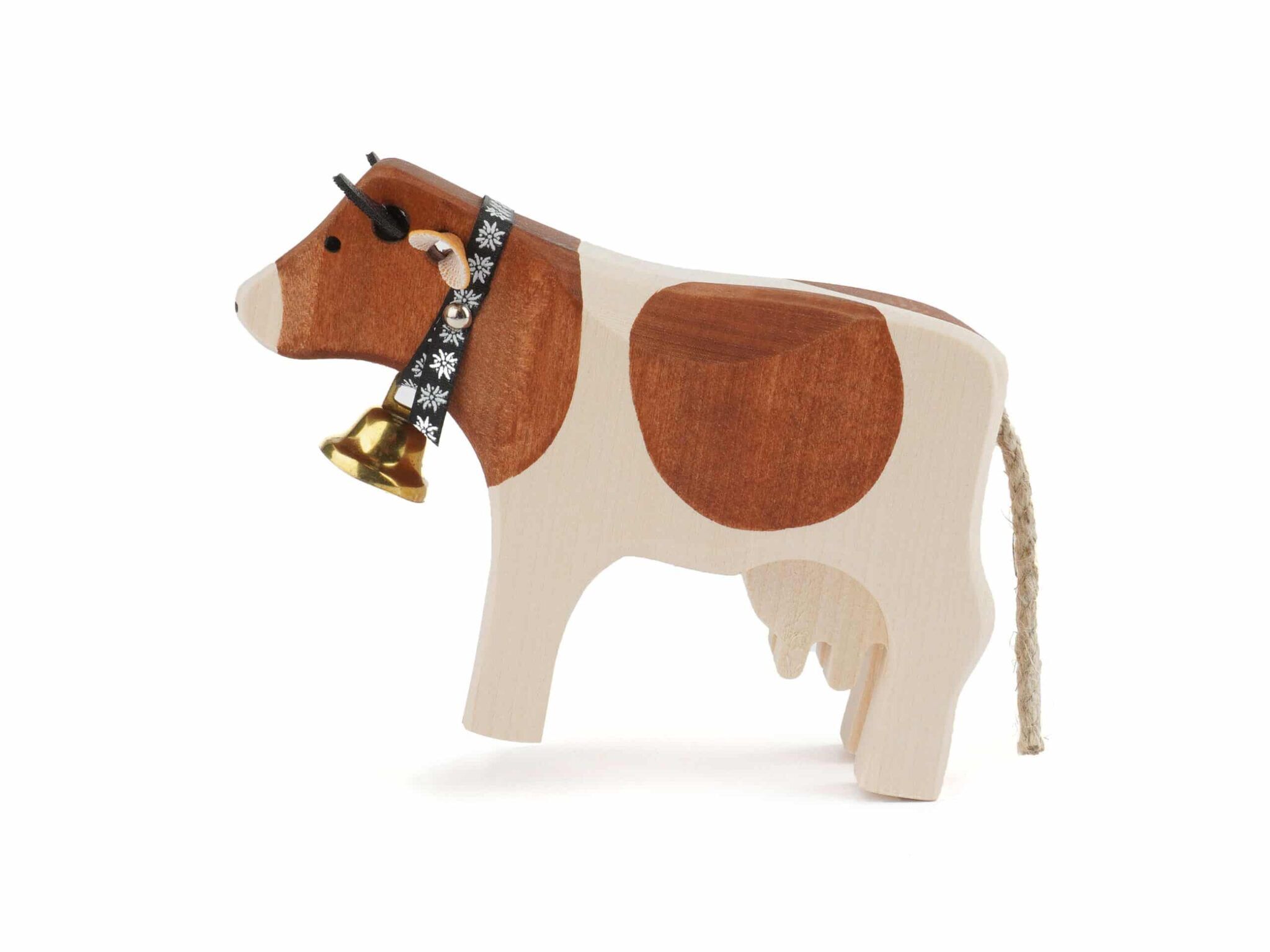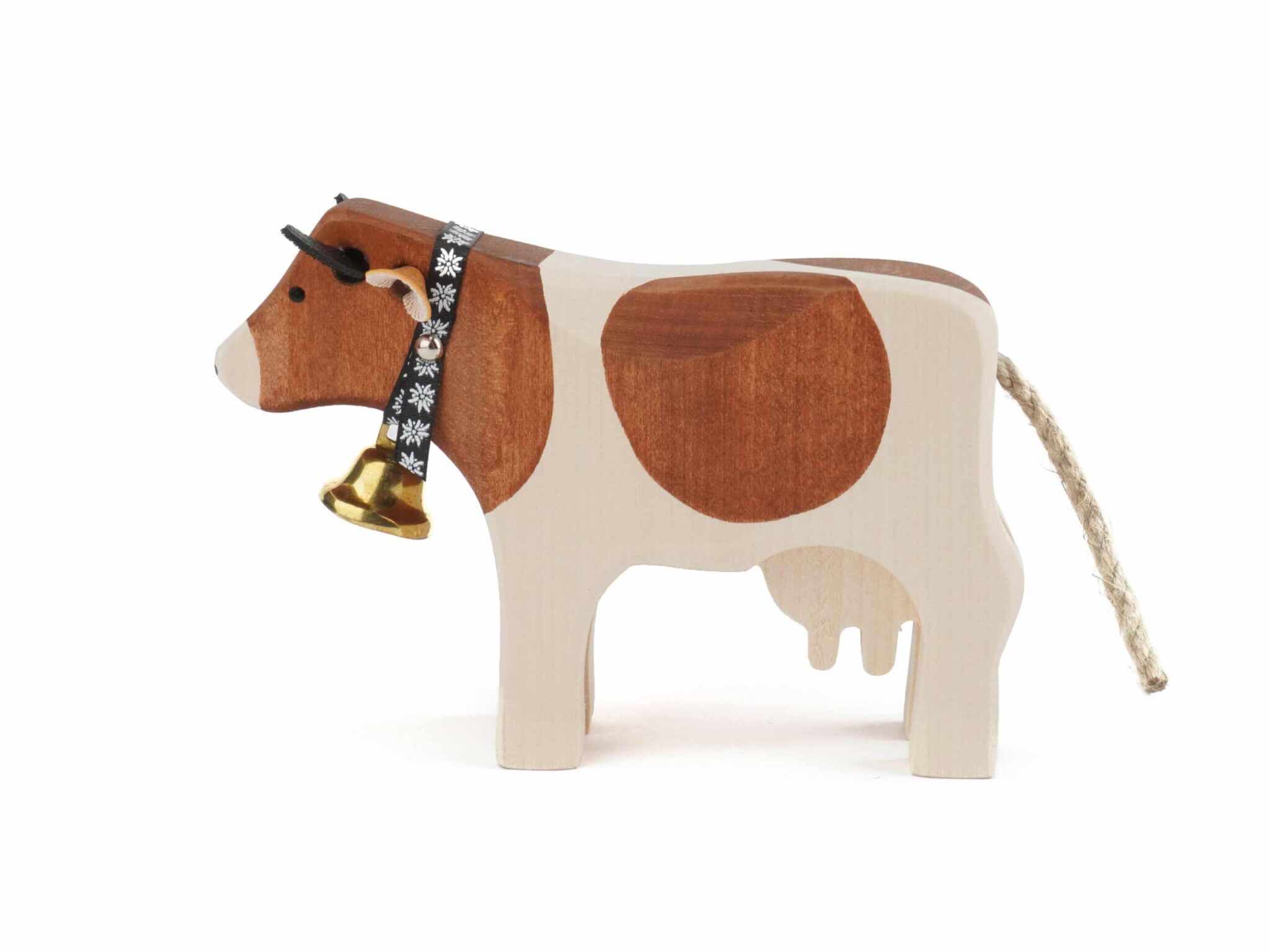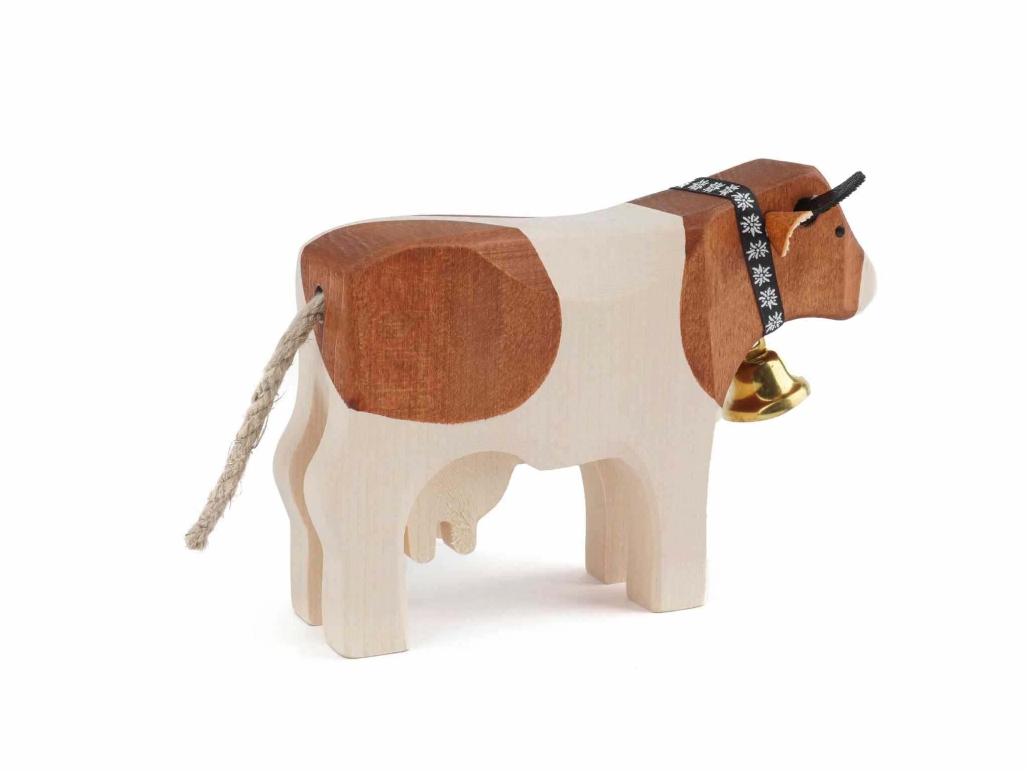 Die Kühe von Trauffer Holzspielwaren werden aus zertifiziertem Schweizer Lindenholz (FSC) und mit für Kinder völlig unbedenklichen Farben hergestellt. Und auch die Schwänze der Kühe werden in einer Schweizer Seilerei produziert.
