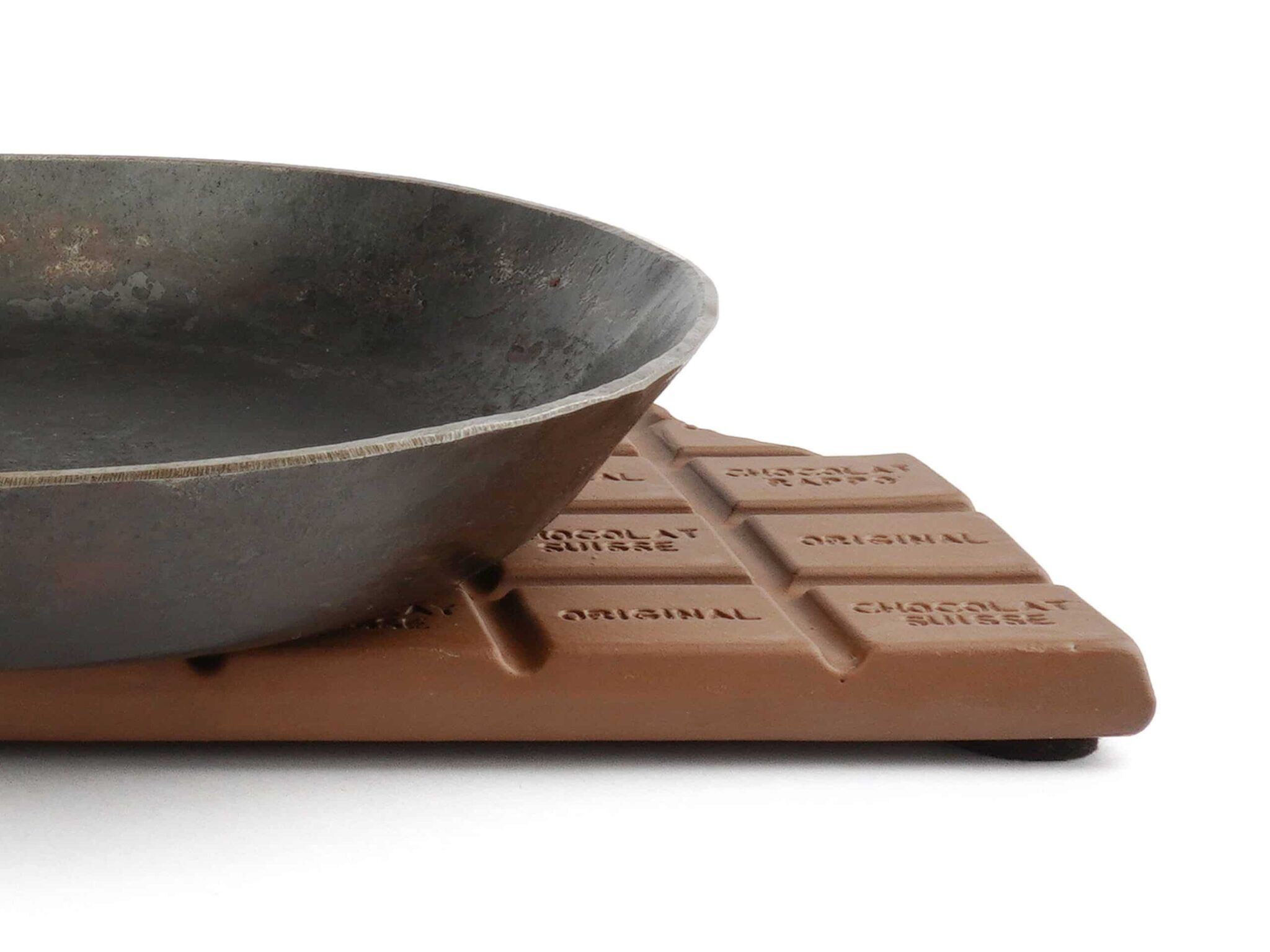 Dieser originelle Schokolade Untersetzer aus Keramik ist hitzebeständig und ideal für deine Kaffeekanne, Topf, Pfanne und als Hingucker beim Racletteplausch.