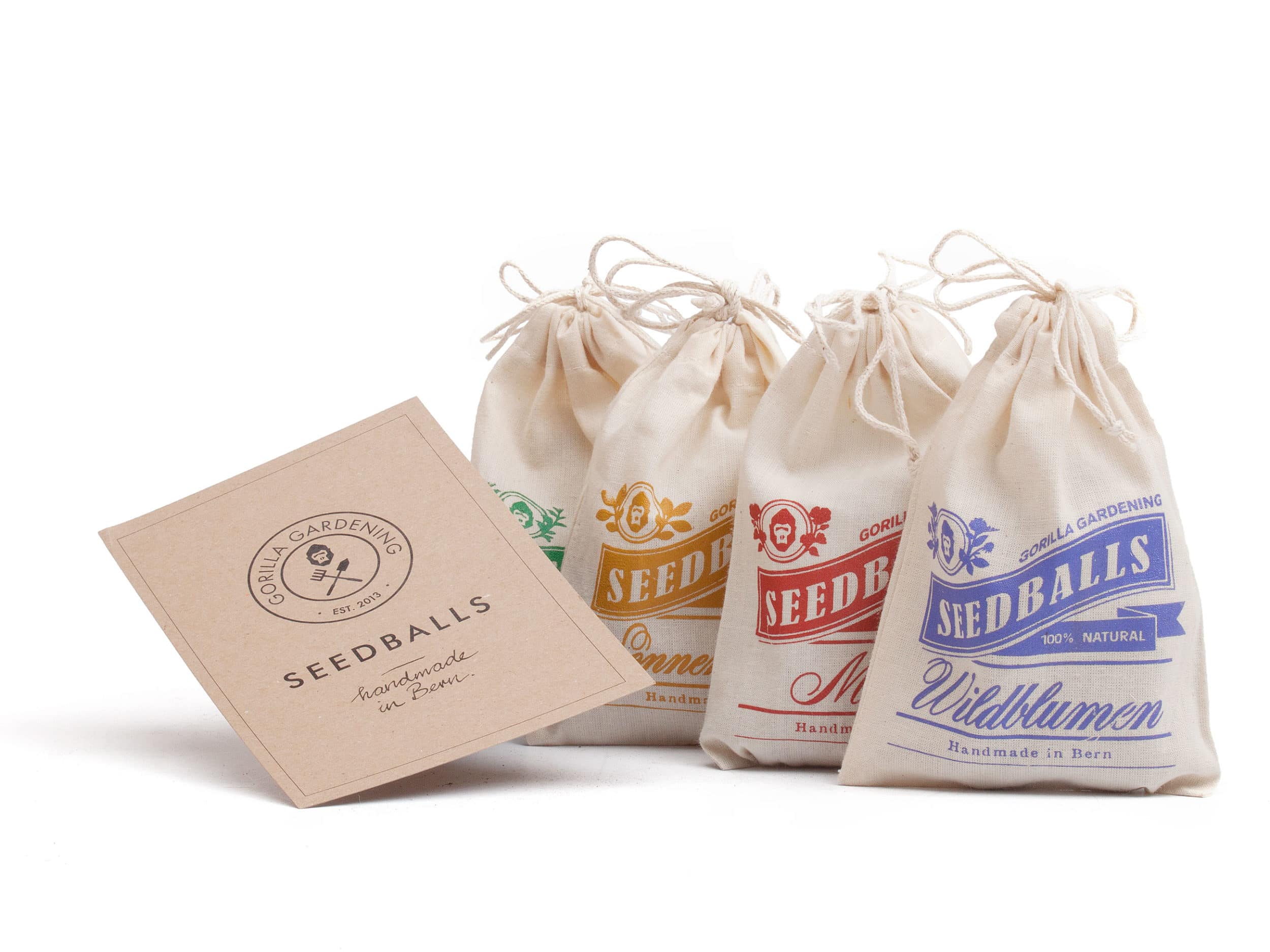 Alle Seedballs werden in Handarbeit hergestellt. Dafür werden lediglich natürliche Produkte wie Lehm, Bio-Erde (ohne Torf) und Saatgut verwendet. Durch das Rollen von Hand ist jeder einzigartig. Sorgfältig in kleine, von Hand bedruckte Baumwollsäckchen verpackt.