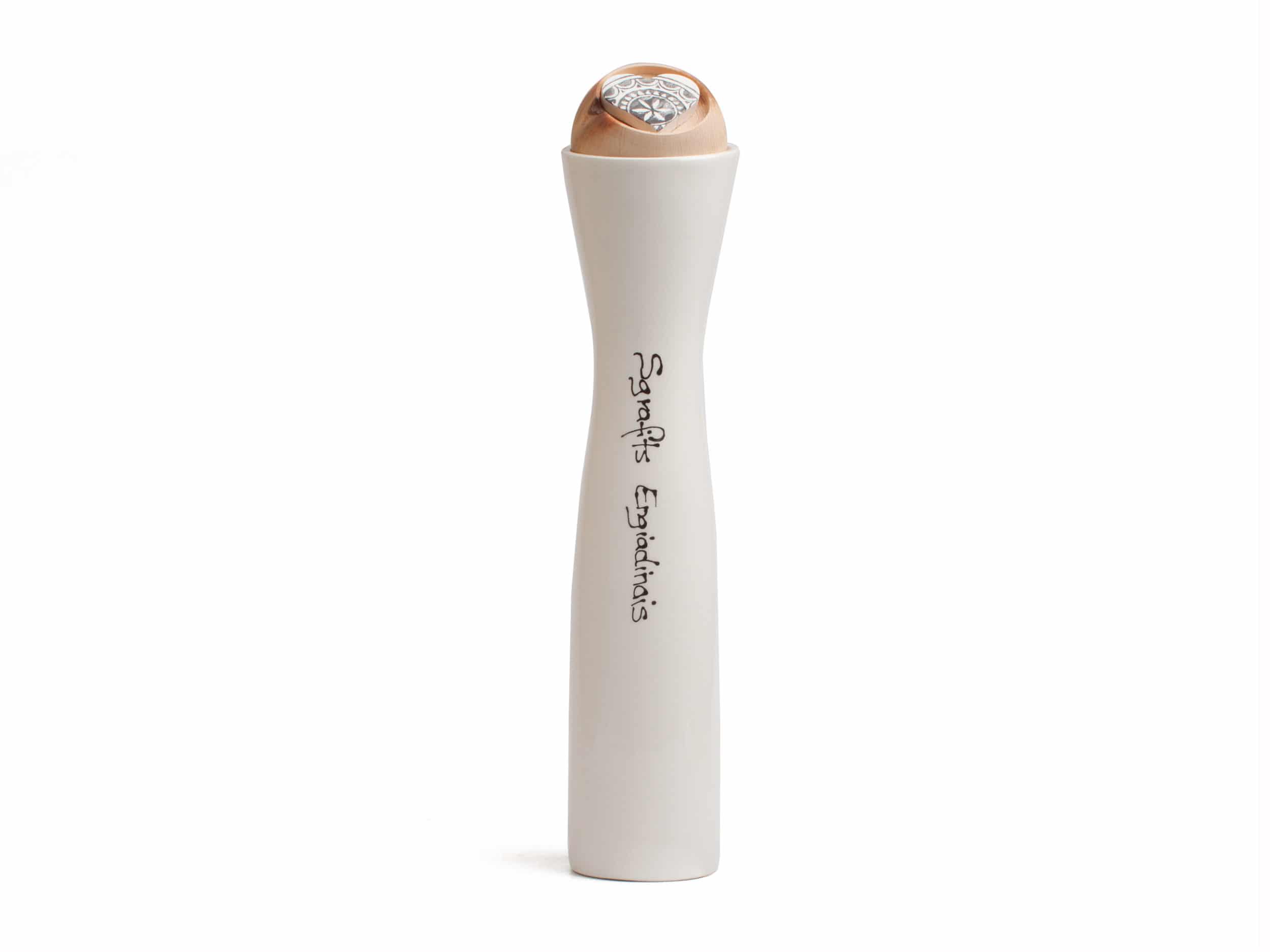 Handgefertigt von Heidi und ihrer Mutter Lidia im Engadin. «Bestempelt» mit tradtionellen Sgrafits Engiadinais (Sgraffito), wie man sie auch an den alten Engadiner Häusern sieht.